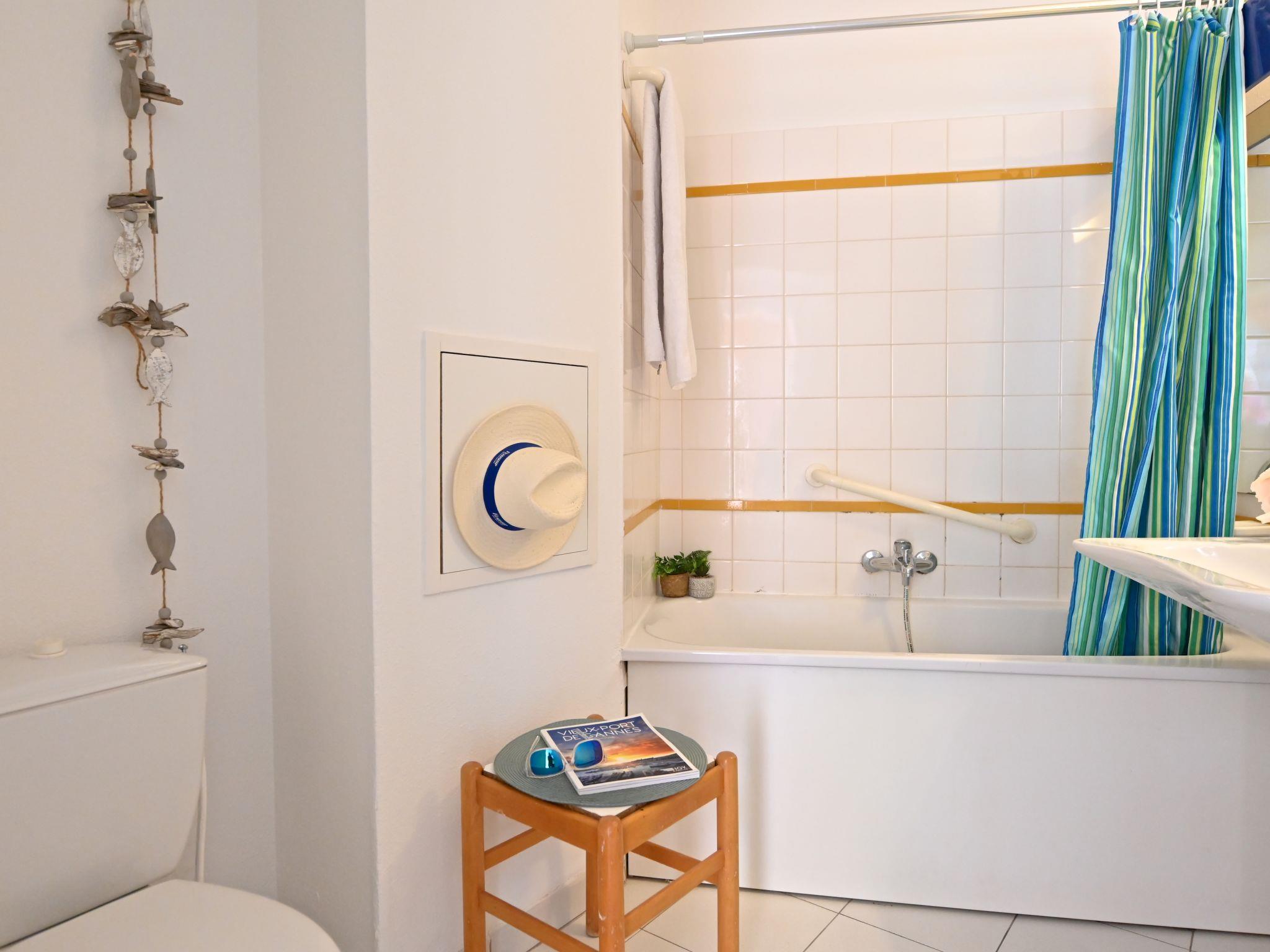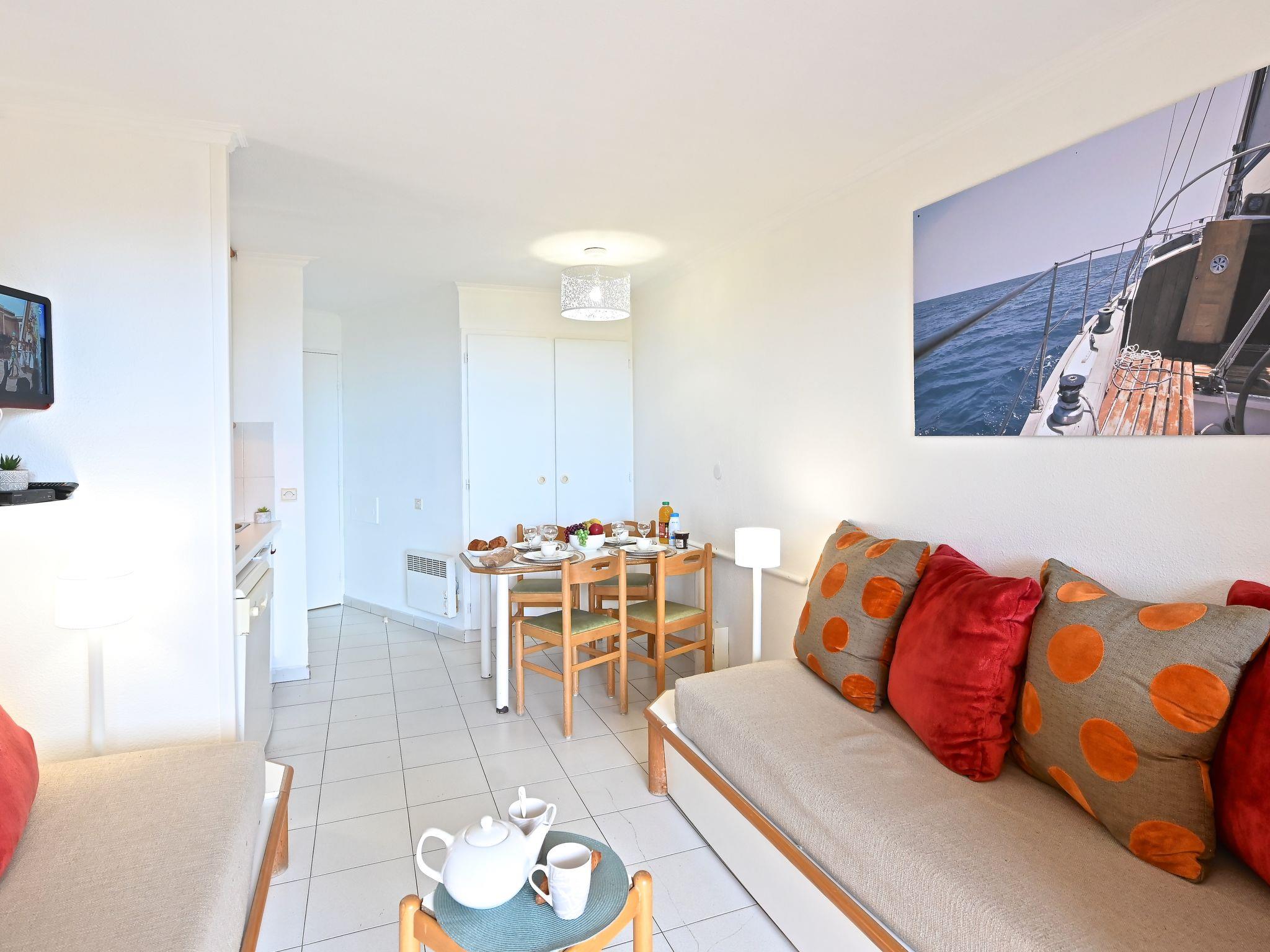 "Le Village (C2 105)", 1-room studio 28 m2, on the ground floor. Object suitable for 2 adults + 2 children. Living room with 2 sofabeds (80 cm, length 190 cm), TV (flat screen). Exit to the terrace. Sleeping alcove with 1 x 2 bunk beds (80 cm, length 190 cm). Kitchenette (4 hot plates, dishwasher, toaster, kettle, microwave, electric coffee machine, Capsules for coffee machine (tassimo) extra). Bath/WC. Electric heating. Terrace 8 m2. Terrace furniture. View of the sea. Facilities: Internet (WiFi, extra). Parking space n 2378 (roofed, 1 car), height 180 cm. Please note: non-smokers only. Maximum 1 small pet/ dog allowed. Smoke alarm. Instead of an enclosed bedroom, some sleeping areas are located in an open-plan area (gallery, alcove, etc.). Offer by a private individual according to Art. 155, IV of CGI.