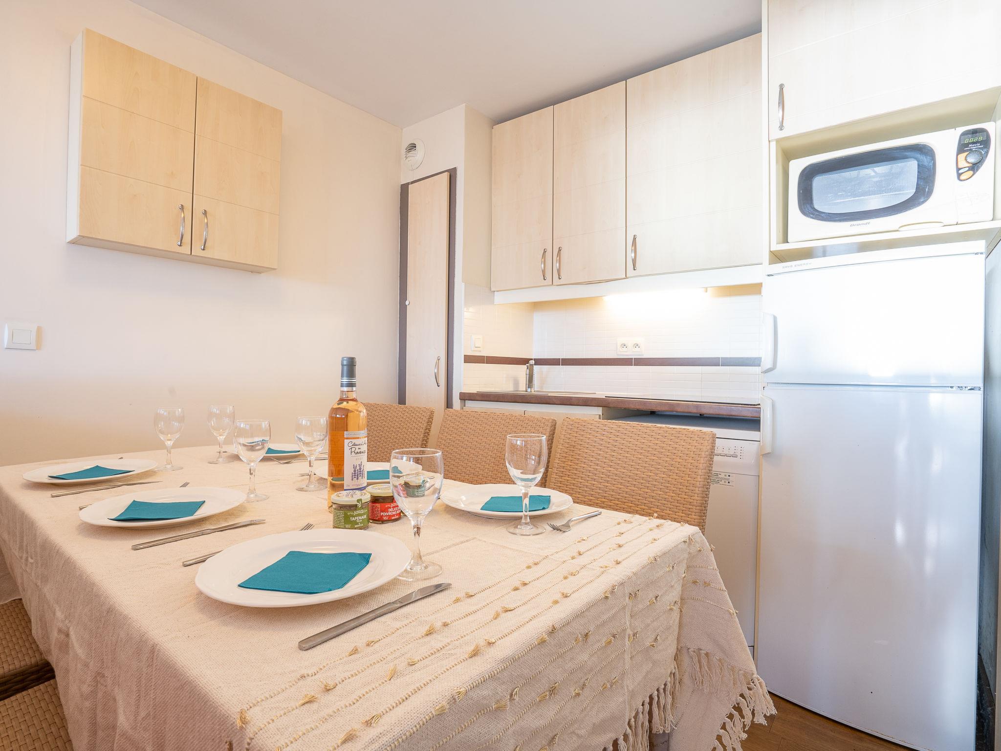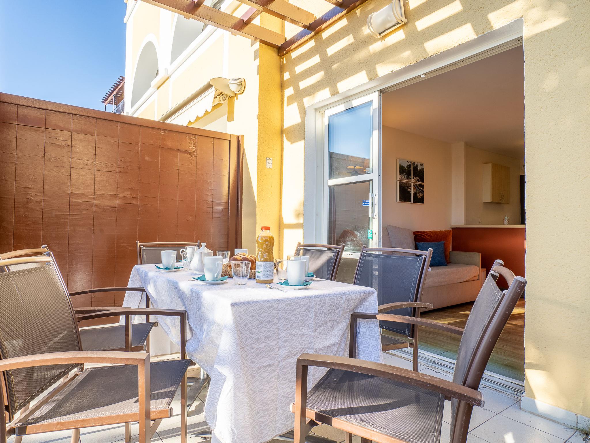 "Le Village (C4 010)", 3-room apartment 39 m2, on the ground floor. Living room with 1 pull-out bed (2 x 80 cm, length 190 cm), TV (flat screen). Exit to the terrace, to the patio. 1 room with 1 french bed (140 cm, length 190 cm). Exit to the patio. 1 small room with 1 x 2 bunk beds (80 cm, length 190 cm). Kitchenette (4 hot plates, dishwasher, microwave, freezer, electric coffee machine). Bathroom, sep. WC. Electric heating. Terrace 10 m2, patio. Terrace furniture. View of the sea. Facilities: Internet (WiFi, extra). Parking space n 2002 (roofed, 1 car), height 180 cm. Please note: suitable for families. Non-smokers only. Maximum 1 pet/ dog allowed. Smoke alarm. Offer by a private individual according to Art. 155, IV of CGI. FR85534007