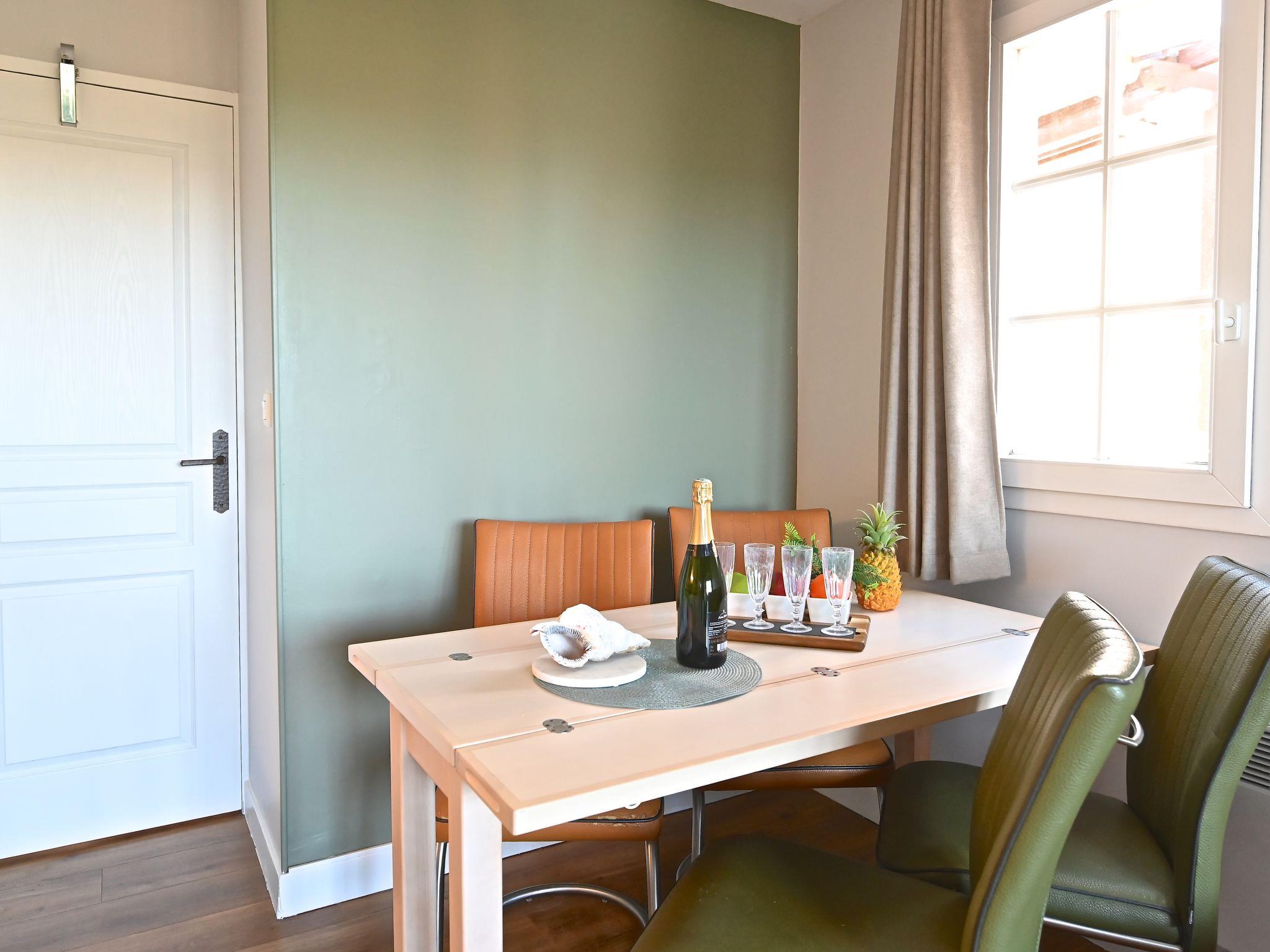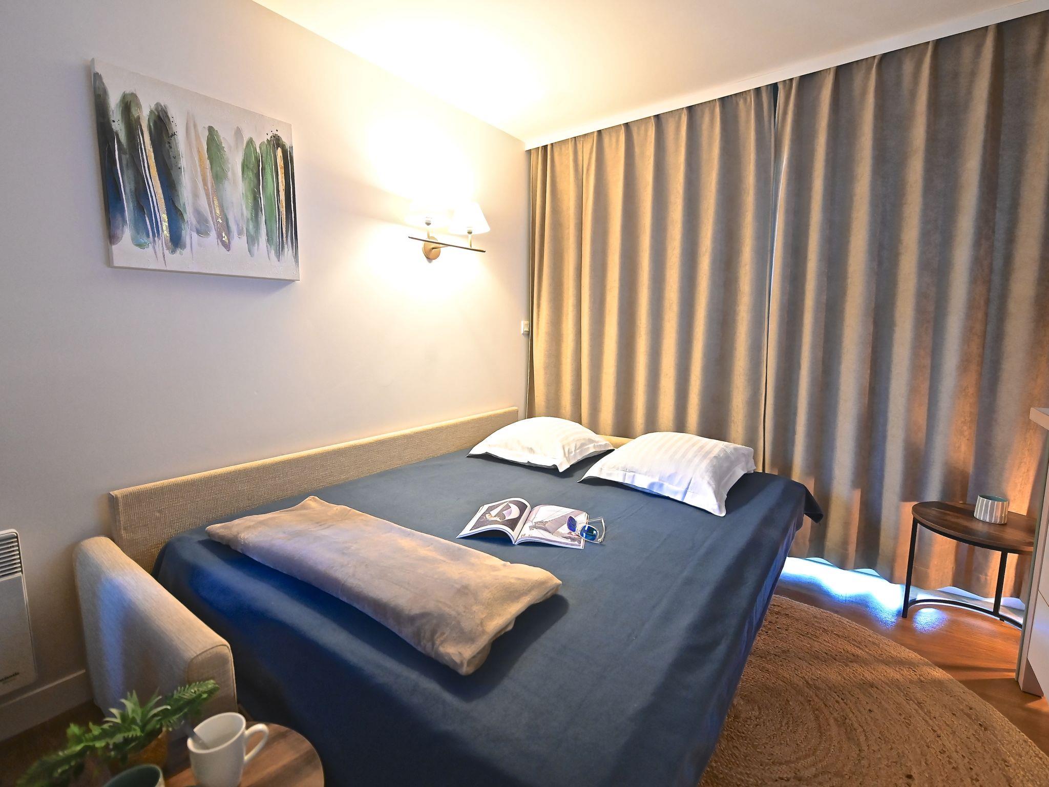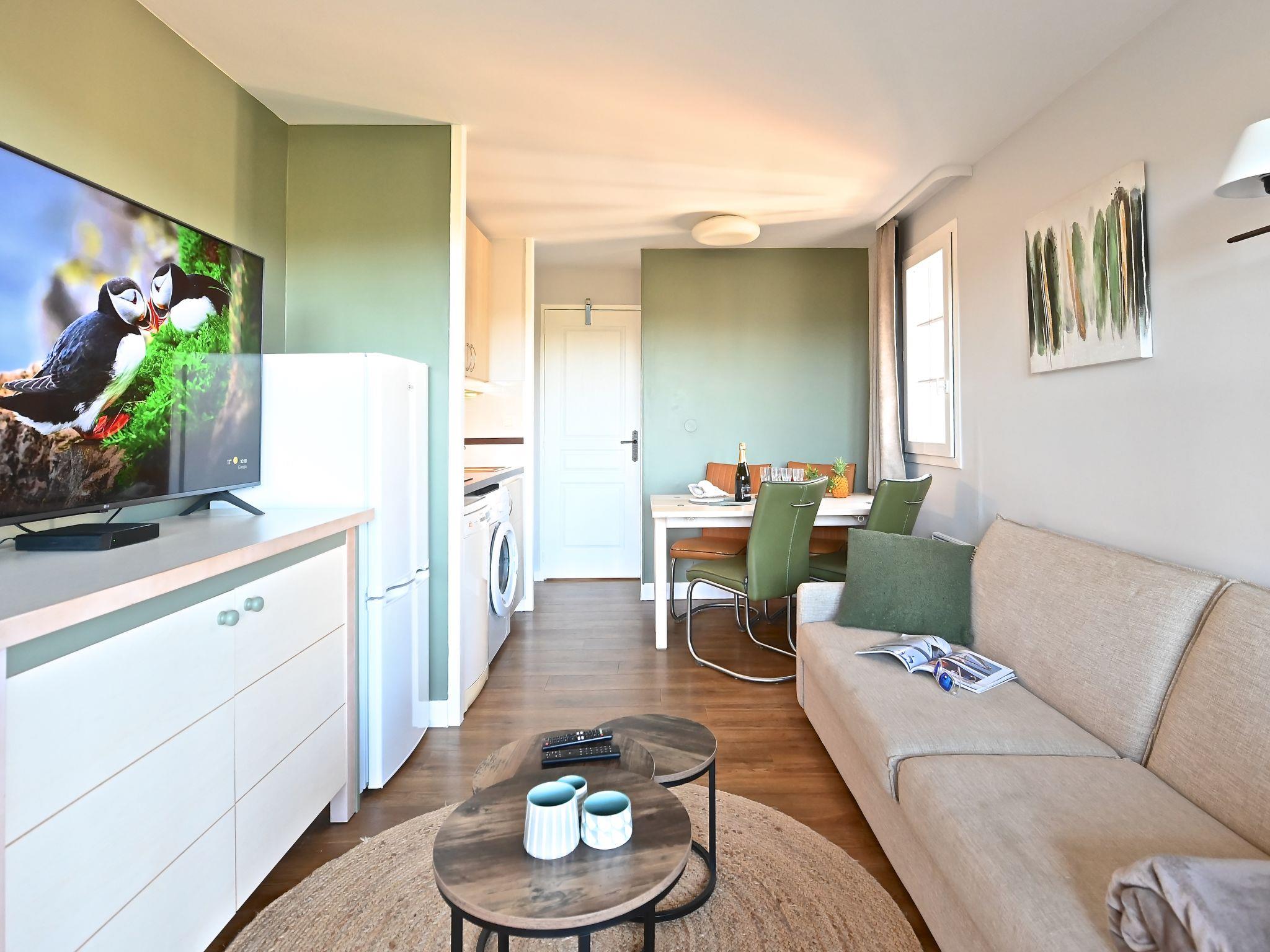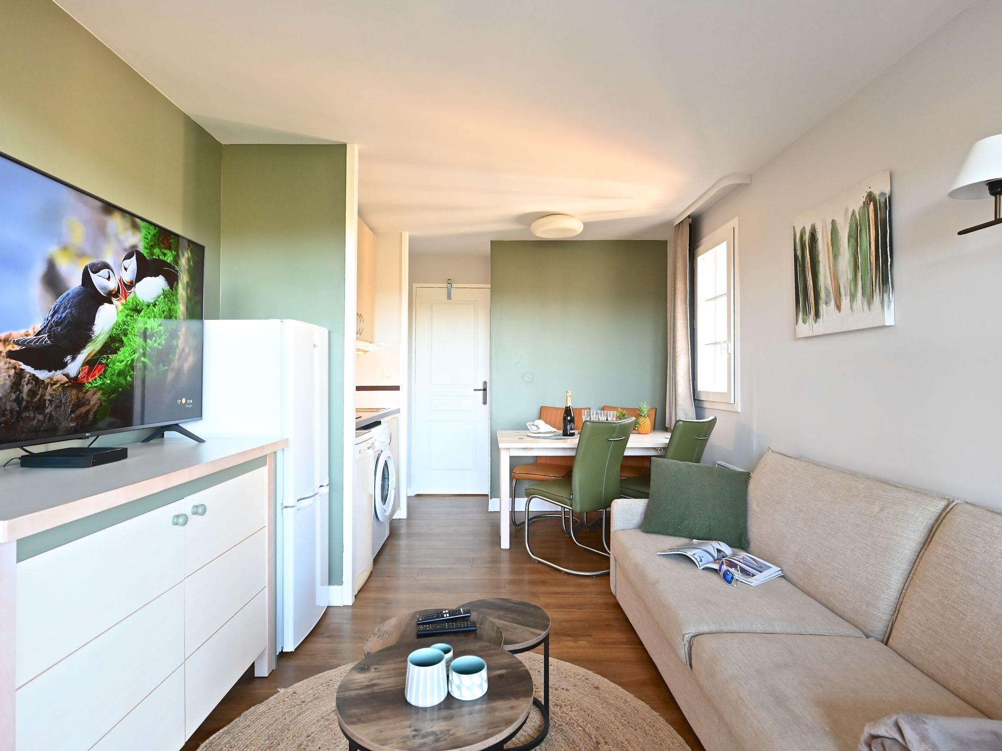 "Le village C9 366", 1-room studio 23 m2 on 2nd floor. Bright, partly renovated in 2025, very cosy furnishings: living room with 1 double sofabed (1 x 155 cm, length 195 cm), bath/WC, TV, flat screen, electric heater, air conditioning and fan. Exit to the terrace. Sleeping alcove with 1 bed (140 cm, length 190 cm). Kitchenette (dishwasher, 4 ceramic glass hob hotplates, toaster, kettle, microwave, freezer, electric coffee machine, Capsules for coffee machine (Tassimo) extra). Terrace 12 m2, roofed, north facing position. Terrace furniture. Beautiful view of the mountains and golf course. Facilities: washing machine. Internet (WiFi, free). Parking (1 car). Please note: non-smokers only. Smoke alarm. Offer by a private individual according to Art. 155, IV of CGI.