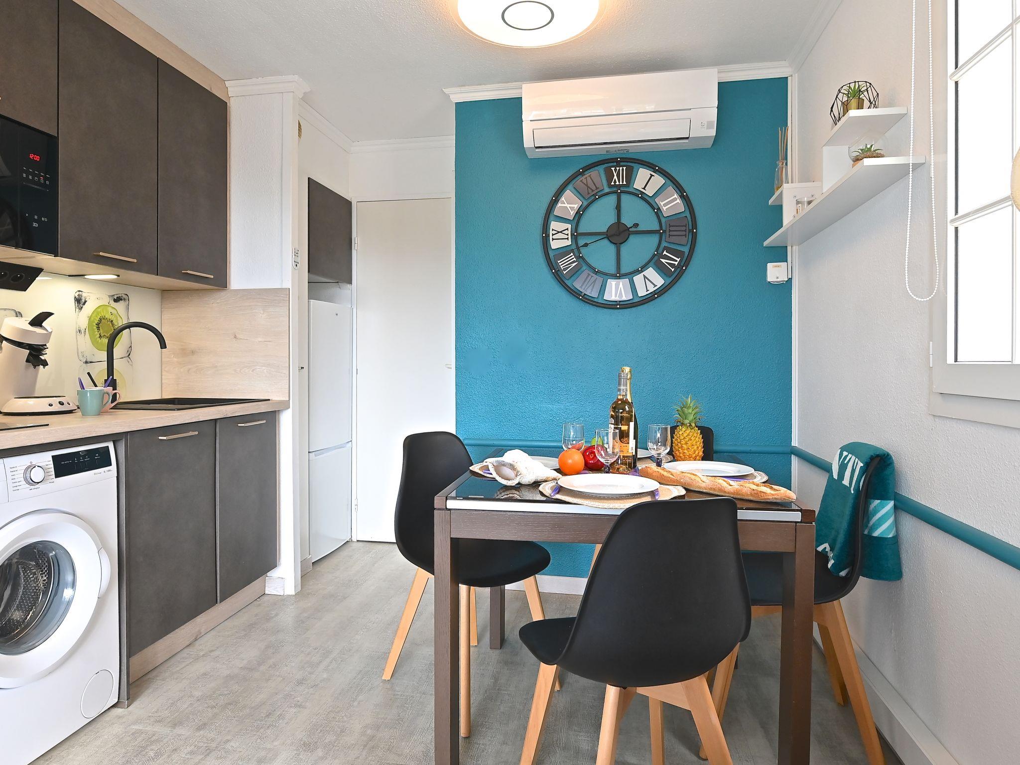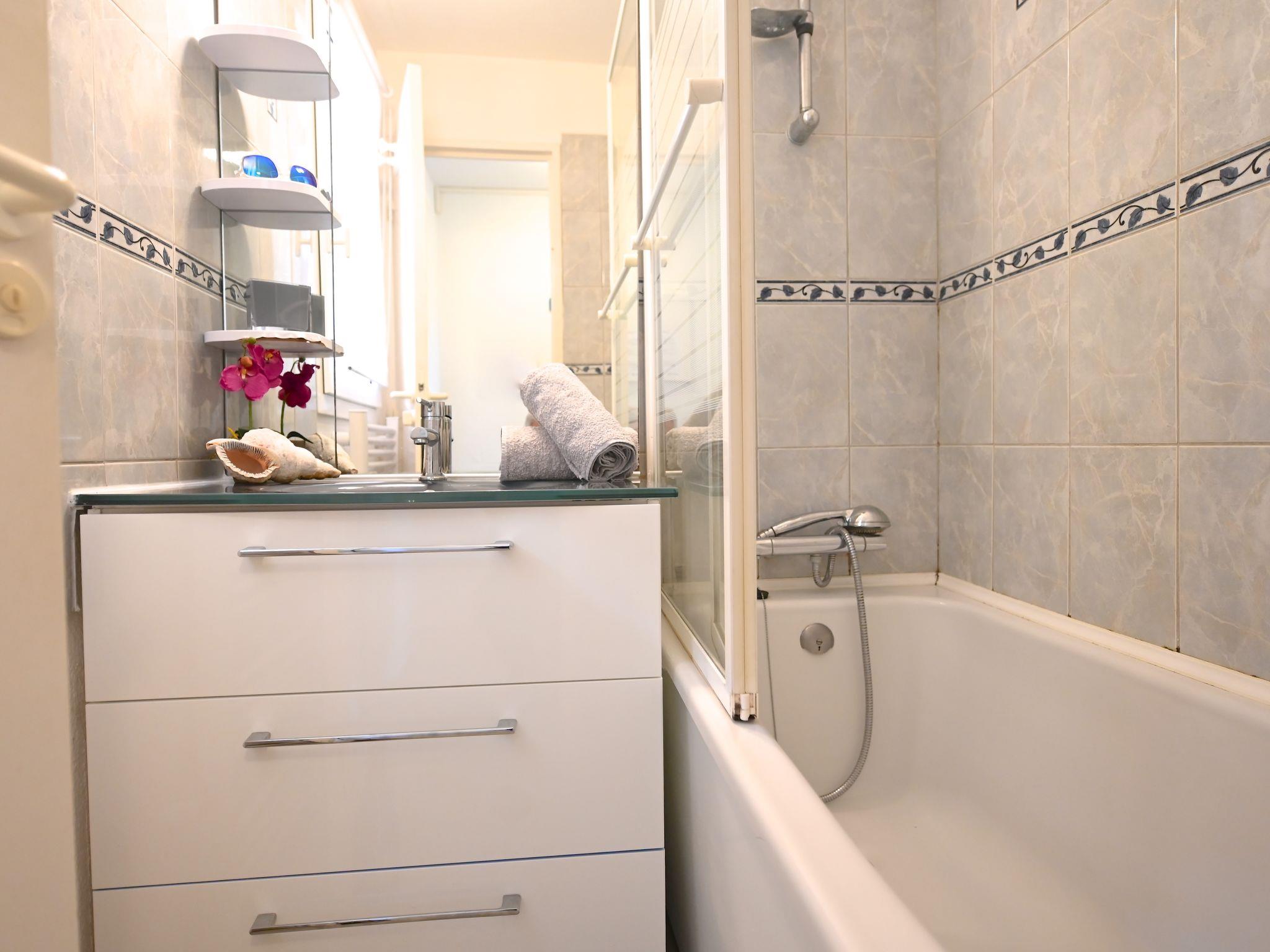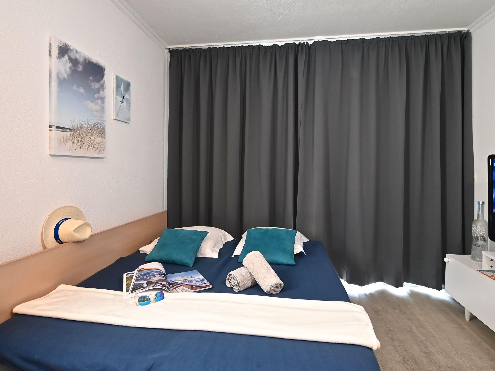"L'Esquinade (H5 201)", 2-room apartment 30 m2 on 1st floor. Beautiful furnishings: living room with 1 pull-out bed (2 x 80 cm, length 190 cm), TV (flat screen), air conditioning. Exit to the terrace. 1 room with 1 french bed (140 cm, length 190 cm), TV, flat screen and air conditioning. Exit to the balcony. Kitchenette (2 hot plates, dishwasher, toaster, kettle, microwave, freezer, electric coffee machine, Capsules for coffee machine (Senséo) extra). Bathroom, sep. WC. Terrace 9 m2. Terrace furniture. View of the sea. Facilities: washing machine, iron, hair dryer. Internet (WiFi, extra). Parking (1 car). Please note: non-smokers only. Smoke alarm. Offer by a private individual according to Art. 155, IV of CGI.