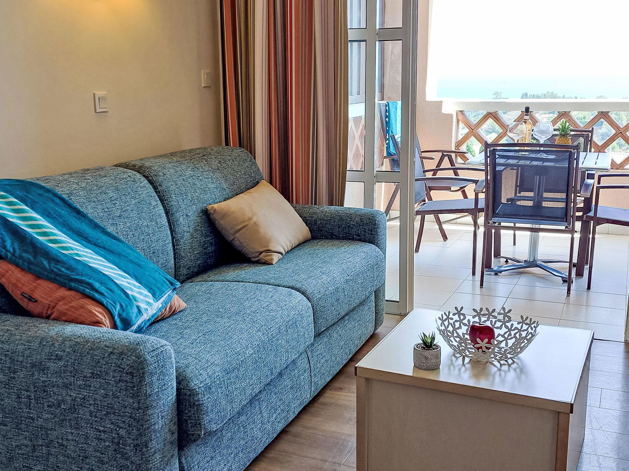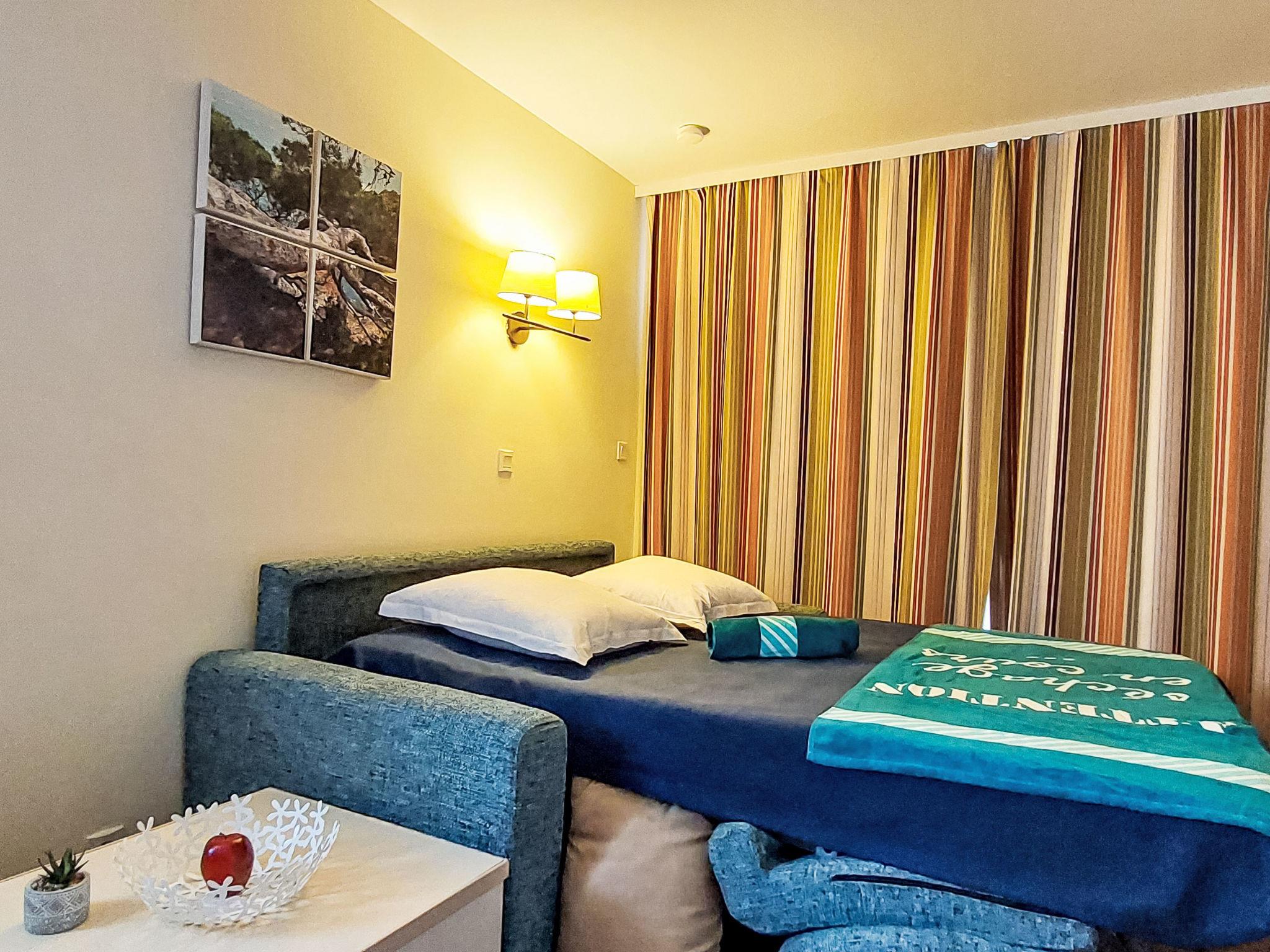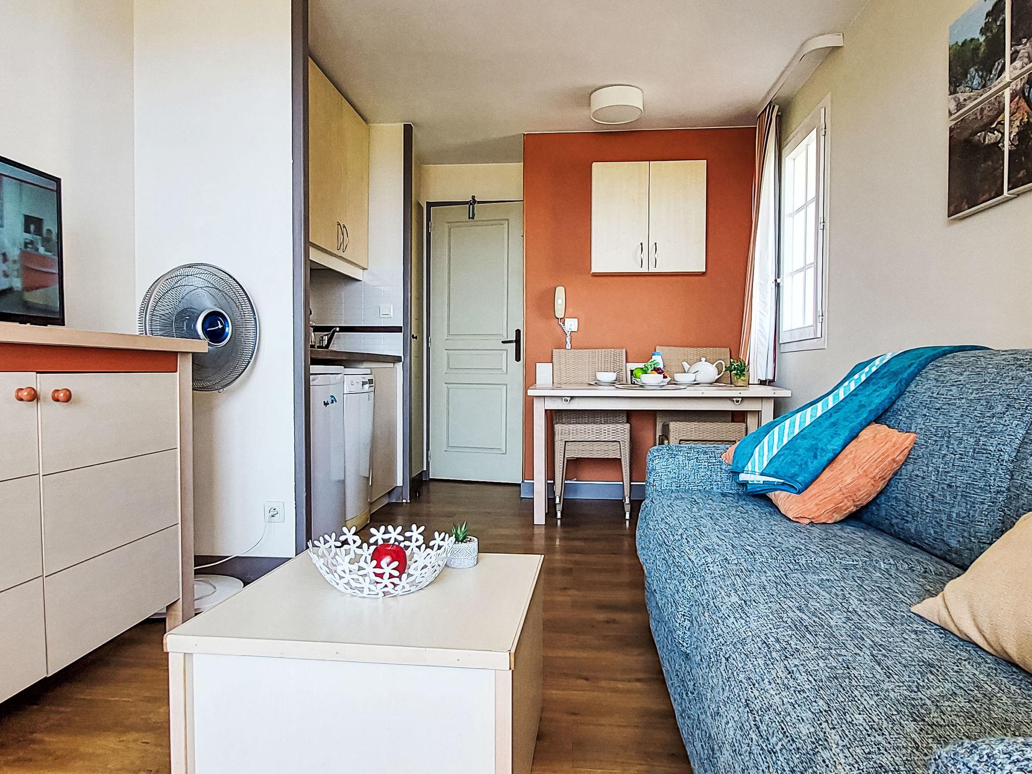 "L'Esquinade (P3 115)", 1-room studio 23 m2. Object suitable for 2 adults + 2 children. Living room with 1 sofabed (140 cm, length 190 cm), TV (flat screen), air conditioning. Exit to the terrace. Sleeping alcove with 1 x 2 bunk beds (80 cm, length 190 cm). Kitchenette (4 hot plates, dishwasher, toaster, kettle, microwave, electric coffee machine). Bath/WC. Electric heating, air-conditioning. Terrace 8 m2. Terrace furniture. View of the sea. Parking (1 car). Please note: non-smokers only. Smoke alarm. Instead of an enclosed bedroom, some sleeping areas are located in an open-plan area (gallery, alcove, etc.). Offer by a private individual according to Art. 155, IV of CGI.