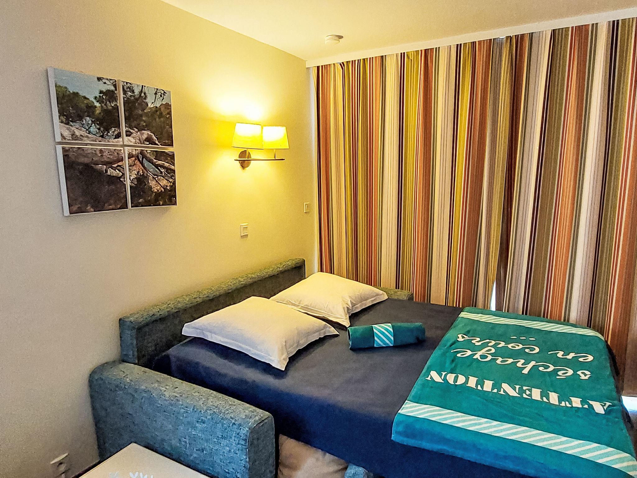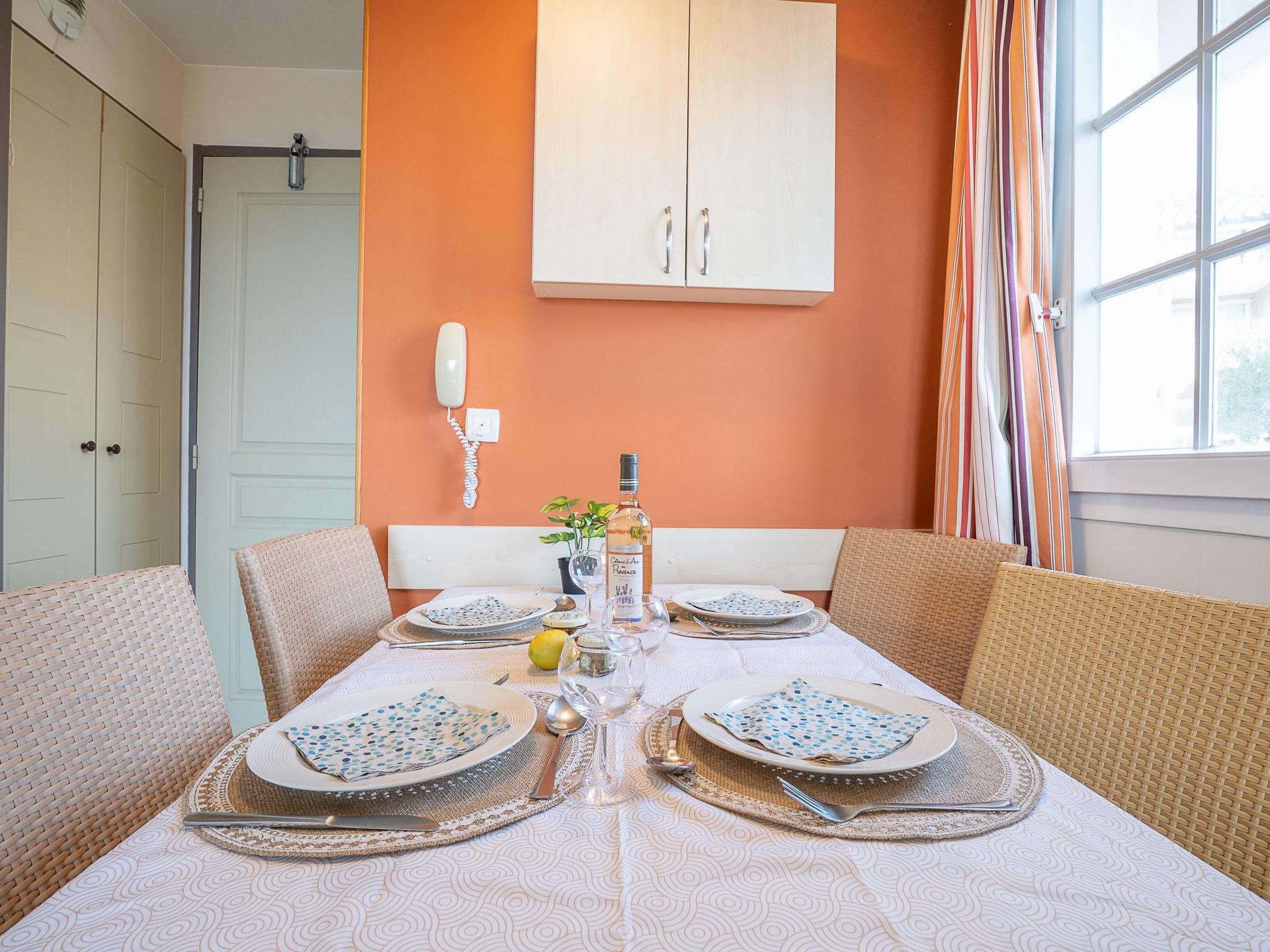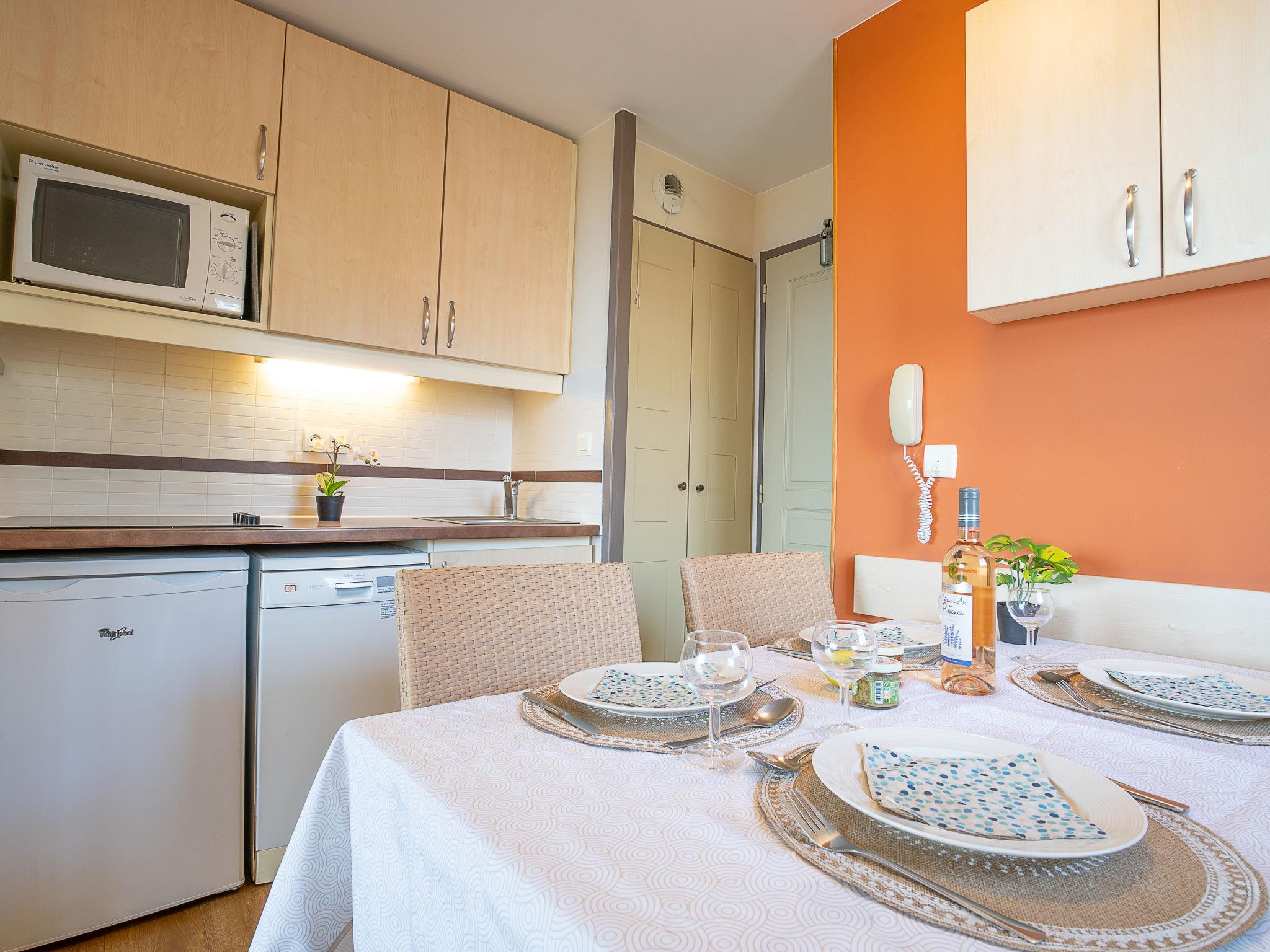 "L'Esquinade (P3 115)", 1-room studio 23 m2. Object suitable for 2 adults + 2 children. Living room with 1 sofabed (140 cm, length 190 cm), TV (flat screen), air conditioning. Exit to the terrace. Sleeping alcove with 1 x 2 bunk beds (80 cm, length 190 cm). Kitchenette (4 hot plates, dishwasher, toaster, kettle, microwave, electric coffee machine). Bath/WC. Electric heating, air-conditioning. Terrace 8 m2. Terrace furniture. View of the sea. Parking (1 car). Please note: non-smokers only. Smoke alarm. Instead of an enclosed bedroom, some sleeping areas are located in an open-plan area (gallery, alcove, etc.). Offer by a private individual according to Art. 155, IV of CGI.