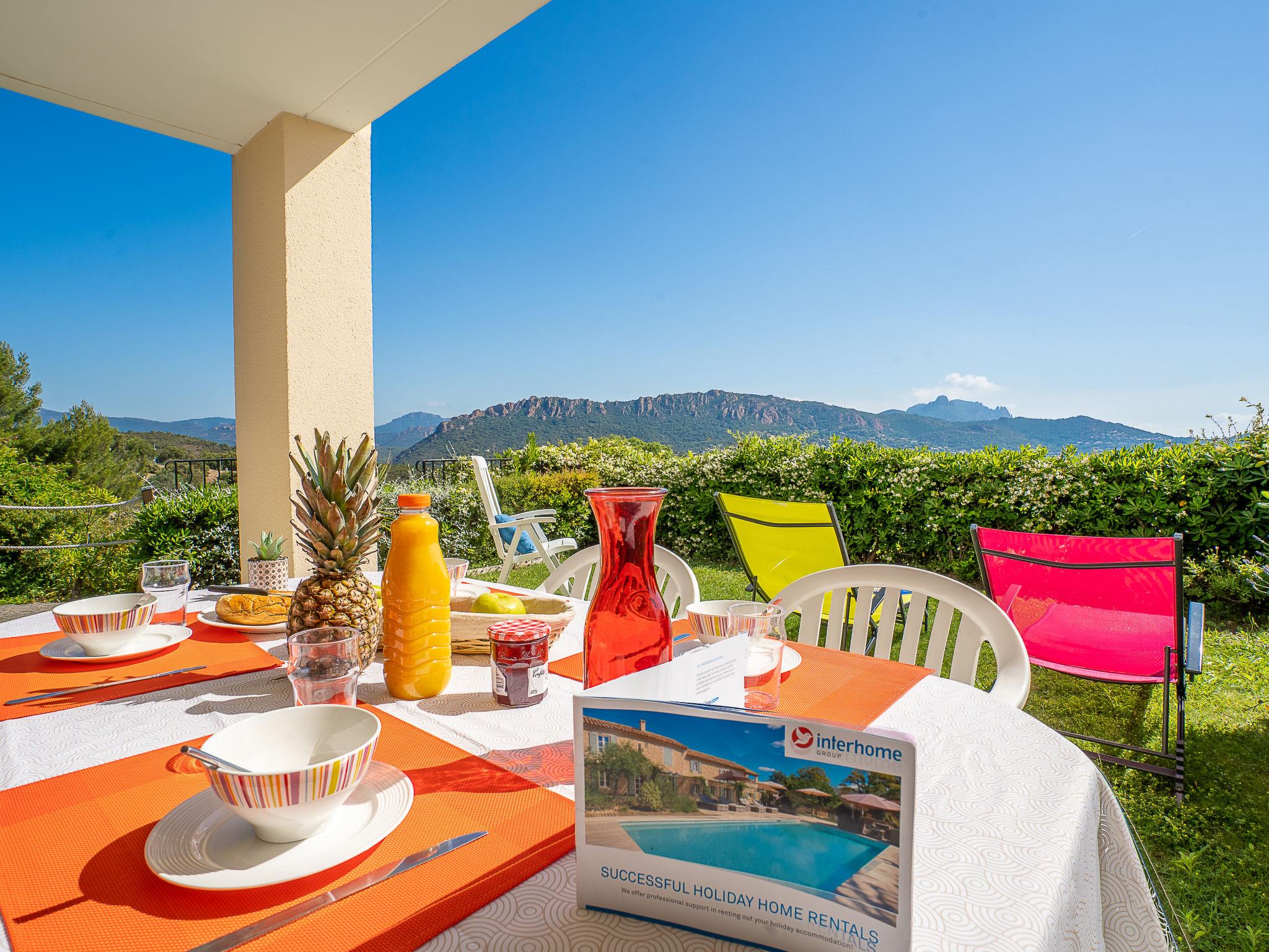 Large resort "Village Cap Estérel - Les Bastides". On the outskirts, 2 km from the centre of Agay, on a slope, in the residential district, 900 m from the sea, 1.8 km from the beach, road to cross, on the golf course, in a pedestrian area. For shared use: park 210 ha, 5 swimming pools (seasonal availability: 06.Apr. - 03.Nov.). Children's pool, boccia, children's playground (slide, swing). In the complex: spa area (extra), shopping facilities, laundry (extra). Shop 500 m, grocery, supermarket 6 km, restaurant 500 m, bakery 500 m, bus stop "Ligne 21" 300 m, railway station "Saint-Raphaël-Valescure TGV" 9 km, sandy beach "Tiki Plage" 900 m. Marina 1 km, golf course (9 hole), tennis 500 m. Nearby attractions: Anthéor 8 km, Saint-Raphaël 9 km, Fréjus 13 km, Cannes 33 km, Saint-Tropez 50 km, Nice 76 km. Well-known lakes can easily be reached: Lac Saint-Cassien. Hiking paths: Massif de l'Estérel. Please note: car-free holiday complex, no lift. Entertainment in the season. Suitable for families, childminding in the season (extra). Guarded residence. Additional accommodations can be booked. Access to the apartments is via steps, even on the ground floor.