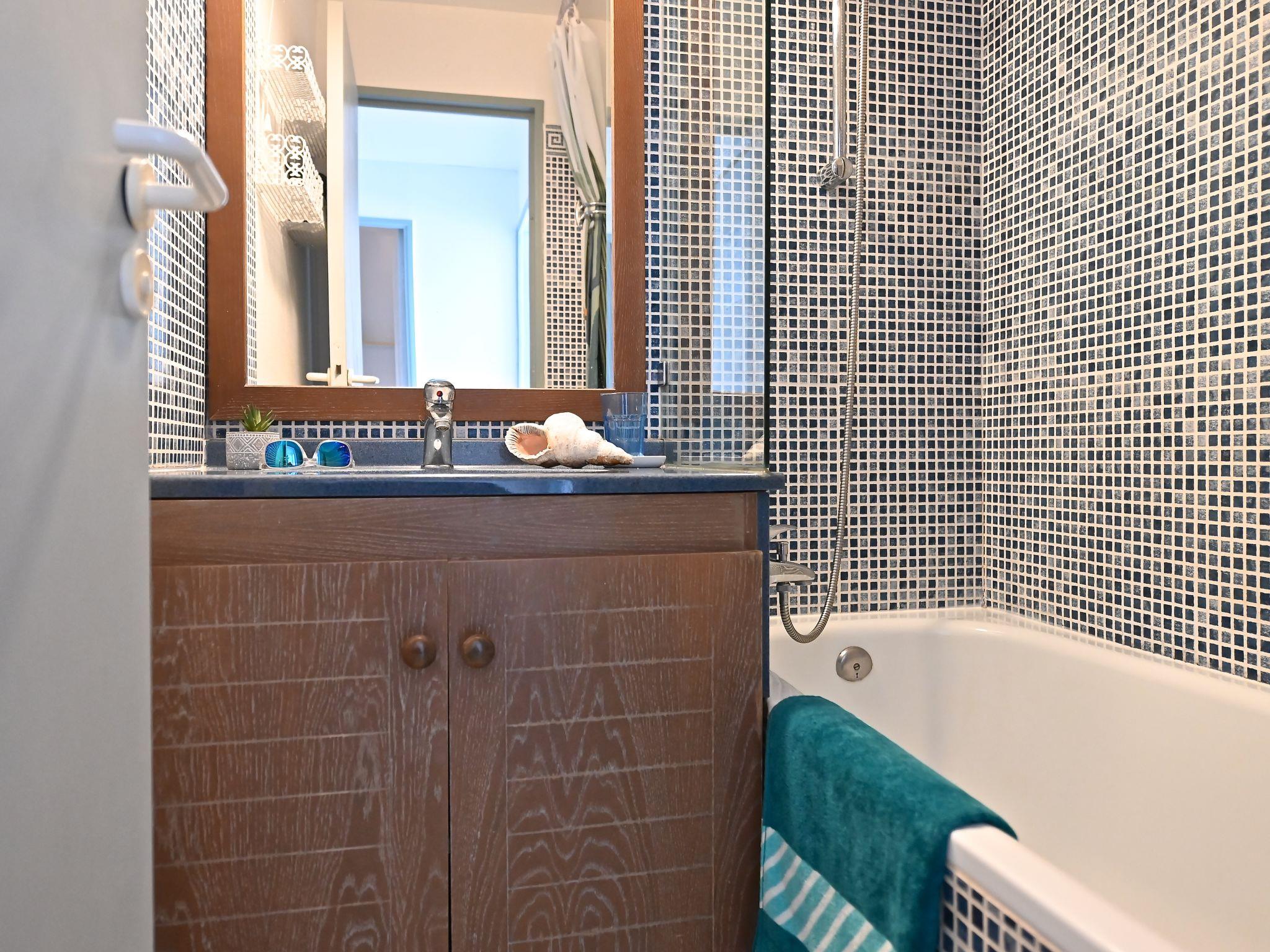 "Le Hameau (L2 202)", 3-room apartment 40 m2 on 1st floor. Object suitable for 4 adults + 2 children. Living room with panoramic window with 1 sofabed (140 cm, length 190 cm), cable TV (flat screen), electric heating. Exit to the terrace. 1 room with 1 french bed (140 cm, length 190 cm). Sleeping alcove with 1 x 2 bunk beds (80 cm, length 190 cm). Open kitchen (4 hot plates, mini-oven, dishwasher, toaster, kettle, microwave, freezer, electric coffee machine). Bathroom, shower/WC. Electric heating. Terrace 13 m2, roofed. Terrace furniture. View of the sea and the swimming pool. Facilities: washing machine, iron, baby cot (extra), hair dryer. Internet (WiFi, free). Parking space n 2107 - 2,20m x 3,30m (roofed, 1 car), height 180 cm. Please note: non-smokers only. Smoke alarm. Offer by a private individual according to Art. 155, IV of CGI. FR8553.700.20