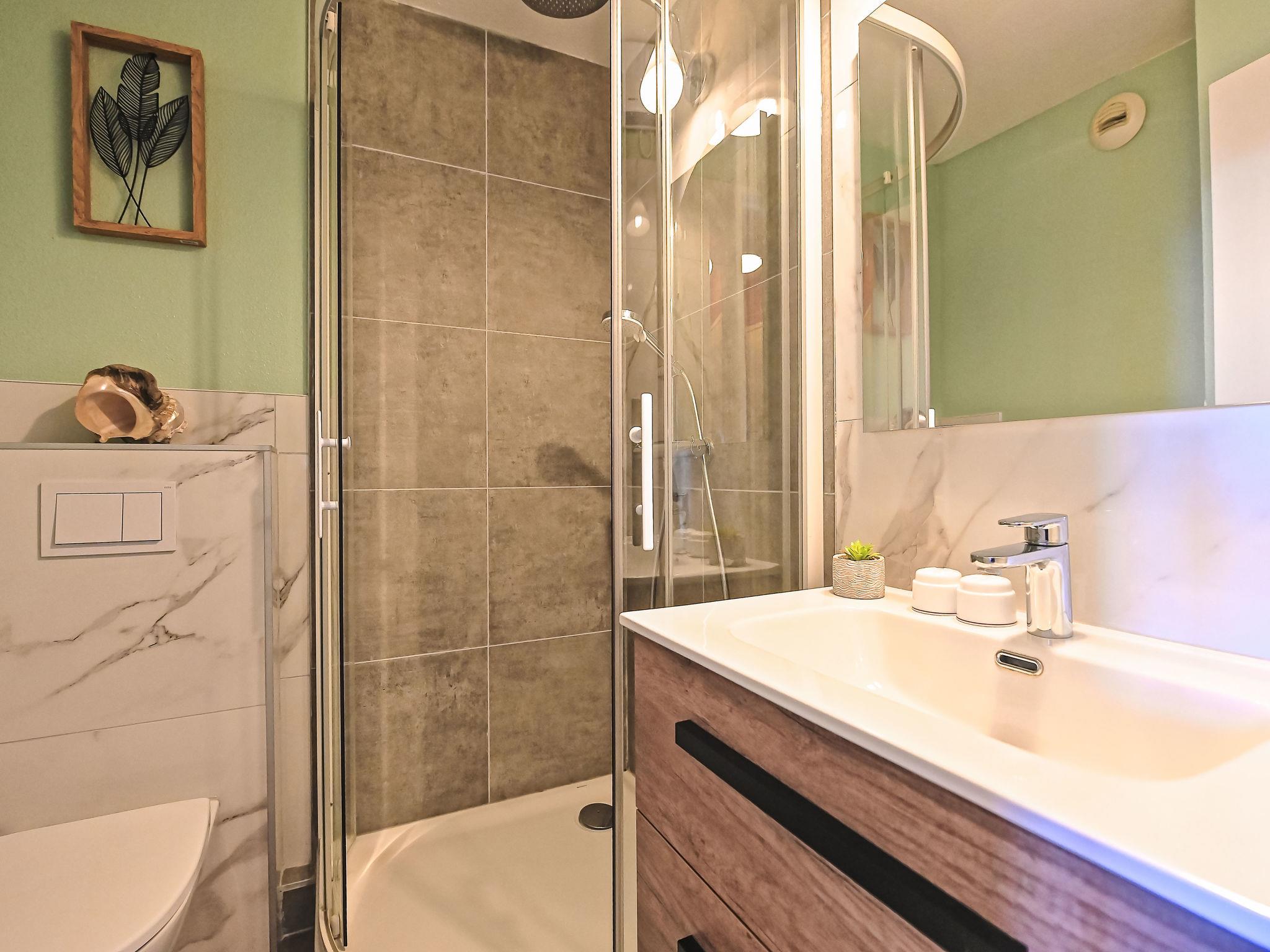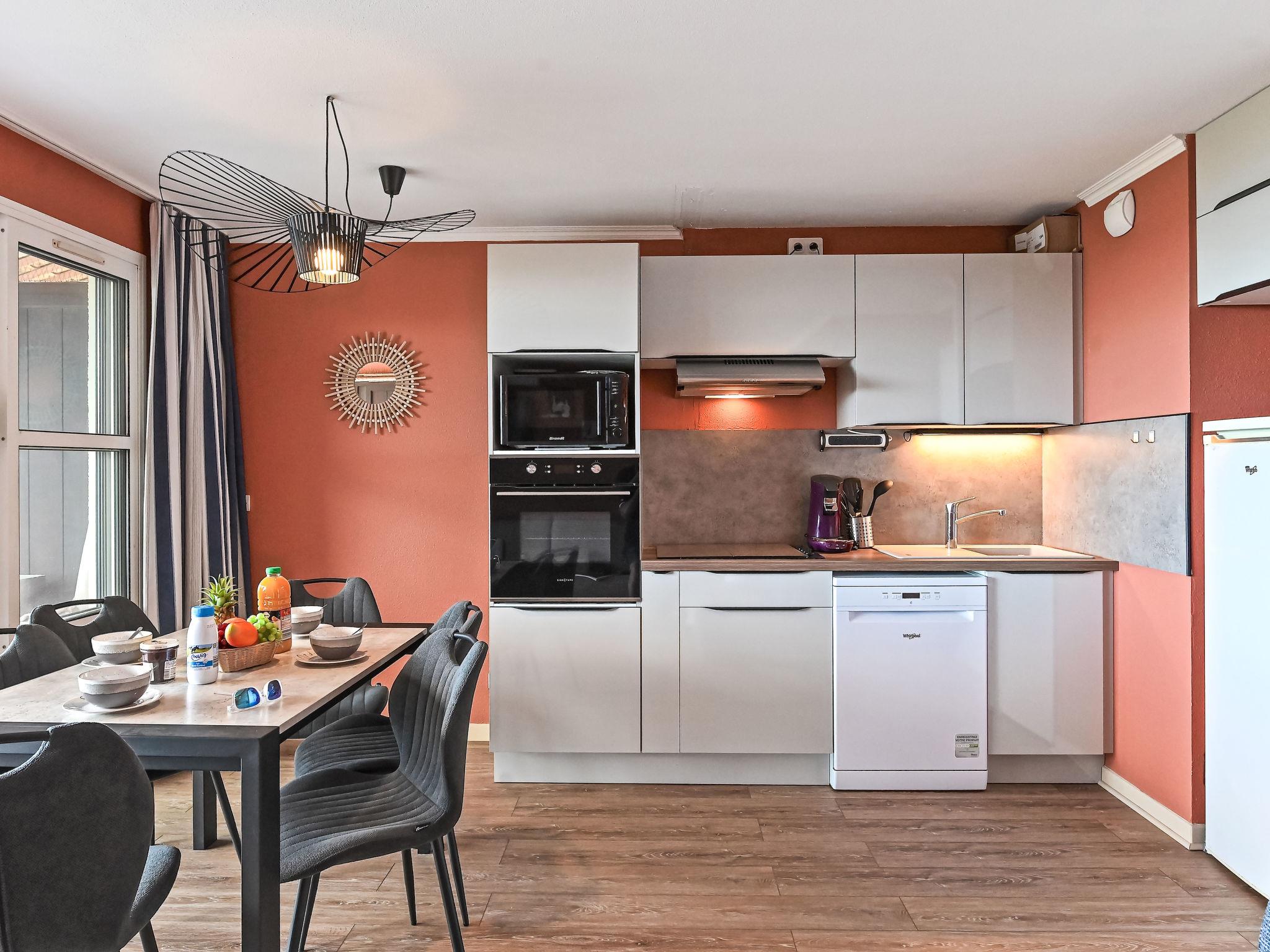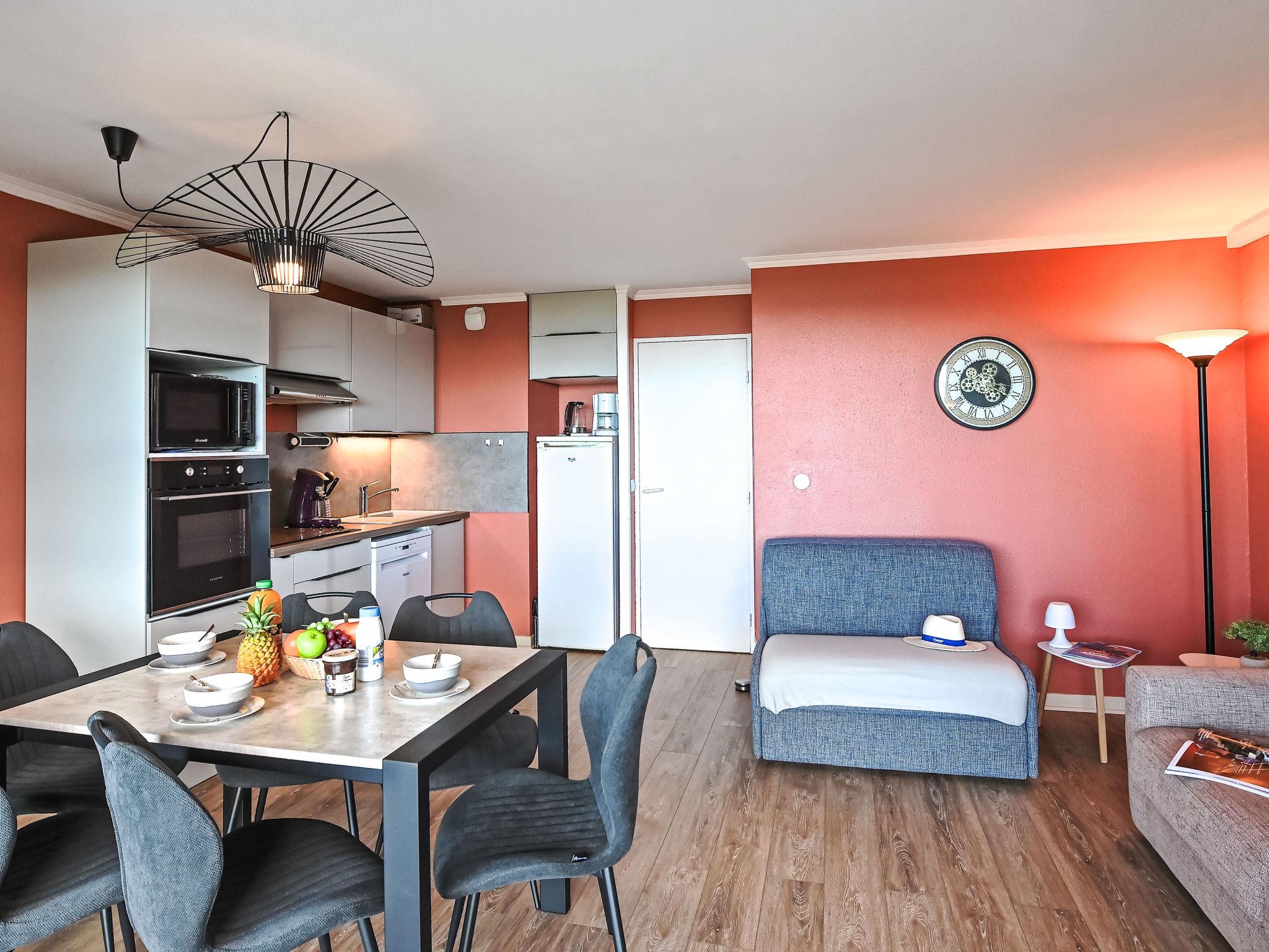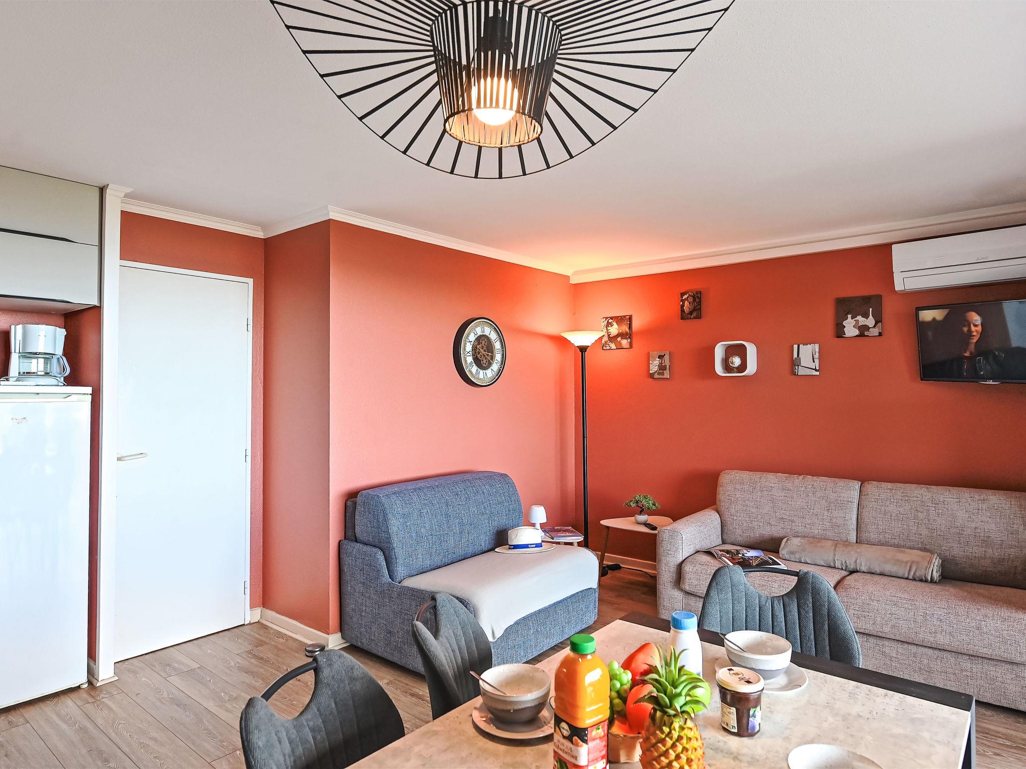 "Le Hameau (M4 333)", 3-room apartment 40 m2 on 2nd floor. Object suitable for 4 adults + 2 children. Living room with 1 bed (80 cm, length 190 cm), 1 sofabed (140 cm, length 190 cm), TV (flat screen), air conditioning. Exit to the terrace. 1 room with 1 french bed (140 cm, length 190 cm), air conditioning. 1 small room with 1 x 2 bunk beds (80 cm, length 190 cm), fan. Kitchenette (4 hot plates, dishwasher, toaster, kettle, freezer, electric coffee machine, Capsules for coffee machine (Senseo) extra, combination microwave). Bathroom, shower/WC. Heating, air-conditioning. Terrace 10 m2, roofed. Terrace furniture, deck chairs (3). View of the sea. Facilities: hair dryer. Internet (WiFi, extra). Parking space n 2061 - 2,20m x 3,30m (roofed, 1 car), height 180 cm. Please note: non-smokers only. Maximum 1 small pet/ dog allowed. Smoke alarm. Offer by a private individual according to Art. 155, IV of CGI.