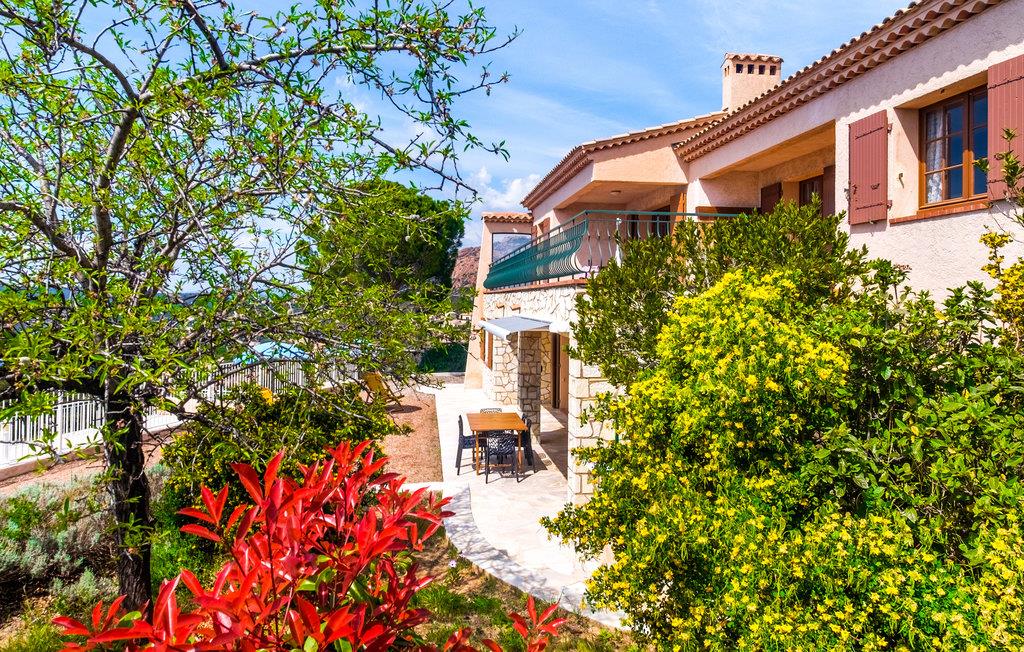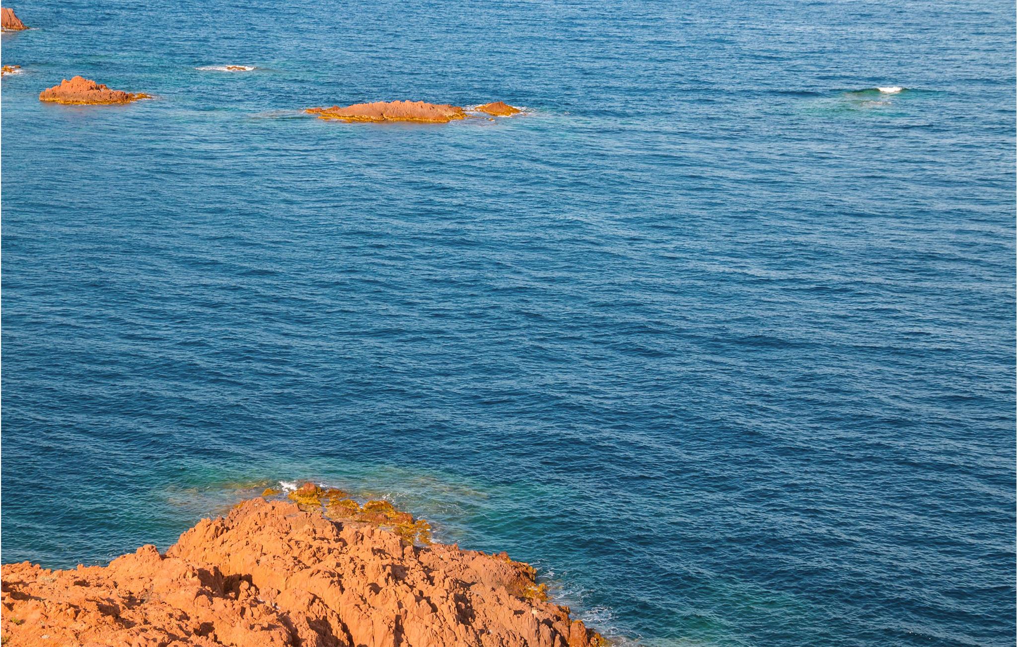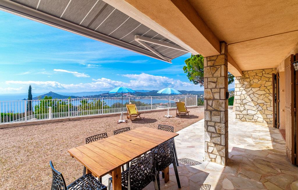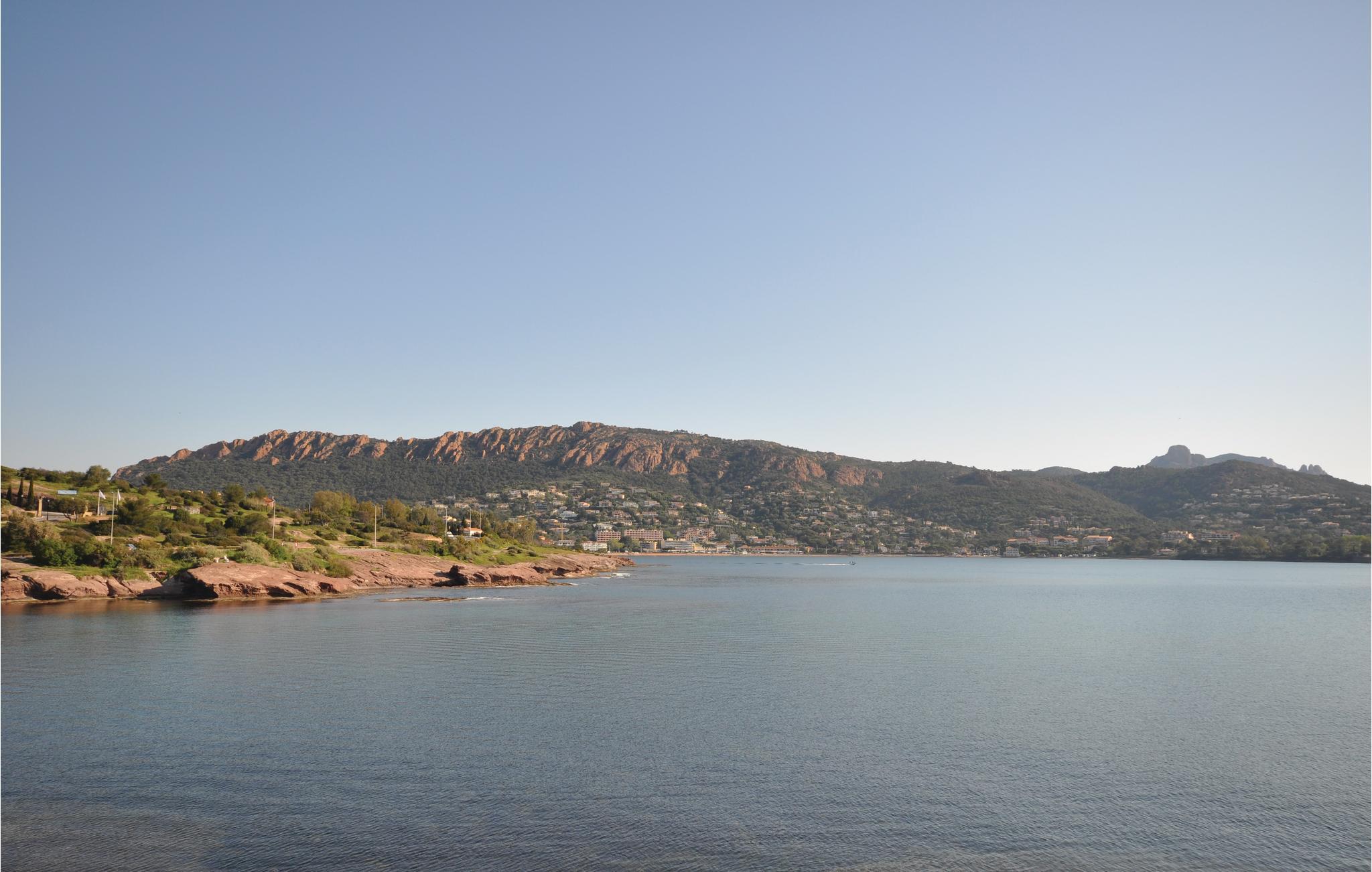 Huset där denna lägenhet på bottenvåningen ligger ligger på en kulle i ett privat residens. Det perfekta läget ger dig en vacker panoramautsikt över Agay-bukten. Den övre våningen används mycket sällan av husägaren. Den stora poolen (12 x 5,5 m) är för din exklusiva användning. Här kan du njuta av lugnet och den hisnande utsikten i timmar. Eller så kan du köra till sandstränderna, som ligger bara 1,5 km bort. Endast 600 m från FCV075, FCV076, FCV077.