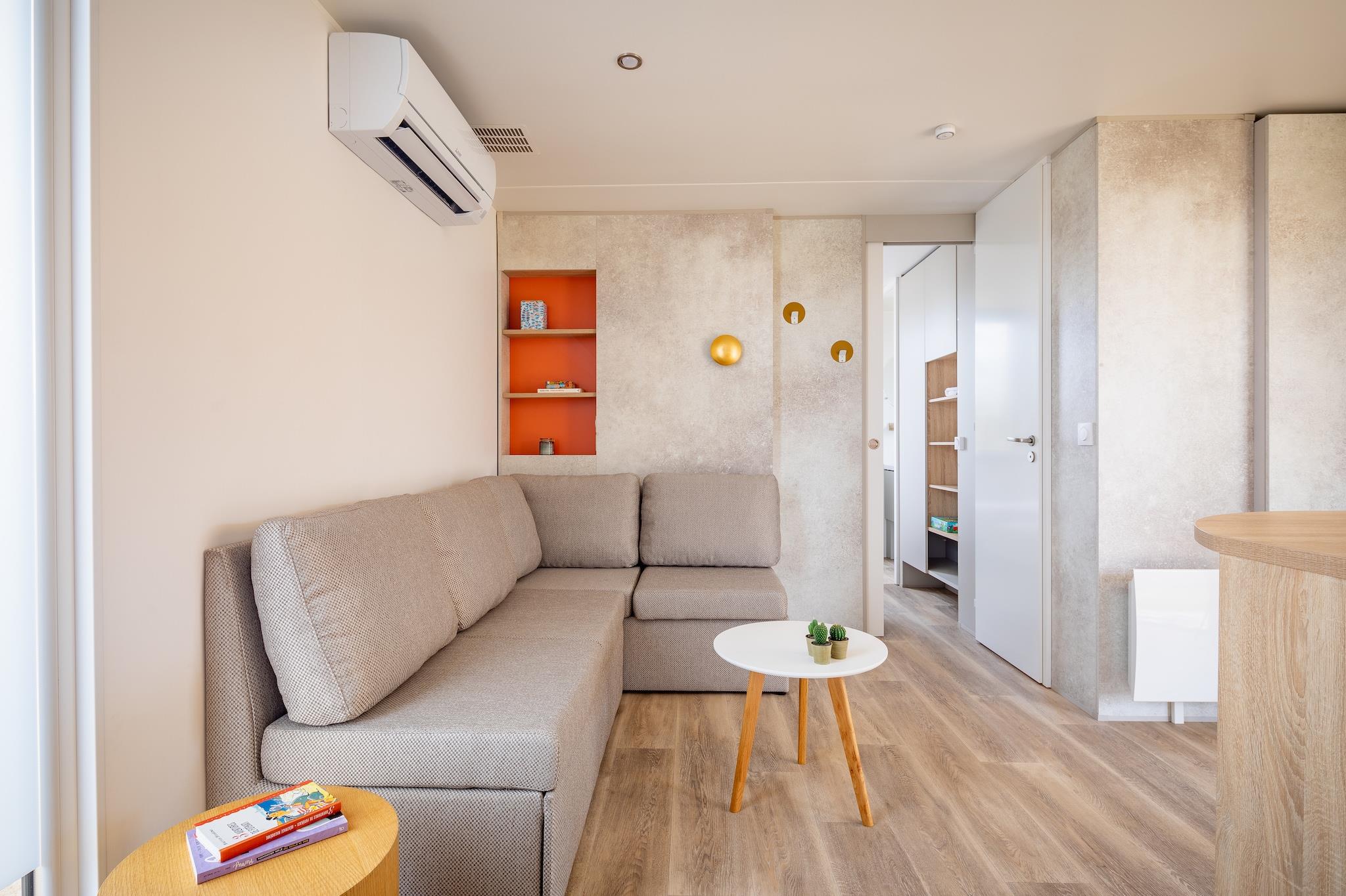 Välkommen till din stilfulla tillflyktsort på nyöppnade Beach Resort Agde! Inbäddat i en lugn, bilfri park bara 1,5 km från Medelhavet, erbjuder denna fristående enplansstuga moderna bekvämligheter i en historisk kustmiljö. Det ljusa vardagsrummet har en streaming-aktiverad TV för mysiga filmkvällar, medan det fullt utrustade öppna köket har en diskmaskin, kaffebryggare och mikrovågsugn. Två fridfulla sovrum har vart sitt eget badrum, där mastern har en TV och egen toalett. Håll dig sval året runt med effektiv luftkonditionering och varva ner på din privata terrass med trädgårdsmöbler. Beläget bara 3 km från hjärtat av Agde, hittar du historia, kultur och fantastiska vyer till hands. Tillbringa dagen med att utforska den charmiga gamla stan, upptäck antika romerska ruiner eller njut av shopping i lokala butiker. För strandälskare erbjuder de närliggande stränderna av Grau d'Agde soldränkt avkoppling, vattensporter och livliga kaféer vid havet. Parkens lugna, bilfria layout säkerställer en fridfull miljö att ladda om efter en dags sightseeing. Avsluta dagen med ett kulinariskt äventyr - bara en kort bilresa bort hittar du härliga restauranger som serverar medelhavsklassiker, färska skaldjur och lokala viner. Besök marinan för en romantisk middag vid vattnet eller besök någon av de många bistroerna som erbjuder äkta sydfransk mat. Oavsett om du är här för att varva ner, utforska eller båda, är denna moderna stuga den perfekta hemmabasen på Frankrikes soldränkta södra kust.