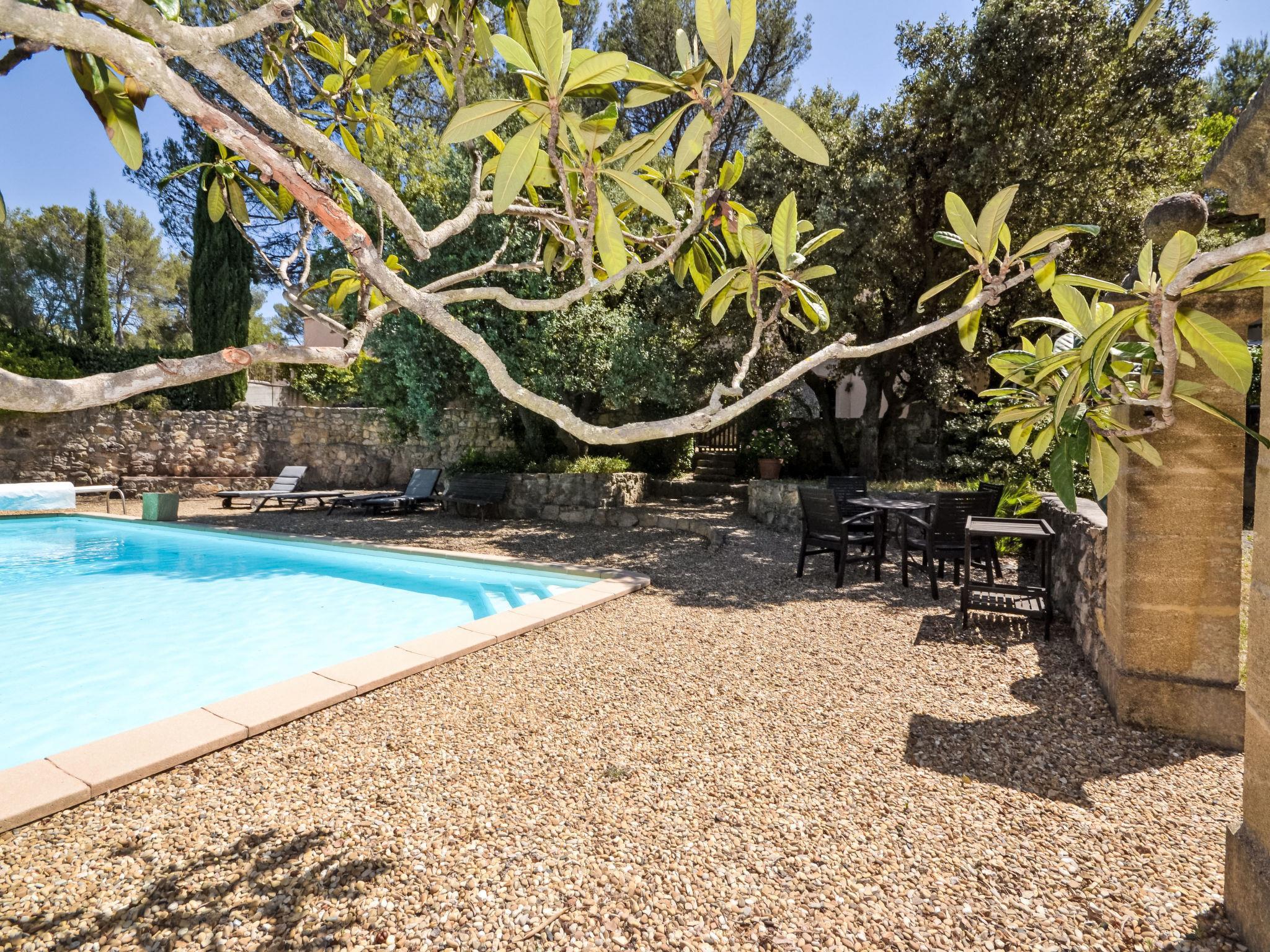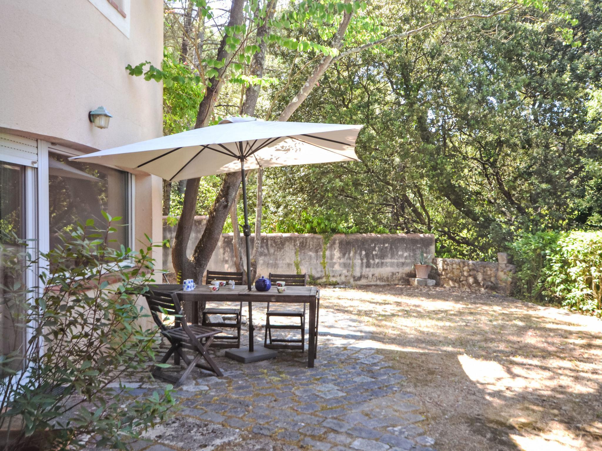 Fuveau 14 km from Aix-en-Provence: 2-family house "Kerkor". In a hamlet, in a quiet, elevated position, in the countryside. For shared use: swimming pool angular fenced (10 x 6 m, depth 120 - 250 cm, seasonal availability: 01.Jun. - 30.Sep.). Pool maintenance by the owner/gardener. Private: terraced garden, 200 m2 (fenced) trees. In the house: central heating system. Motor access to 10 m from the house (via unmade road). (2 steps). Parking on the premises. Shop 2 km, grocery 2 km, supermarket 2 km, restaurant 2 km, bus stop "Cimetière" 1.3 km, sandy beach "Le Resquiadou" 35 km, swimming bay 35 km, concrete beach 38 km. Sports harbour 35 km, golf course (18 hole) 4 km, tennis 2 km, riding stable 4 km. Nearby attractions: Cassis 35 km, Marseille 37 km, Bandol 54 km. Hiking paths: Grand Site Sainte-Victoire, Parc Naturel Régional du Lubéron. Please note: car recommended. Object suitable for 2 adults + 2 children. The owner lives on the same property.