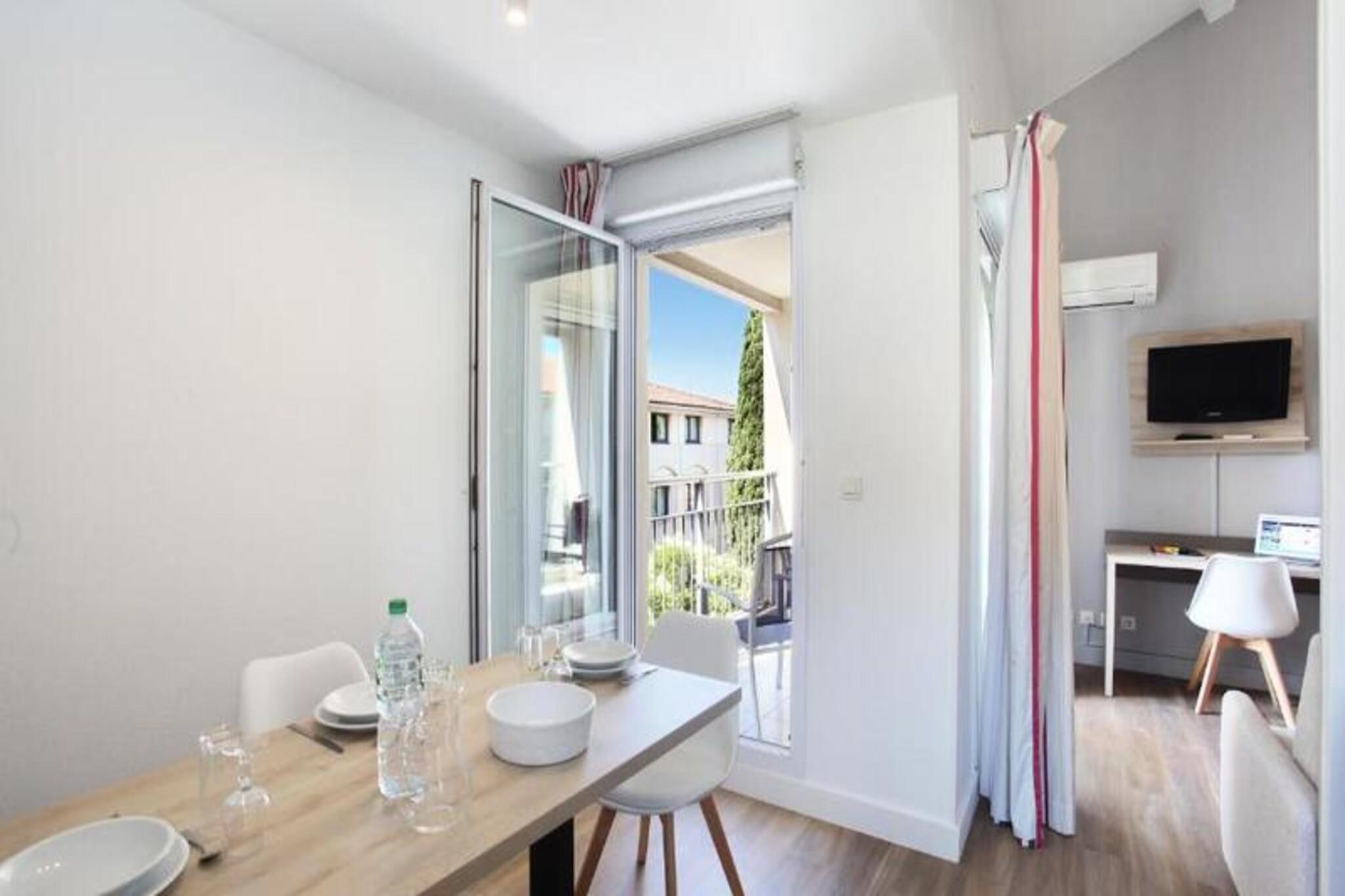 Detta moderna lägenhetshotell erbjuder ljusa och rymliga rum för upp till sex gäster. Varje enhet är luftkonditionerad och har ett vardagsrum med en bäddsoffa, ett sovrum med en dubbelsäng och ett annat med två enkelsängar. Vissa enheter har en mezzanin för extra charm. Alla boenden har en platt-TV, gratis Wi-Fi och en balkong eller loggia. Husdjursvänliga alternativ är tillgängliga mot en avgift, men begränsningar gäller. Sängkläder och handdukar ingår, vilket garanterar en bekväm vistelse. Hotellet ligger bara 15 minuters promenad eller en snabb bussresa från Aix-en-Provences historiska centrum, och erbjuder bekväm tillgång till stadens rika kulturarv. Utforska de livliga gatorna, historiska platserna och livliga lokala marknader. Det närliggande berget Sainte-Victoire erbjuder utmärkta vandringsmöjligheter, medan områdets kaféer och restauranger visar upp Provences smaker. Ytterligare bekvämligheter inkluderar ett fullt utrustat pentry, ett privat badrum eller dusch med toalett och valfri daglig städning eller slutstädning. På plats finns gratis utomhusparkering, begränsad avgiftsbelagd parkering under tak och en frukostservice tillgänglig mot en avgift. Gästerna har också tillgång till en 24-timmarsreception, tvättservice och ett babykit på begäran för familjeresenärer.