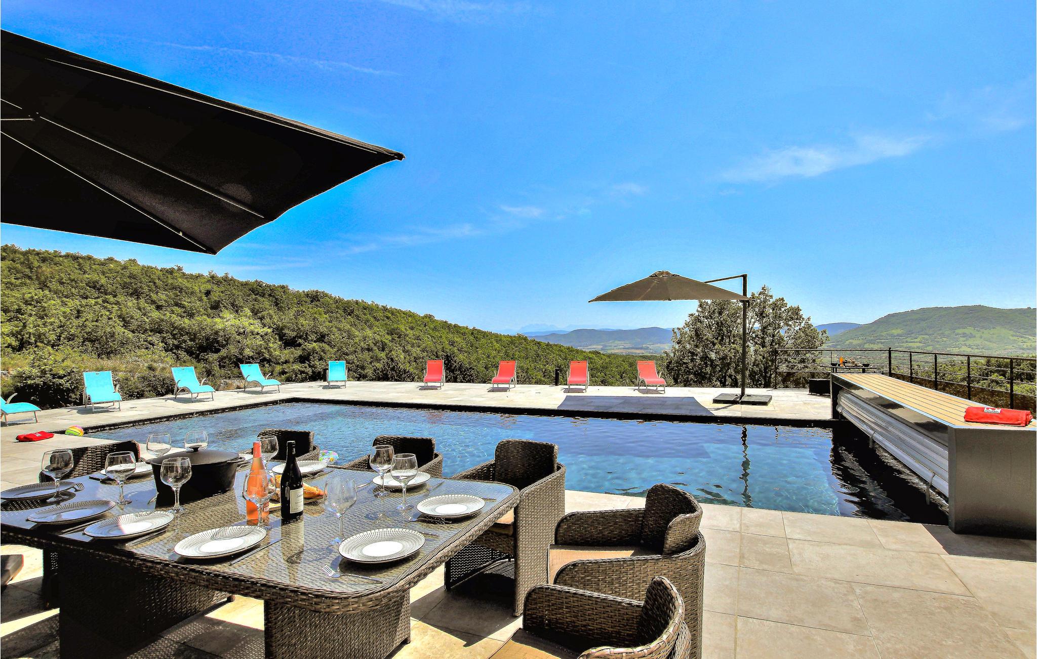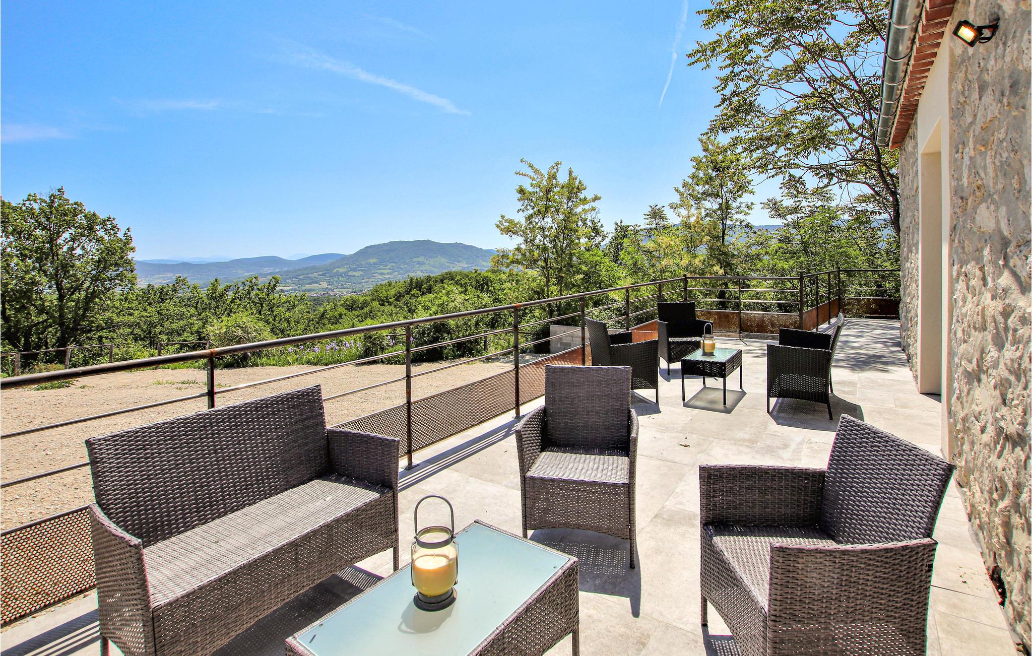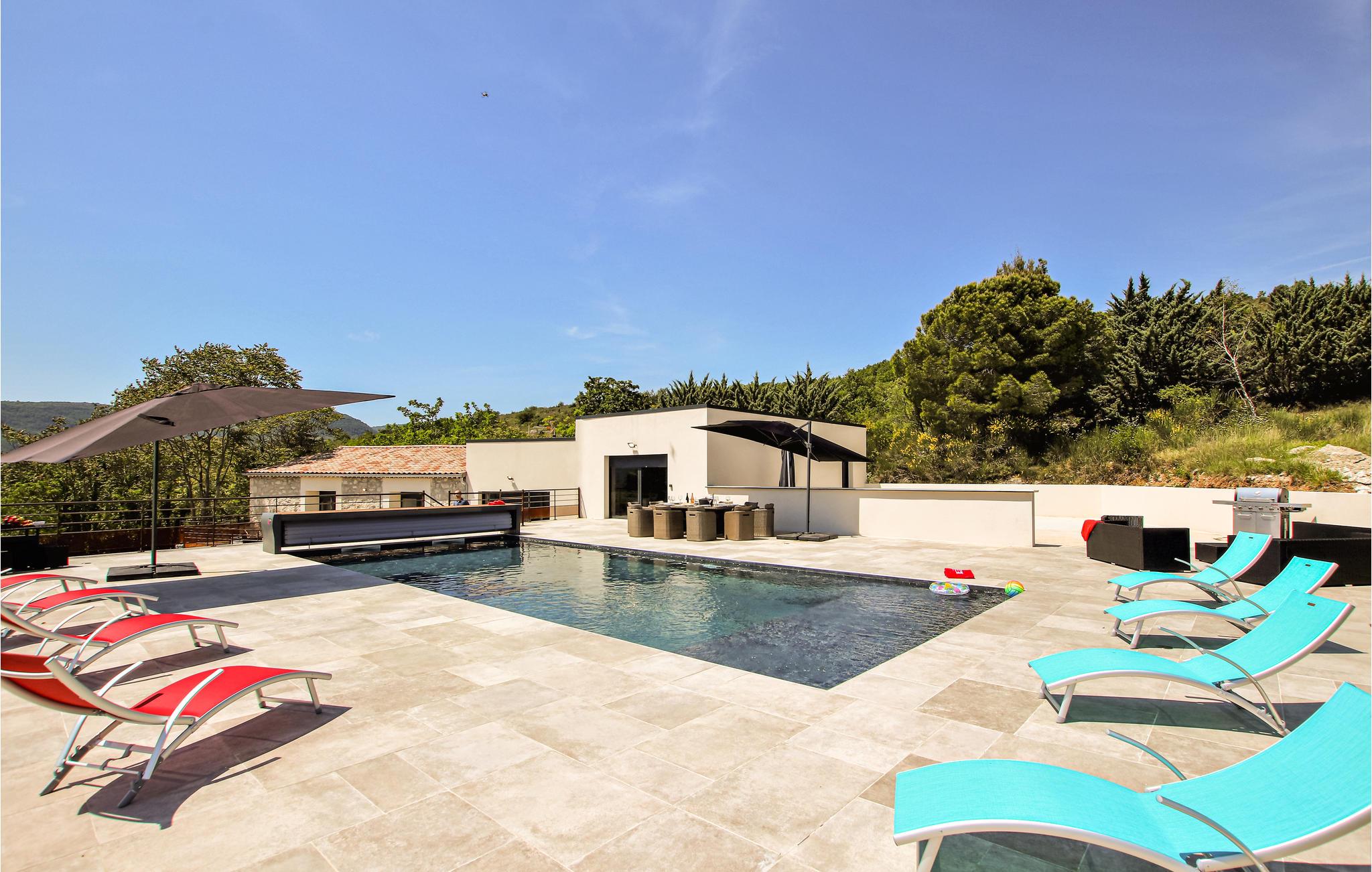 Njut av den fantastiska utsikten från detta bekväma semesterhus med pool.