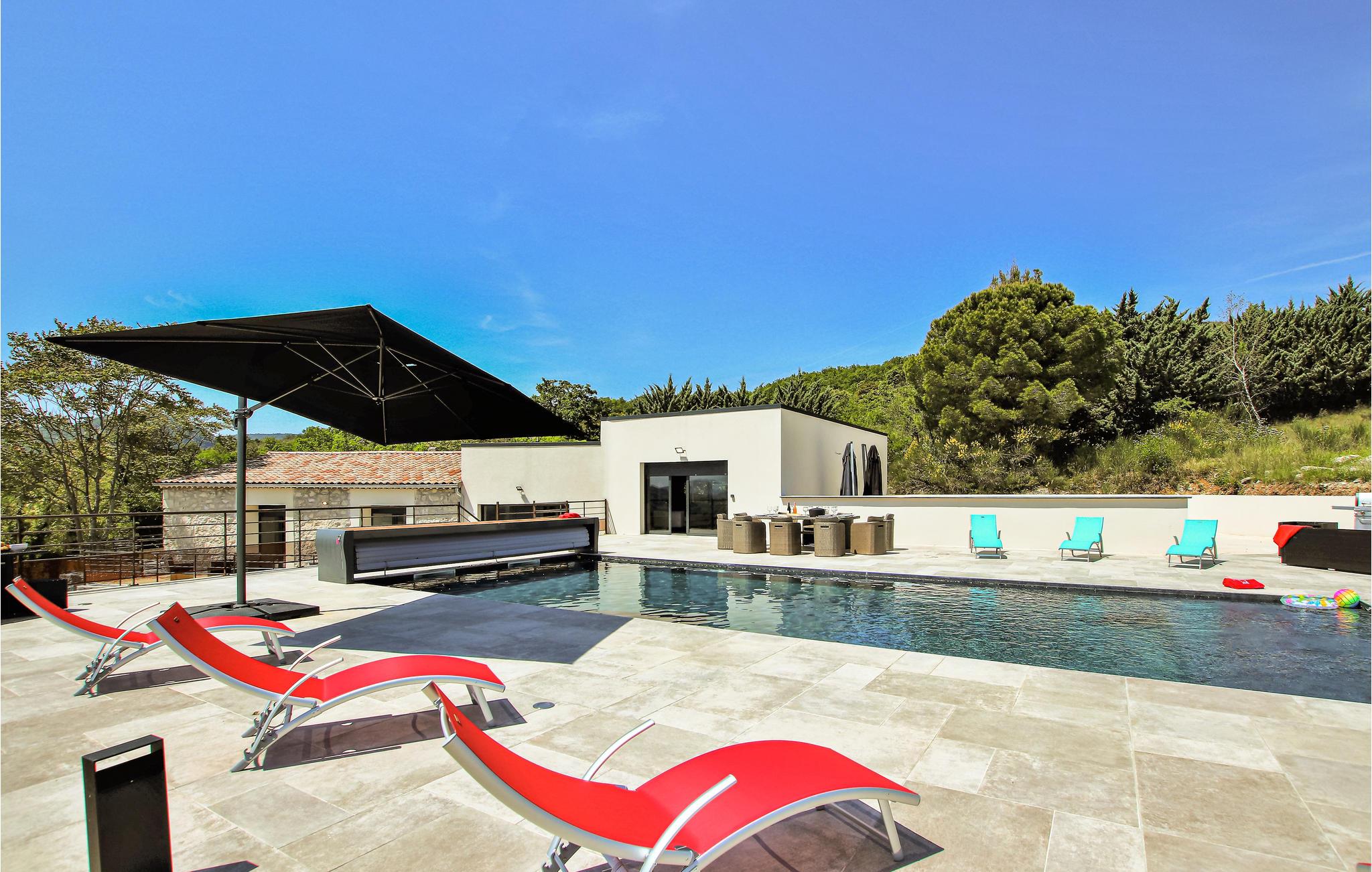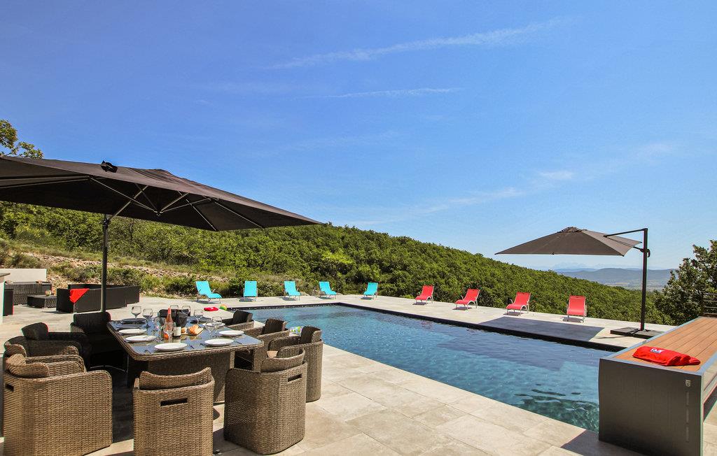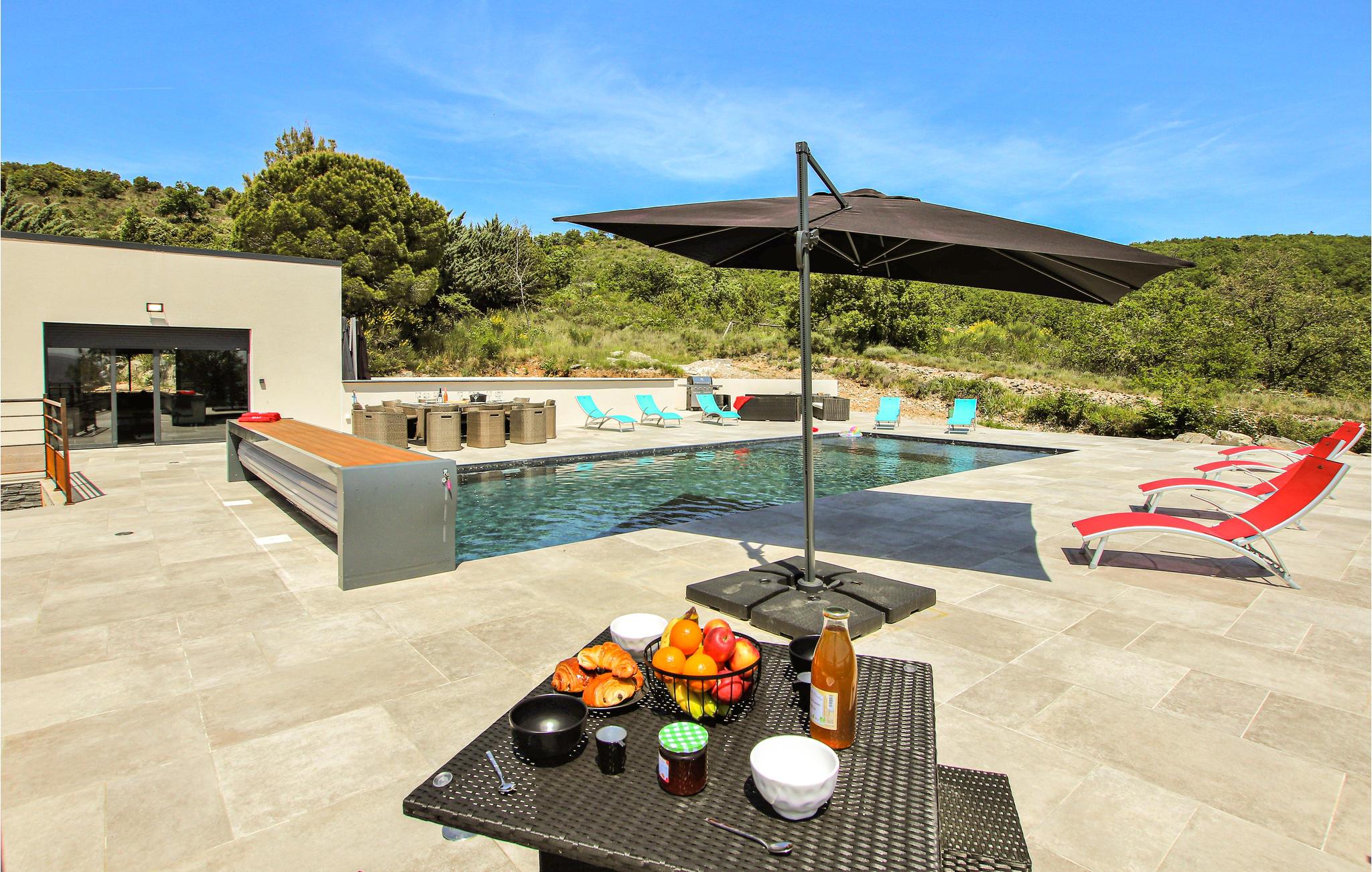 Njut av den fantastiska utsikten från detta bekväma semesterhus med pool.