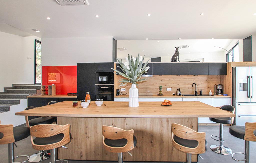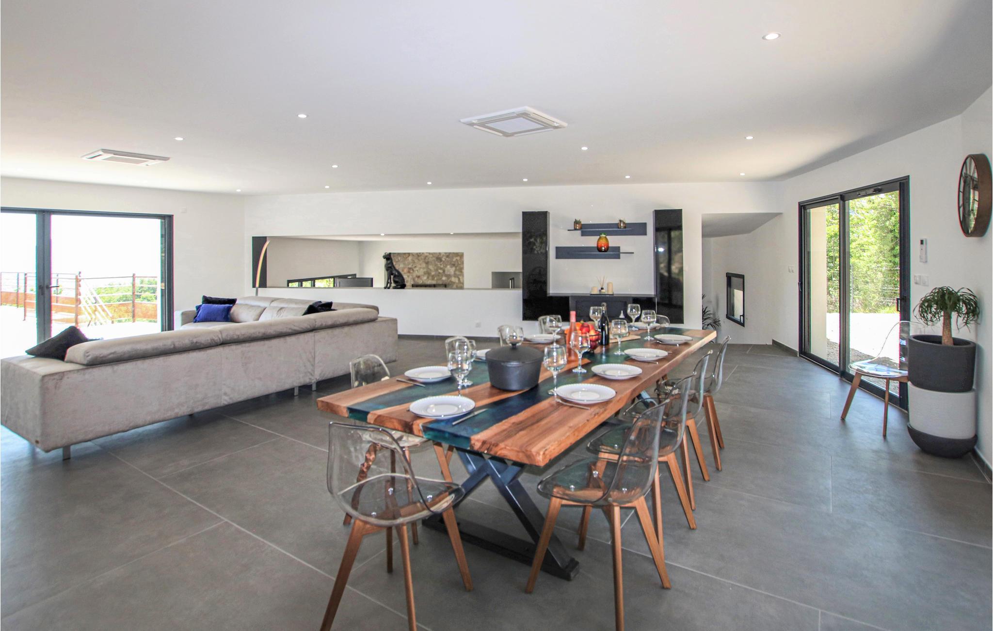 Det rymliga huset välkomnar dig med ett fantastiskt läge i fridfulla omgivningar och erbjuder den perfekta miljön för en oförglömlig semester med dina nära och kära. I de eleganta rummen med moderna möbler och spännande färgaccenter kan ni verkligen njuta av er tid tillsammans. Koppla av i den rymliga soffgruppen och se fram emot mysiga kvällar med en film eller ett gott samtal.