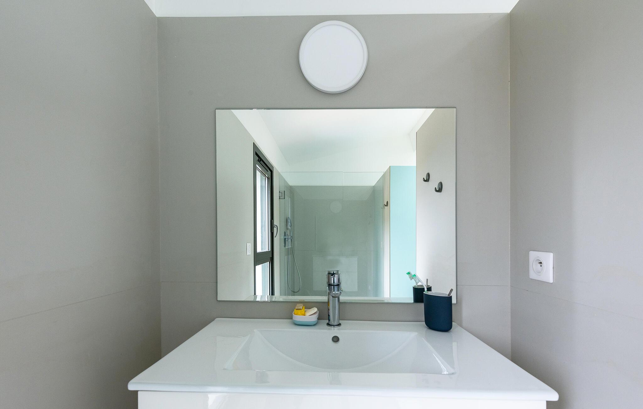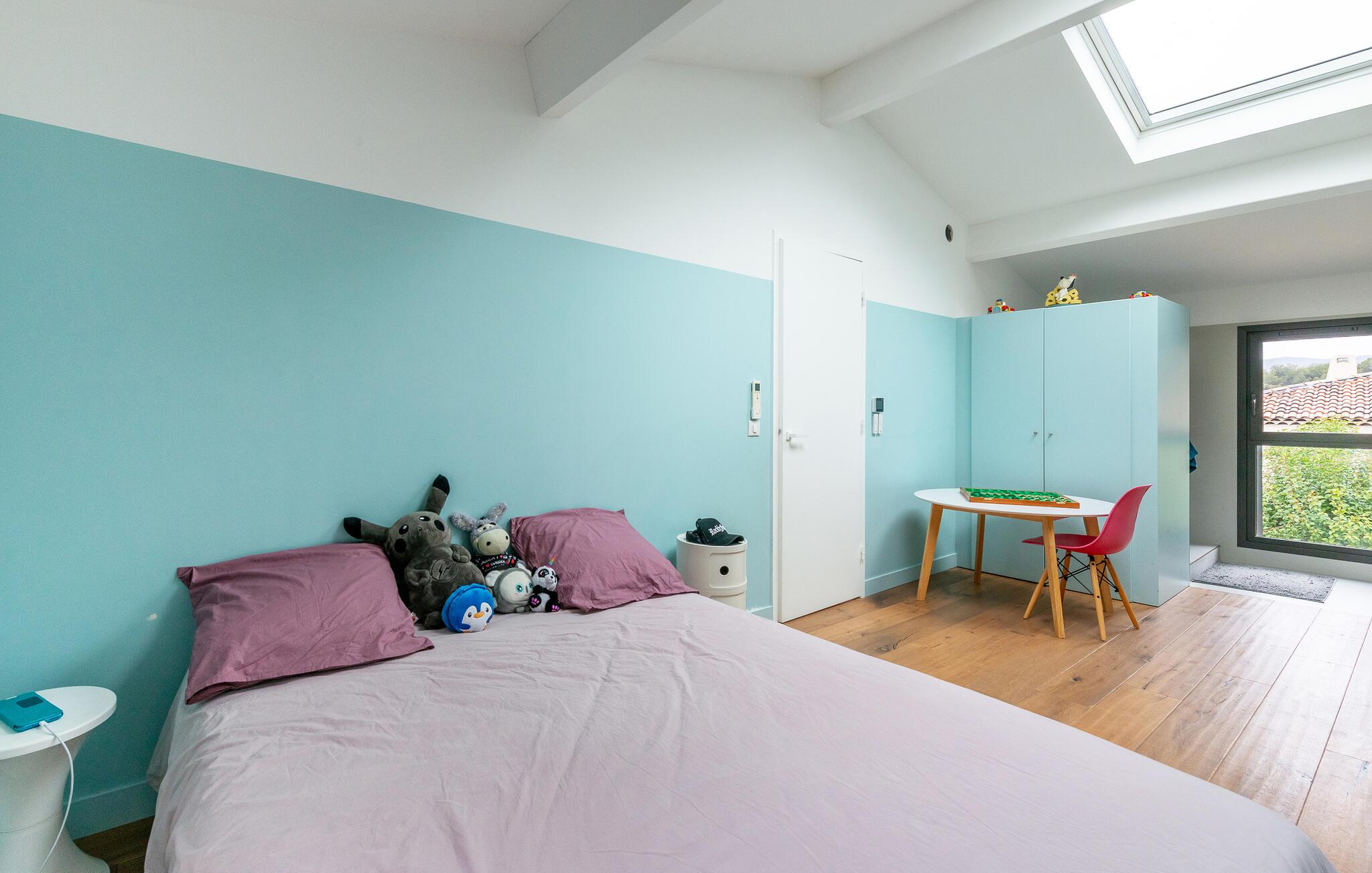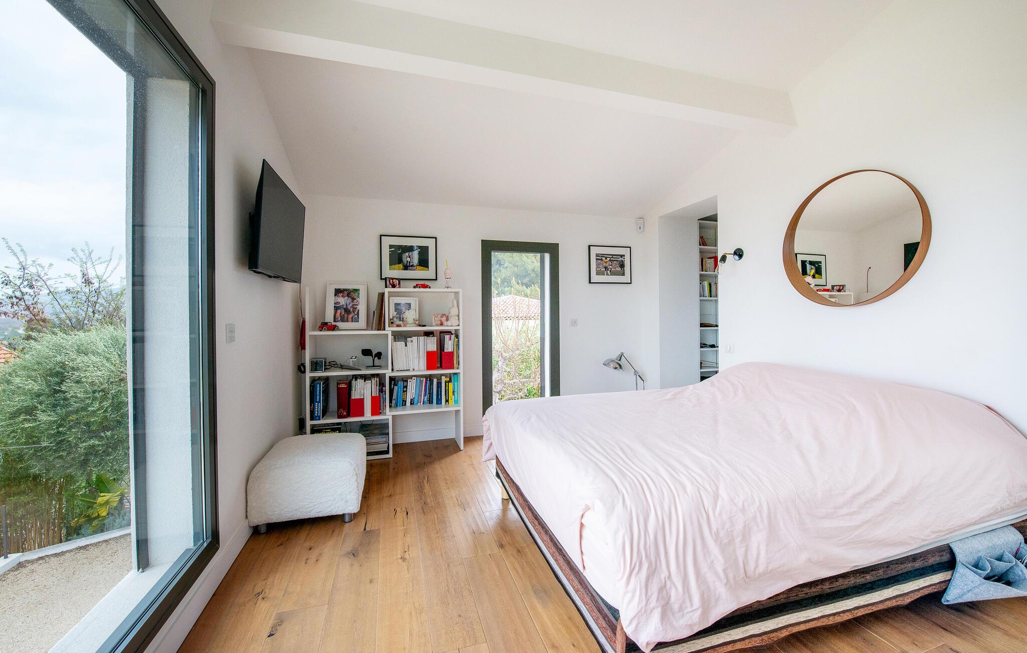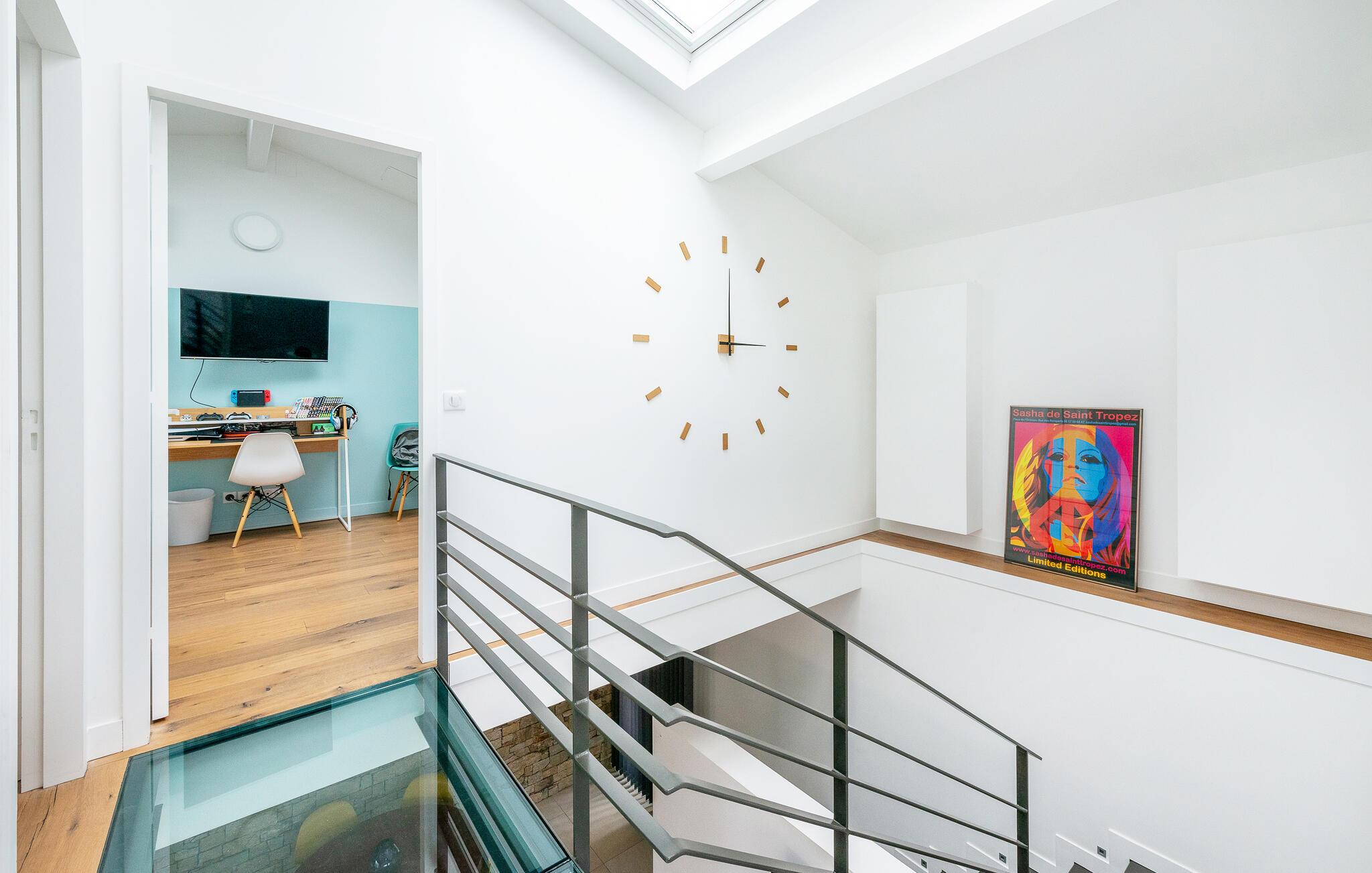 Res tillsammans med din familj till detta underbara semesterhus, som erbjuder dig öppna och ljusa rum på två våningar som inbjuder dig att umgås i soffan, spela spel vid matbordet eller laga mat tillsammans. Ta den stora trappan till de vackra sovrummen på övervåningen, som erbjuder en vänlig och avkopplande miljö med fönster från golv till tak och takfönster.