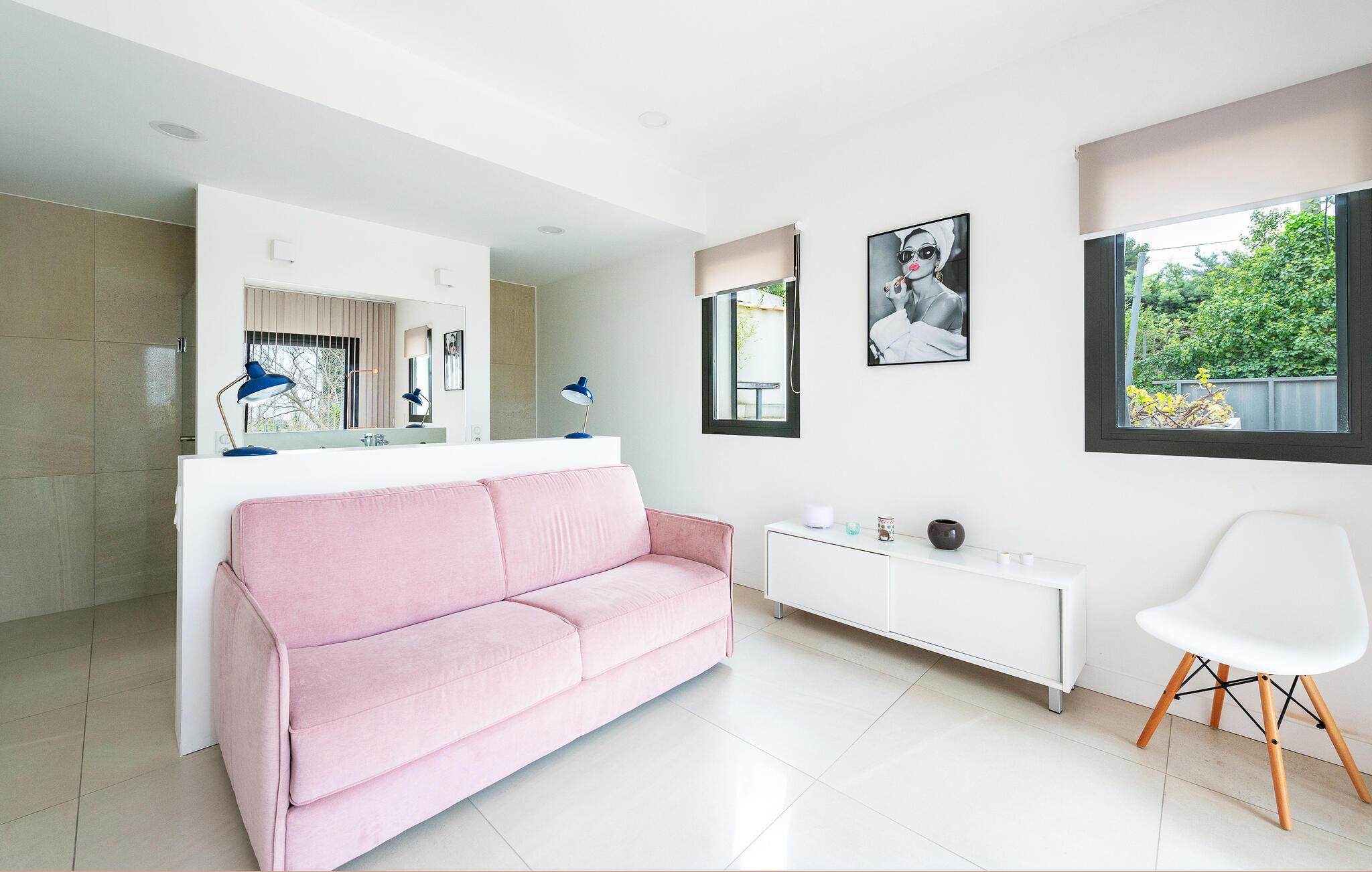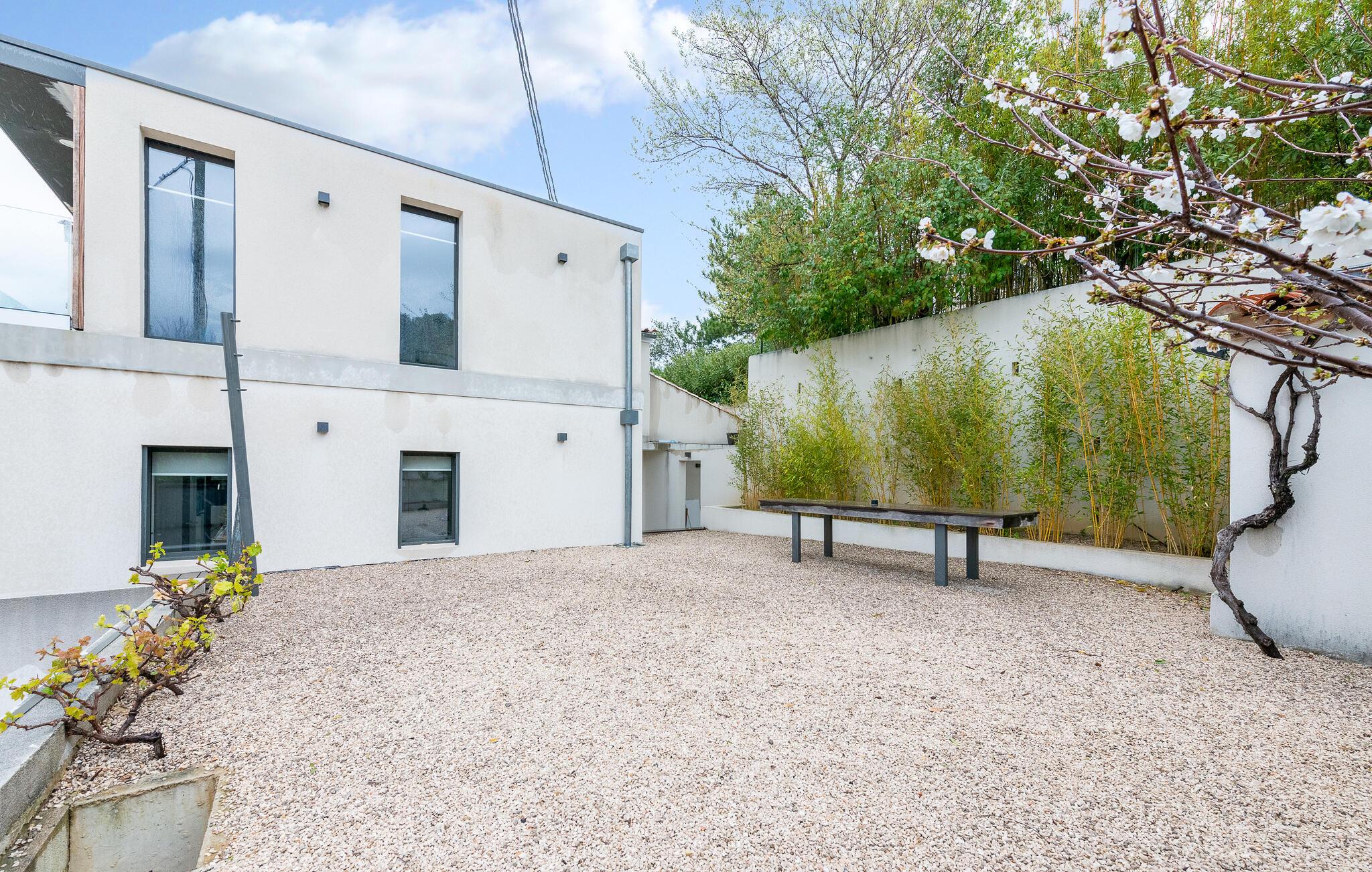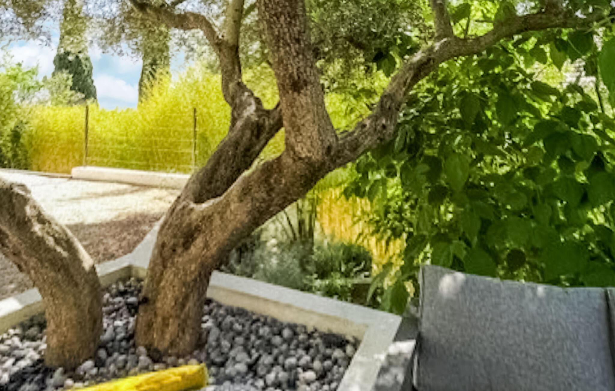 Upptäck den vackra trädgården, som är spridd över flera nivåer. Sitt i solen, njut av solskenet eller ta ett uppfriskande dopp i poolen med dina barn.