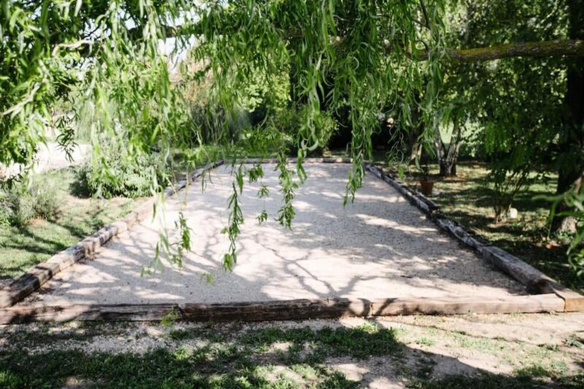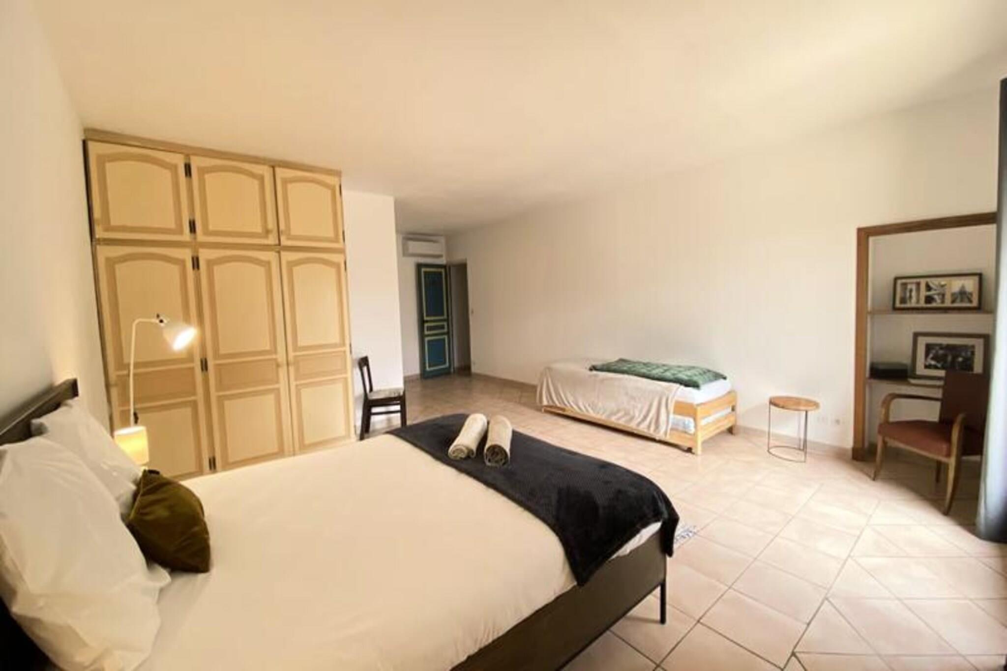 I hjärtat av Provence, där gyllene fält möter den azurblå himlen, erbjuder denna charmiga provensalska bondgård en idyllisk tillflyktsort för dem som söker lugn och äkta regional charm. Omgiven av grönska och cikadornas milda surr inbjuder denna före detta provostbostad dig att fördjupa dig i södra Frankrikes tidlösa skönhet. Oavsett om du planerar en familjesemester eller en sammankomst med vänner är denna fastighet den perfekta basen för att utforska Provence skatter. Gården är 250 m² stor och har fem rymliga sviter, var och en mellan 30 och 40 m², med privata badrum och luftkonditionering för ultimat komfort under de varma sommarmånaderna. De gemensamma utrymmena inkluderar ett stort kök, matsal och en mysig lounge, alla utformade för gemytliga stunder. Utomhus erbjuder den 6000 m² stora parken oändliga möjligheter till avkoppling, från den säkra poolen till pétanquebanan, volleyboll- och badmintonplanerna och till och med ett pingisbord. För extra lyx finns ett wellnessområde med jacuzzi och massagetjänster tillgängligt efter bokning. Läget är oslagbart, med byns butiker, bagerier och restauranger bara en kort promenad bort. Naturälskare kommer att älska de närliggande vandringslederna, kajakpaddling på floden Sorgue och äventyrsbanor i trädtopparna. Familjer kan njuta av nöjesparken Spirou, vattenparken Wave Island och sjön Monteux, alla inom fem minuters bilresa. För cykelentusiaster samarbetar anläggningen med lokala cykeluthyrningsföretag för att erbjuda skräddarsydda rutter och utrustning. Från den historiska staden Avignon till de pittoreska kanalerna i L'Isle-sur-la-Sorgue, och från den ikoniska Mont Ventoux till den fantastiska Pont du Gard, är regionen full av oförglömliga upplevelser. Oavsett om du njuter av lokala viner, utforskar provensalska marknader eller bara njuter av solen vid poolen, lovar denna bondgård en varm och välkomnande tillflyktsort i hjärtat av Provence.