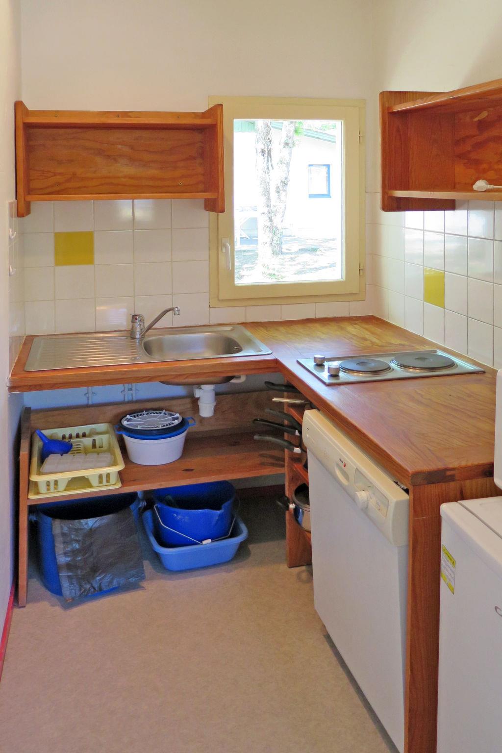 Child friendly resort "Les Rives de Saint Brice". 3 km from the centre of Andernos, 3 km from the centre of Arès, 50 km from the centre of Bordeaux, 10 km from the sea, 10 km from the beach. For shared use: natural state property 7 ha with lawn and trees, swimming pool, indoor pool fenced (12 x 5 m, seasonal availability: 01.Jan. - 31.Dec.). Children's pool, terrace. In the complex: reception, internet access, WiFi, fitness room, table tennis, washing machine, tumble dryer (for shared use, extra), bicycle rental. Parking (limited number of spaces). Shop 1 km, sandy beach "Bassin d'Arcachon" 800 m, swimming bay. Please note: car-free holiday complex. The photograph shows a typical example. The holiday properties may differ in living space, floorplan, equipment and furnishing.