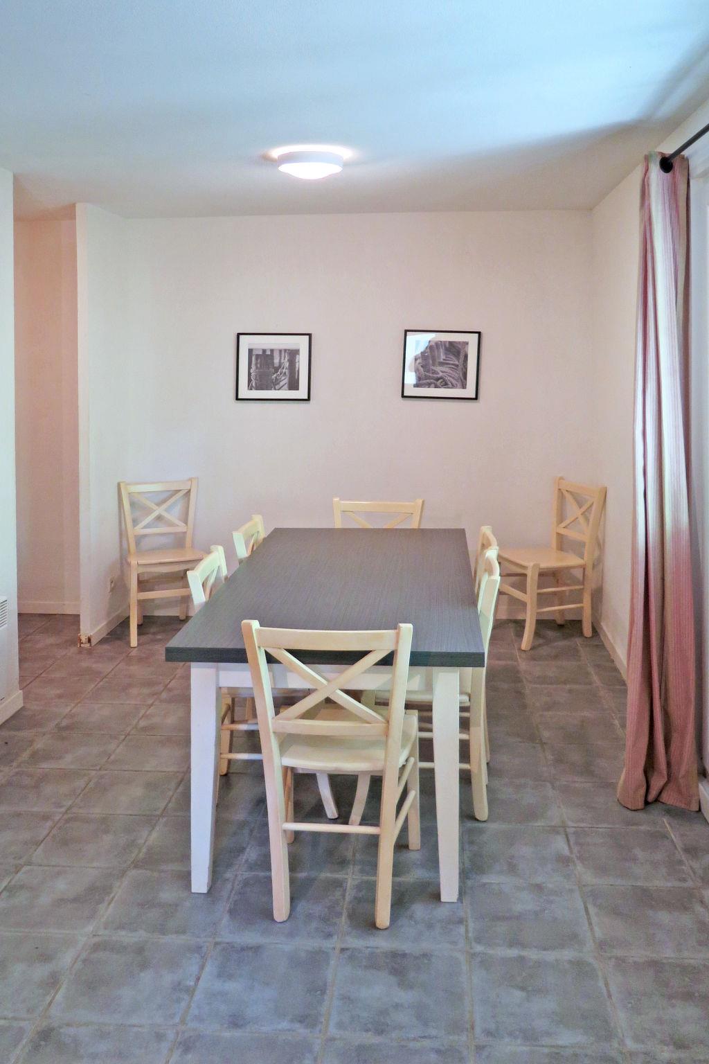 "Les Rives de Saint Brice", 4-room semi-detached house 70 m2 on 2 levels. Bright, practical furnishings: living/sleeping room with 1 sofabed (80 cm, length 190 cm), 1 pull-out bed, dining table and TV can be hired. Exit to the terrace. 1 room with 1 french bed (140 cm, length 190 cm). 1 room with 2 beds (80 cm, length 190 cm). Open kitchen (2 hot plates, dishwasher, toaster, microwave, electric coffee machine). Bathroom, sep. WC. Upper floor: 1 room with 1 french bed (140 cm, length 190 cm), bathroom. Bathroom, sep. WC. Electric heating. Terrace. Terrace furniture. Facilities: children's high chair, baby cot. Internet (WiFi, extra). Please note: non-smokers only. Maximum 1 pet/ dog allowed. Smoke alarm. The property is one of a type of property or apartment.