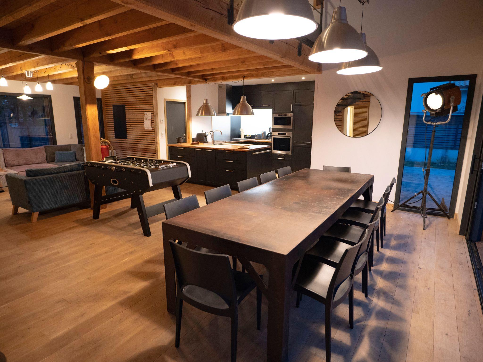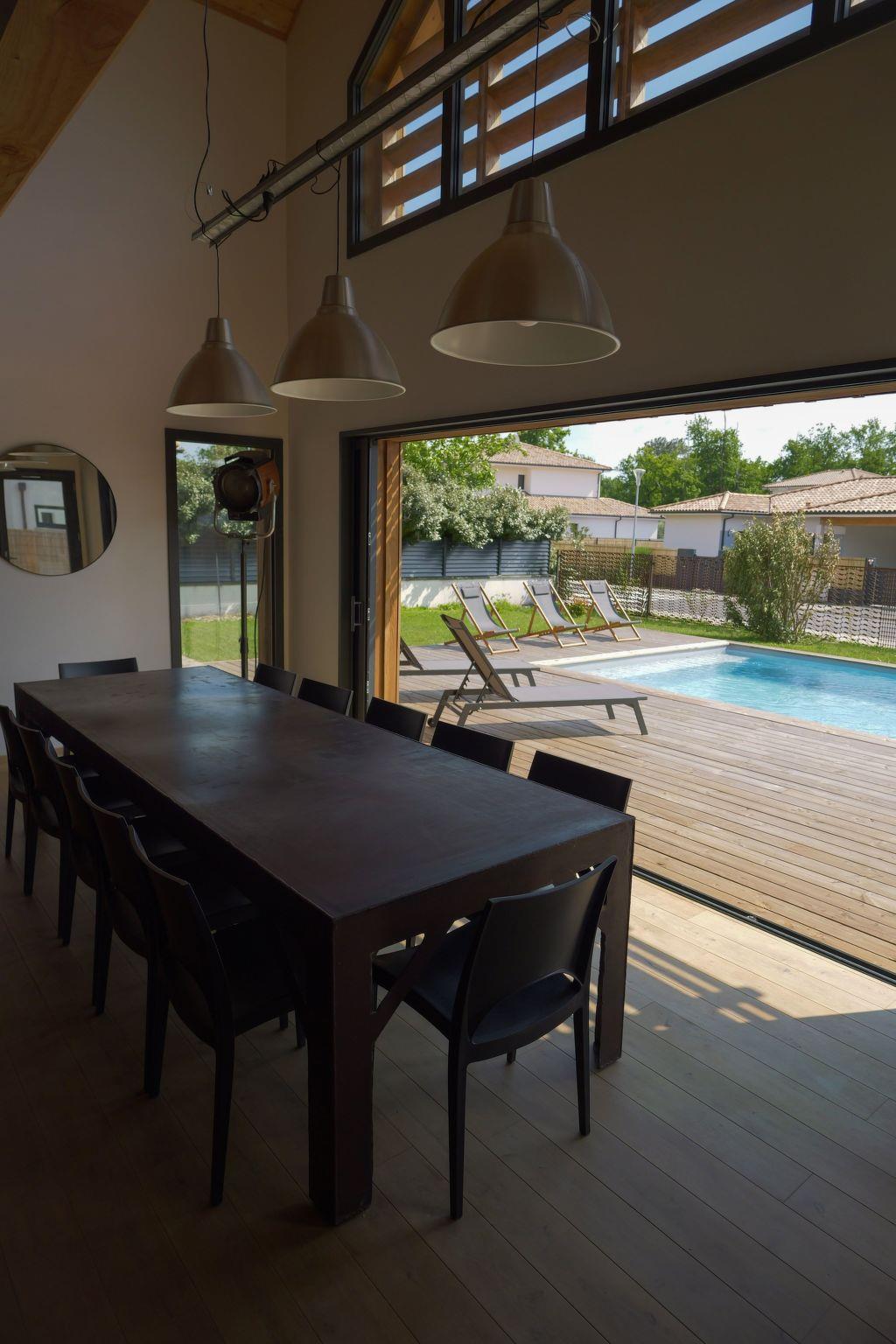 A large table to accommodate a small tribe. The sliding glass doors will give you the sensation of'être autant à l'inside as'à l'outside.