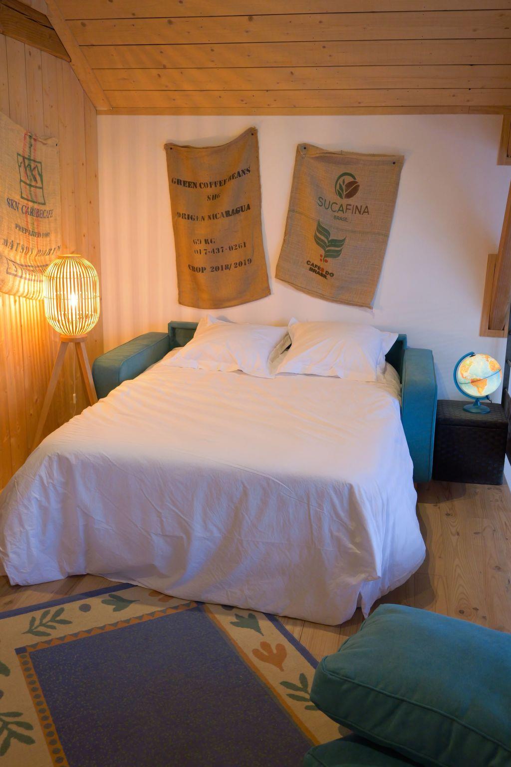 Mezzanine équipée d'very comfortable 140cm sofa bed