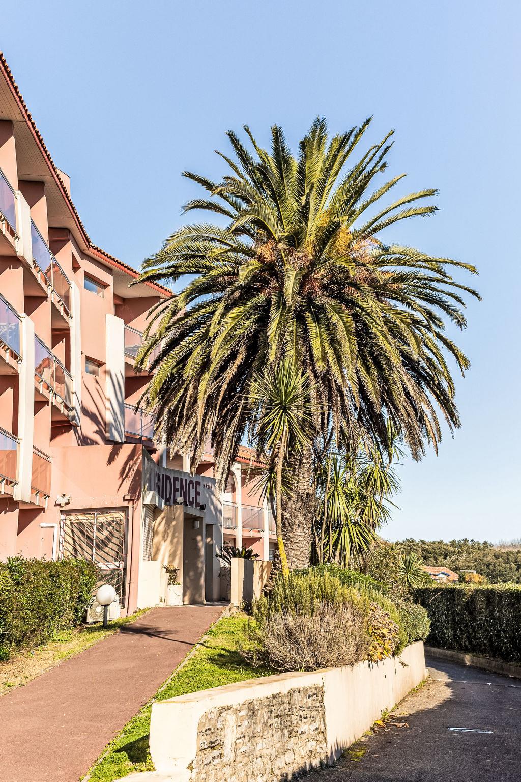 Anglet 1 km from Biarritz: Residence "Mer et Golf", 4 storeys. In the resort 1 km from the centre of Biarritz, 400 m from the sea, 400 m from the beach, road to cross. For shared use: swimming pool fenced (10 x 6 m, seasonal availability: 15.May. - 15.Oct.). Children's pool. In the complex: spa area (extra), lift, washing machine, tumble dryer (extra). Shop 500 m, grocery 500 m, supermarket 500 m, restaurant 50 m, bar 50 m, bakery, café, bus stop "Mer et Golf" 50 m, railway station "La Négresse" 5 km, sandy beach "Chambre d' Amour" 400 m. Golf course (18 hole) 300 m, surf school 900 m, indoor tennis centre 3.7 km. Nearby attractions: Phare de Biarritz 600 m, Aquarium 2.7 km. Hiking paths: La Rhune 38 km. Please note: the keys‘ handover takes place by the agency Interhome in Bidart, 10 km. Airfield 4 km from the property.