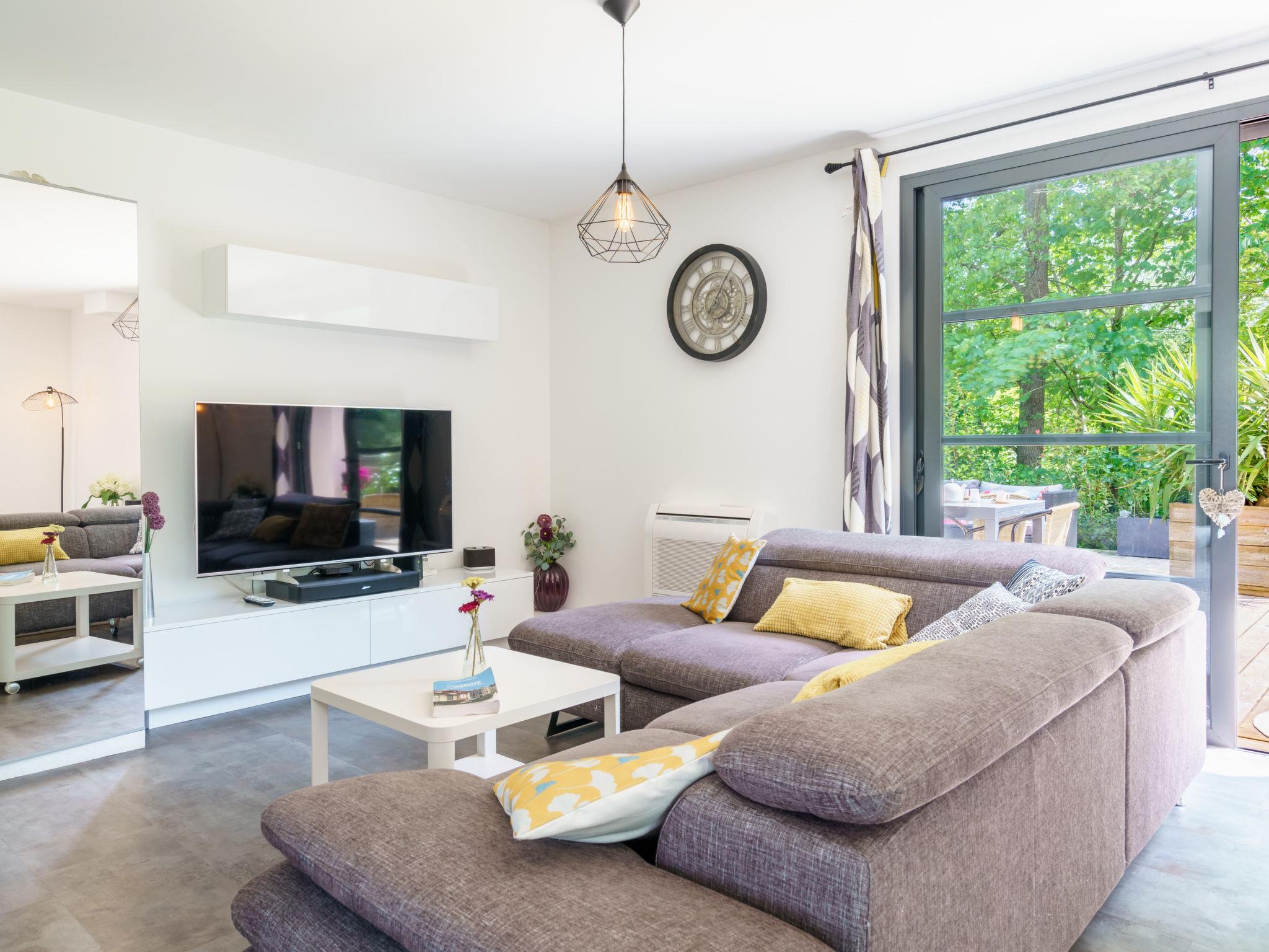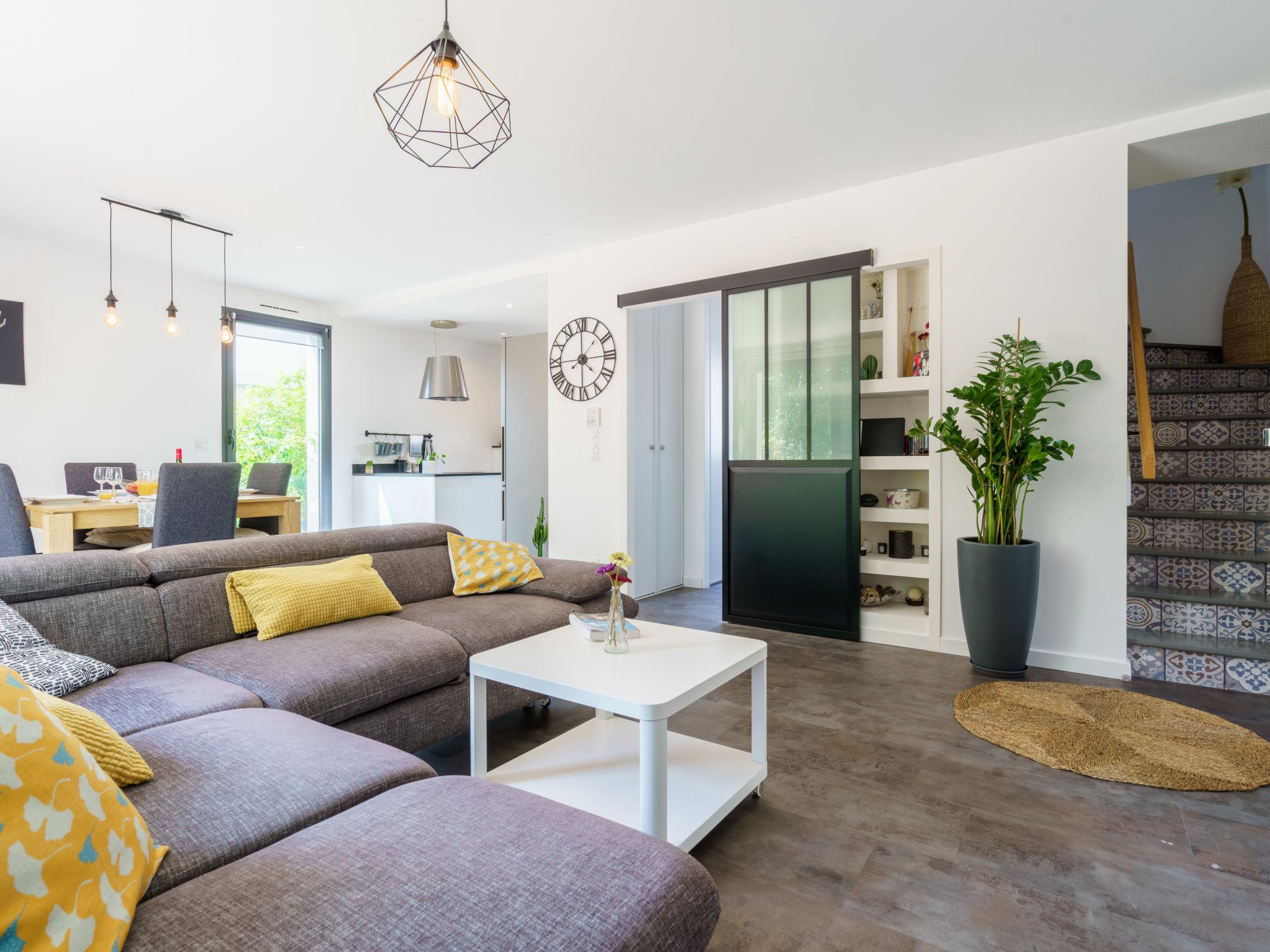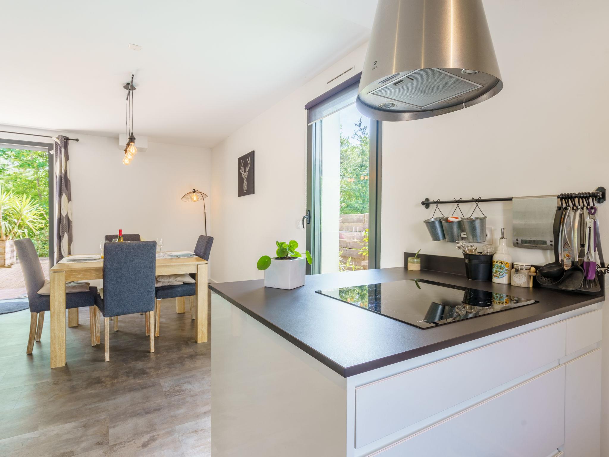 3-room house 90 m2. Modern and tasteful furnishings: living/dining room with TV (flat screen). Exit to the garden, to the terrace. Open kitchen (oven, dishwasher, 3 induction hot plates, toaster, kettle, microwave, freezer, electric coffee machine, Capsules for coffee machine (nespresso) extra). Sep. WC. Upper floor: 1 room with 1 french bed (160 cm, length 200 cm) with 1 french bed (140 cm, length 190 cm). Shower, sep. WC. Electric heating, air-conditioning. Large terrace 60 m2, south-west facing position, garden, south-west facing position. Terrace furniture, barbecue. Facilities: washing machine, iron, hair dryer. Internet (WiFi, free). Please note: non-smoking house. Smoke alarm. Offer by a private individual according to Art. 155, IV of CGI. 6402400299672