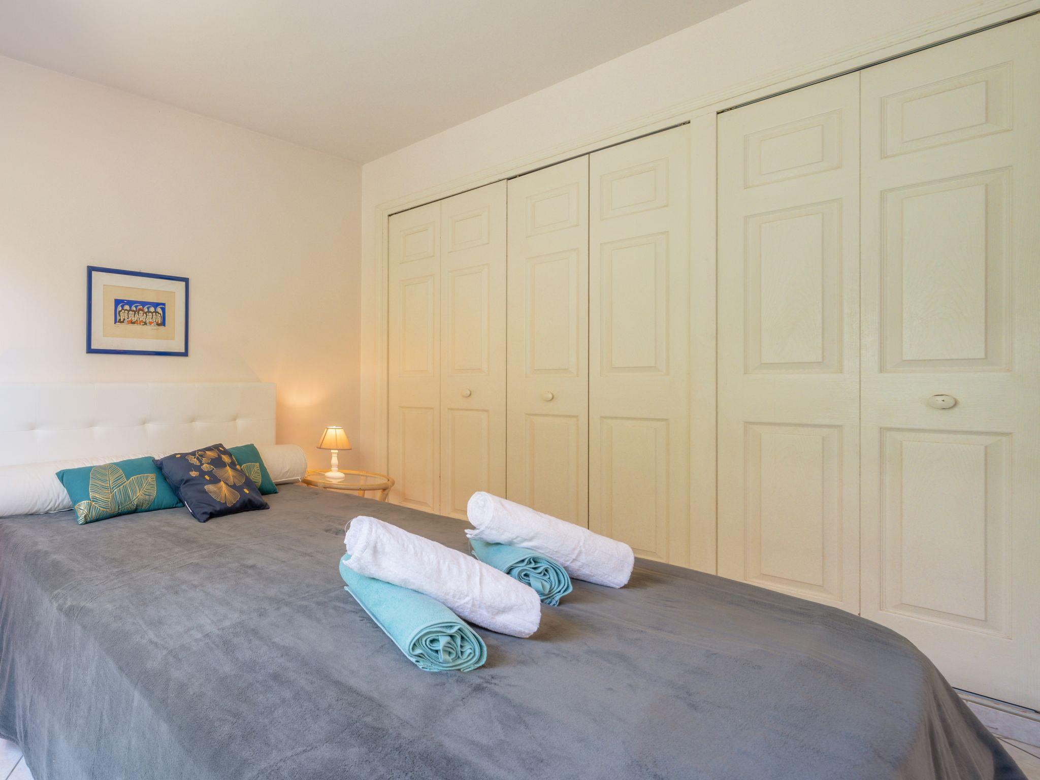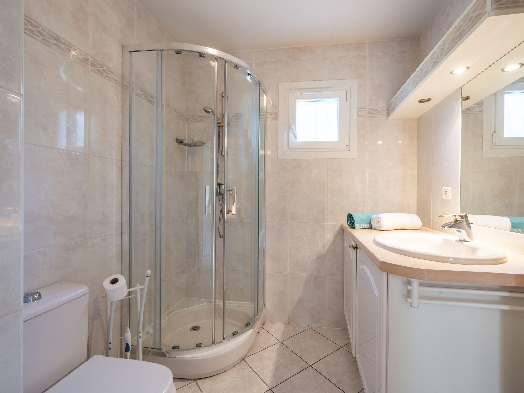 3-room apartment 62 m2, on the ground floor. Practical furnishings: living/dining room with 1 double sofabed (140 cm, length 190 cm), TV. Exit to the terrace. 1 small room with 1 x 2 bunk beds (70 cm, length 190 cm). 1 room with 1 french bed (160 cm, length 200 cm). Open kitchen (oven, dishwasher, 4 ceramic glass hob hotplates, freezer). Shower/bidet/WC, sep. WC. Electric heating. Terrace 18 m2. Terrace furniture. View of the garden. Facilities: washing machine. Internet (WiFi, free). Parking (roofed). 06004192800CM