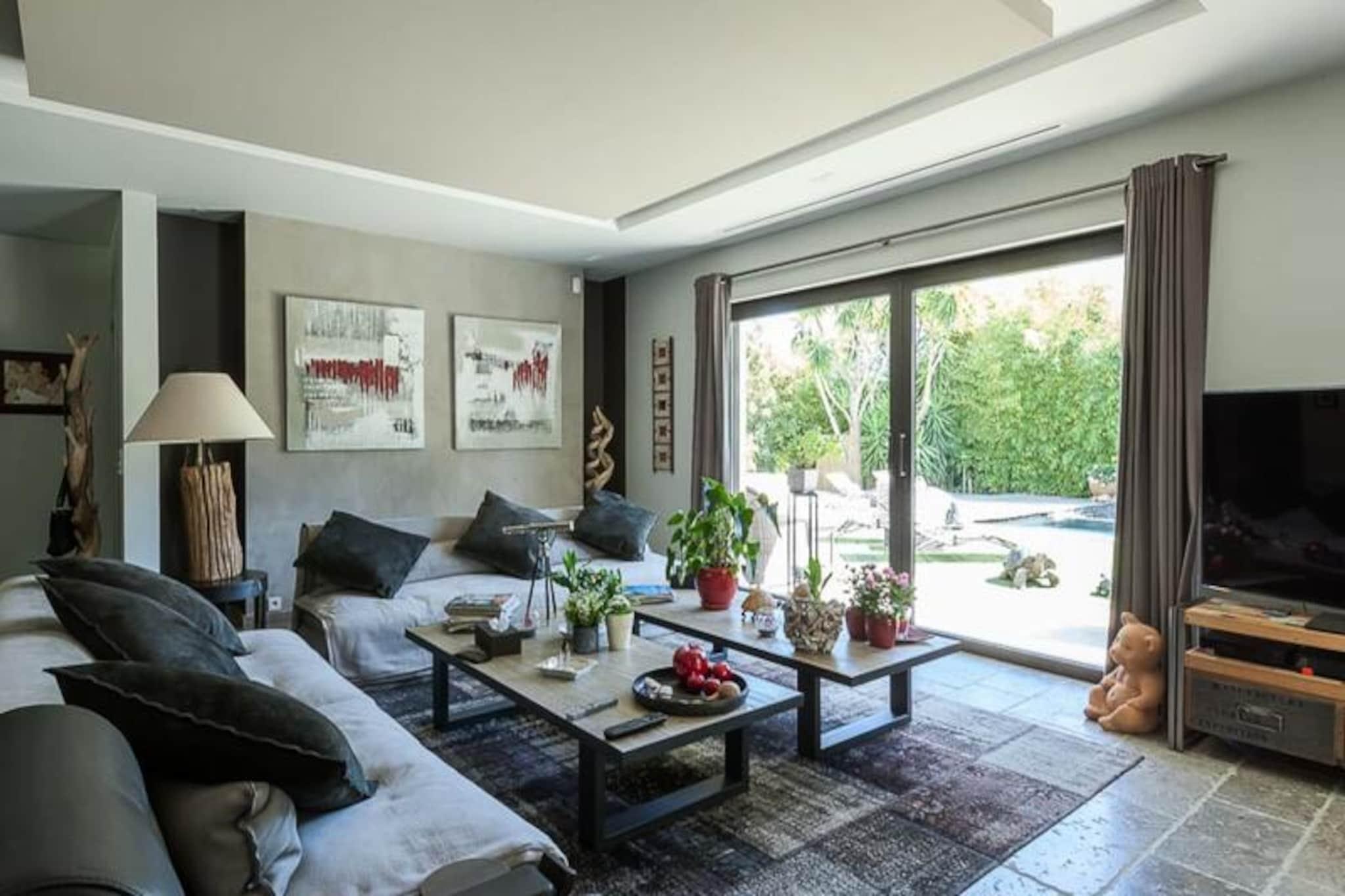 I hjärtat av den franska rivieran erbjuder denna utsökta villa en perfekt blandning av lyx och komfort, och lovar oförglömliga stunder för både familjer och grupper. Tänk dig att vakna upp till Medelhavsbrisen, bara 10 minuters promenad från de orörda stränderna i Juan-les-Pins, kända för sin livliga atmosfär, gourmetrestauranger och livliga kasino. Oavsett om du söker avkoppling eller äventyr är denna villa din port till det bästa av Franska Rivieran. \n\nStig in i detta smakfullt inredda hem på 220 m², fördelat på tre våningar, där varje detalj har utformats noggrant för att förbättra din vistelse. Bottenvåningen välkomnar dig med ett rymligt vardagsrum med mjuka soffor, en storbilds-TV och en matplats för åtta personer. Det halvöppna köket, utrustat med moderna apparater, inbjuder till kulinarisk kreativitet, medan sovrummet med eget badrum och tillgång till trädgården erbjuder en privat reträtt. På övervåningen har master-sviten en omklädningsrum, ett badrum med öppen planlösning och tillgång till terrass, tillsammans med ytterligare två sovrum, ett perfekt för barn. Takterrassen på andra våningen, med sin fantastiska havsutsikt, är perfekt för kvällsaperitifer. \n\nUtanför är villans bekvämligheter lika imponerande. Dyk ner i den uppvärmda poolen, varva ner i jacuzzin för sex personer eller njut av en trevlig omgång fotboll under det skuggiga skyddet. Den välskötta trädgården och konstgräset ger en trygg och lugn plats för barn att leka, medan terrassen bäddar för minnesvärda middagsupplevelser utomhus. \n\nPerfekt beläget, bara några minuter från Antibes charmiga gamla stadsdel, Cannes ikoniska Croisetten och Biots familjevänliga sevärdheter som Marineland. Oavsett om du utforskar Rivierans glamorösa städer eller kopplar av i din privata oas, garanterar denna villa en semester fylld av lyx, komfort och oförglömliga minnen.