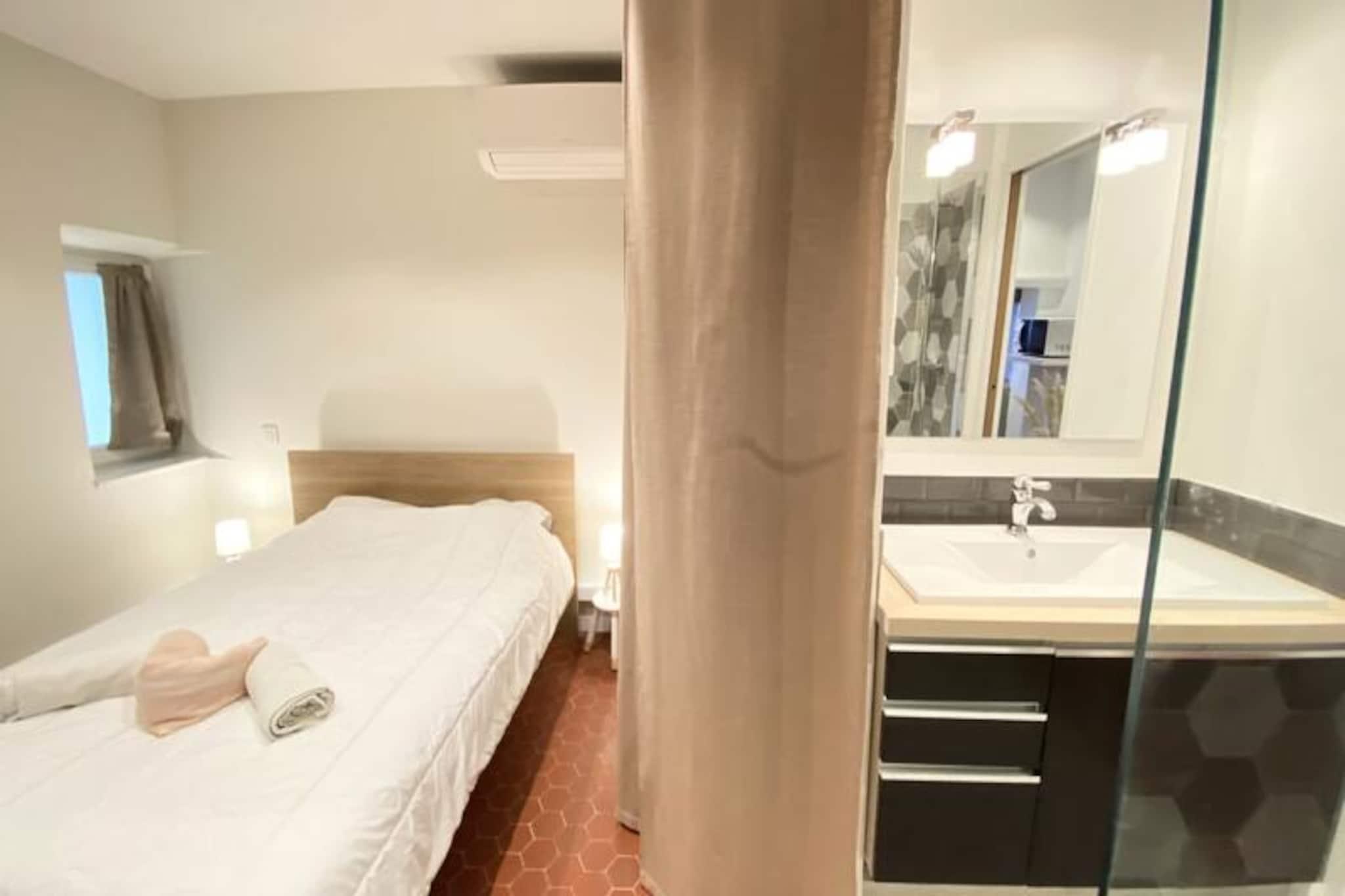 I hjärtat av Gamla Antibes, där kullerstensgator möter det azurblå Medelhavet, erbjuder denna charmiga lägenhet en typisk fransk rivieraupplevelse. Bara 200 meter från havet kommer du att befinna dig i den pulserande atmosfären i ett av regionens mest älskade områden. Oavsett om du promenerar genom den provensalska marknaden, njuter av färska skaldjur på en närliggande bistro eller njuter av den gyllene sanden på stranden, känns varje ögonblick här som ett vykort som vaknar till liv. Trots sitt centrala läge ligger lägenheten undangömt på en lugn gata och erbjuder en fridfull tillflyktsort efter en dag av utforskande. Denna luftkonditionerade lägenhet är omsorgsfullt utformad för att rymma upp till fyra gäster och kombinerar modern komfort med tidlös elegans. Sovrummet har en mysig dubbelsäng, medan vardagsrummet erbjuder en bekväm bäddsoffa, perfekt för familjer eller vänner som reser tillsammans. Köket och vardagsrummet i öppen planlösning skapar ett välkomnande utrymme att varva ner, och det eleganta badrummet i italiensk stil med duschkabin ger en touch av lyx till din vistelse. Observera att lägenheten ligger på andra våningen i en historisk byggnad utan hiss, vilket bidrar till dess autentiska charm. När du går ut är du bara några minuter från hamnen, sandstränder och en mängd barer och restauranger. Tågstationen ligger en bekväm 15-minuterspromenad bort, och bussar ger enkel tillgång till den bredare Rivieran. För de som anländer med bil finns det flera parkeringsmöjligheter, inklusive en gratis parkering med transferservice nära hamnen. Oavsett om du är här för att njuta av solen, utforska Antibes kulturskatter eller bara koppla av i en pittoresk miljö, erbjuder denna lägenhet den perfekta basen för en oförglömlig semester på Franska rivieran.