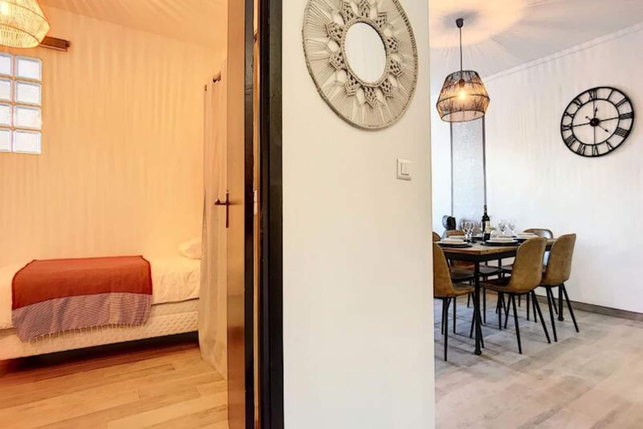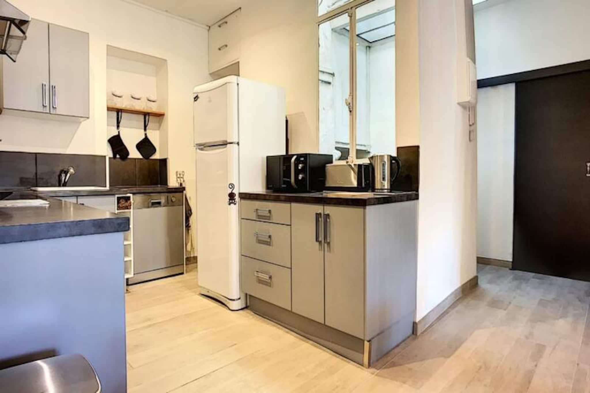 I hjärtat av Antibes historiska gamla stad erbjuder denna charmiga lägenhet med två sovrum en typisk provensalsk upplevelse. Lägenheten ligger direkt på den livliga Cours Masséna, där den berömda provensalska marknaden hålls, och du vaknar till doften av färska råvaror och surret från det lokala livet. De bilfria gatorna nedanför är kantade av butiker, restauranger och kaféer, vilket skapar en livlig och autentisk medelhavsatmosfär. Bara några steg bort väntar Picassomuseet och Côte d'Azurs glittrande stränder på att utforskas. Denna 59 m² stora lägenhet är genomtänkt utformad för familjer eller små grupper och kombinerar komfort med bekvämlighet. Vardagsrummet, som badar i naturligt ljus, har en bäddsoffa och en matplats för sex personer. Det öppna köket är fullt utrustat med moderna vitvaror, inklusive diskmaskin, espressomaskin och ugn, vilket gör det enkelt att laga mat med färska råvaror från marknaden nedanför. Det stora sovrummet har en dubbelsäng och luftkonditionering, medan det andra sovrummet har två enkelsängar, perfekta för barn eller vänner. Ett modernt badrum med dusch och separat toalett kompletterar utrymmet. Observera att lägenheten ligger på tredje våningen i en traditionell byggnad, som endast är tillgänglig via trappor. Gå ut och njut av Antibes charm. Den provensalska marknaden, som är öppen de flesta morgnar, är en fest för sinnena och erbjuder lokala delikatesser, honung och viner. Vandra längs kullerstensgatorna och upptäck konstgallerier, hantverksbutiker och småbåtshamnen, där yachter guppar lugnt i hamnen. För strandälskare ligger de gyllene sandstränderna bara en kort promenad bort, medan historieentusiaster kommer att förundras över Picasso-museets fantastiska havsutsikt. Med sitt oslagbara läge och mysiga atmosfär är denna lägenhet din port till det bästa av Franska Rivieran.
