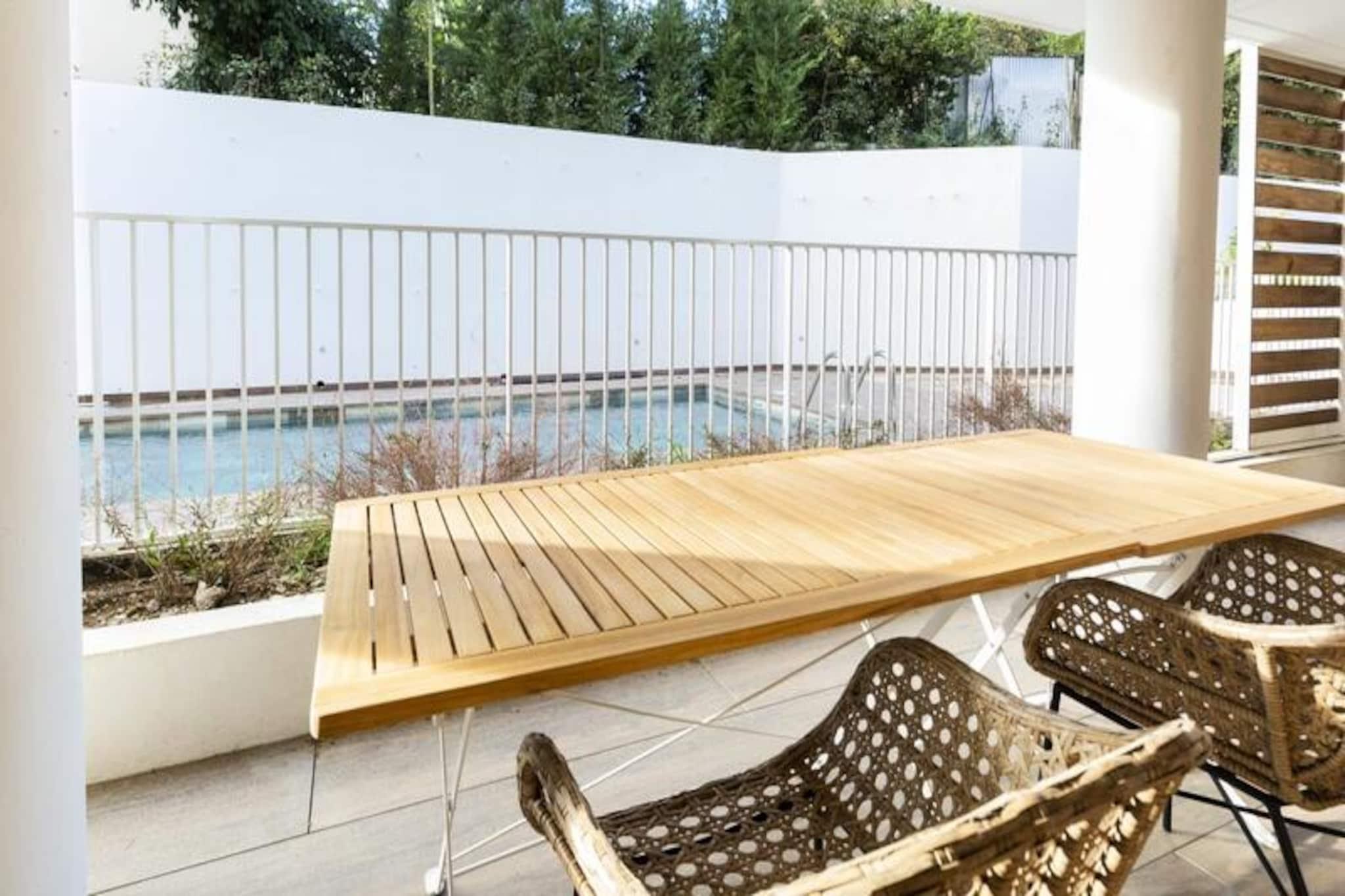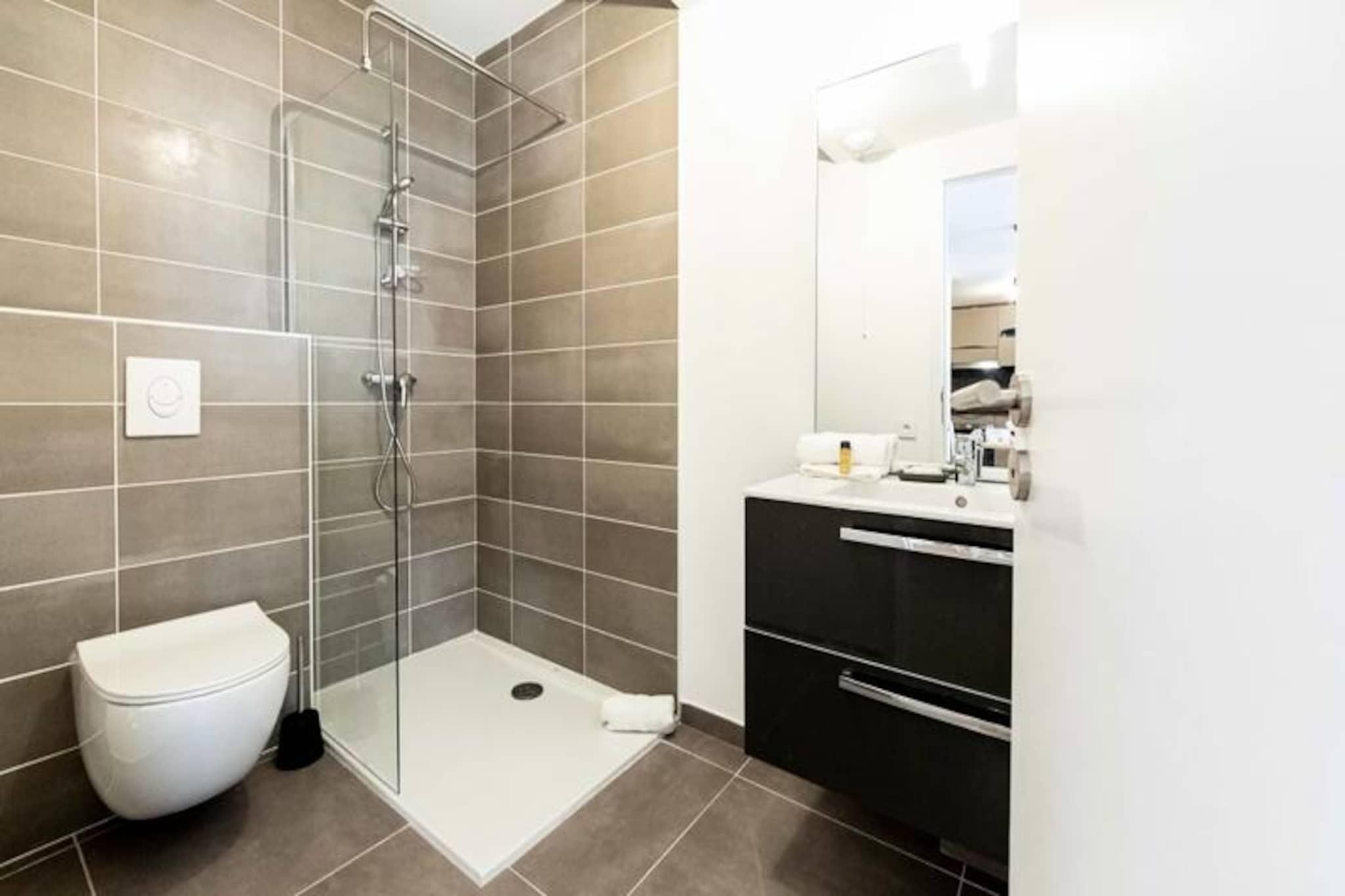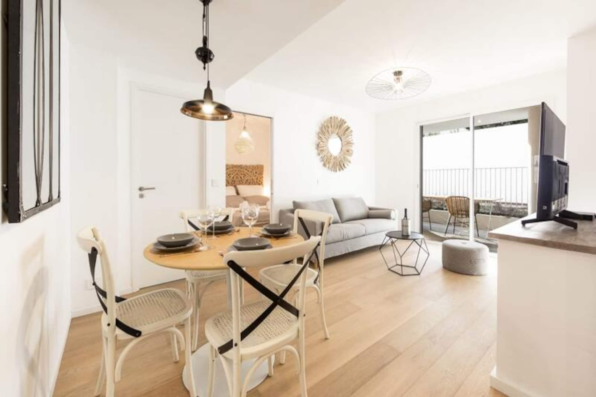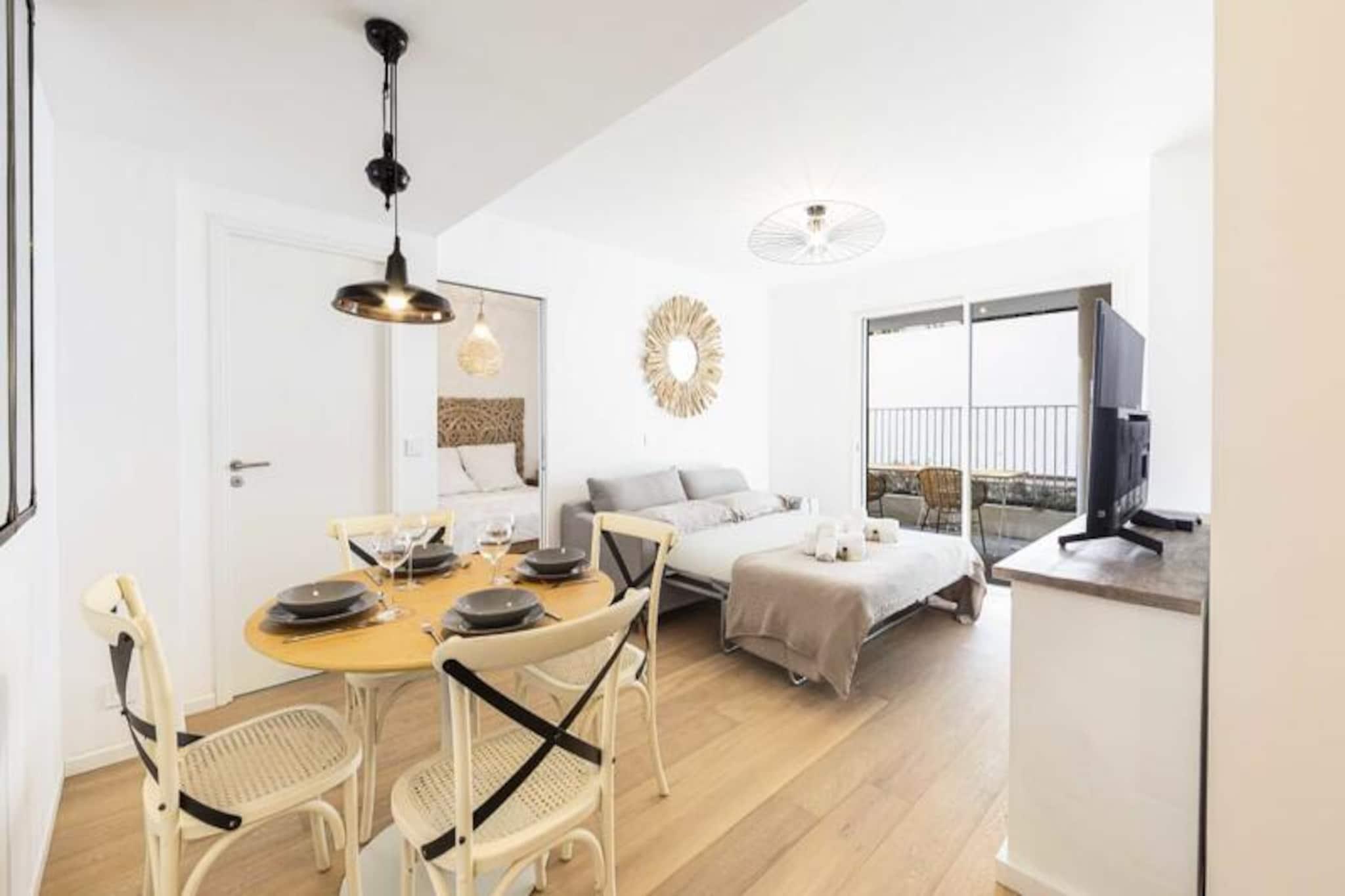 I hjärtat av Antibes erbjuder denna ljusa och rymliga lägenhet på bottenvåningen den perfekta blandningen av modern komfort och kustnära charm. Tänk dig att vakna upp till den milda medelhavsbrisen, kliva ut på din privata terrass med utsikt över en fridfull pool och njuta av en avkopplande frukost i utomhusloungen. Denna bostad är designad för avkoppling och bekvämlighet och är en oas av lugn bara några minuter från den pulserande stadskärnan och de gyllene stränderna på den franska rivieran. Lägenheten har en noggrant utformad planlösning med två sovrum, ett fullt utrustat kök med öppen planlösning och ett mysigt vardagsrum som sömlöst ansluter till terrassen. Det stora sovrummet har en lyxig dubbelsäng och gott om förvaring, medan det andra sovrummet har våningssängar, perfekta för barn. Det eleganta badrummet har en duschkabin och moderna bekvämligheter. Köket är utrustat med allt du behöver för att laga läckra måltider, från kylskåp och ugn till diskmaskin och köksredskap. Vardagsrummet, med sina mat- och sittgrupper, erbjuder en bekväm plats att varva ner efter en dags utforskande. Kliv ut i trädgården och du kommer att befinna dig i ett lugnt bostadsområde som erbjuder det bästa av två världar: en lugn oas med direkt tillgång till Antibes livliga gator. I närheten hittar du charmiga bagerier, lokala marknader och en mängd olika restauranger. Tågstationen och busshållplatsen ligger bara en kort promenad bort, vilket gör det enkelt att utforska Franska Rivieran. Oavsett om du besöker den historiska gamla stan, kopplar av på stranden eller beger dig till närliggande Cannes eller Nice, är detta läge idealiskt. Med luftkonditionering i hela lägenheten, en dubbel privat parkeringsplats och tillgång till en pool som är öppen under sommarsäsongen, är denna lägenhet det ultimata valet för en familjesemester eller en romantisk flykt. Låt Antibes charm och komforten i denna moderna bostad skapa oförglömliga minnen på din nästa semester.