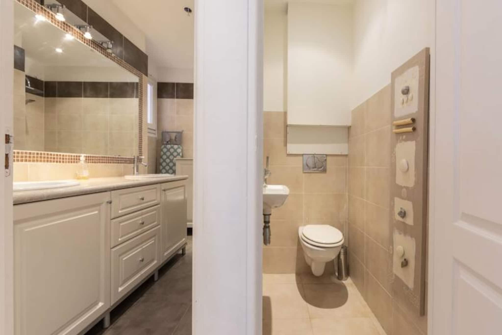 I hjärtat av Antibes, där charmen med Franska Rivieran möter modern bekvämlighet, erbjuder denna eleganta trerumslägenhet en lugn tillflyktsort för upp till sex gäster. Med sitt utmärkta läge bara några steg från det livliga centrumet och den historiska gamla staden kommer du att uppleva den livliga atmosfären i denna medelhavspärla. Oavsett om du är här för en familjesemester eller en affärsresa kombinerar denna lägenhet komfort, elegans och tillgänglighet. Lägenheten har ett fullt utrustat öppet kök som smidigt övergår i ett ljust vardagsrum med matplats, en mysig bäddsoffa och tillgång till en solig terrass. Terrassen är perfekt för måltider utomhus och inbjuder dig att njuta av dina måltider medan du njuter av Rivierans atmosfär. Två rymliga sovrum med dubbelsängar och gott om garderobsutrymme garanterar en god natts sömn, och ett av sovrummen har en egen terrass. Ett modernt badrum med dubbla handfat och ett stort badkar, samt en separat toalett, bidrar till bekvämligheten och komforten under din vistelse. När du kliver ut är du bara 100 meter från Place de Gaulle och en kort promenad på 300 meter till den charmiga gamla staden Antibes. Stranden La Gravette ligger mindre än 10 minuters promenad bort, vilket gör det enkelt att njuta av solen och havet. I närheten ligger det berömda Picasso-museet och de historiska murarna i Antibes som inbjuder till utforskning, medan de livliga gatorna är fyllda med butiker, restauranger och lokala marknader. För dig som anländer med kollektivtrafik ligger tågstationen bara 10 minuters promenad bort och busshållplatsen med förbindelse till Nice flygplats ligger bara 2 minuter bort. Med sitt oslagbara läge, genomtänkta bekvämligheter och Antibes tidlösa charm precis utanför dörren är denna lägenhet din port till en oförglömlig Riviera-upplevelse. Koppla av, utforska och skapa minnen för livet i denna kustnära oas.