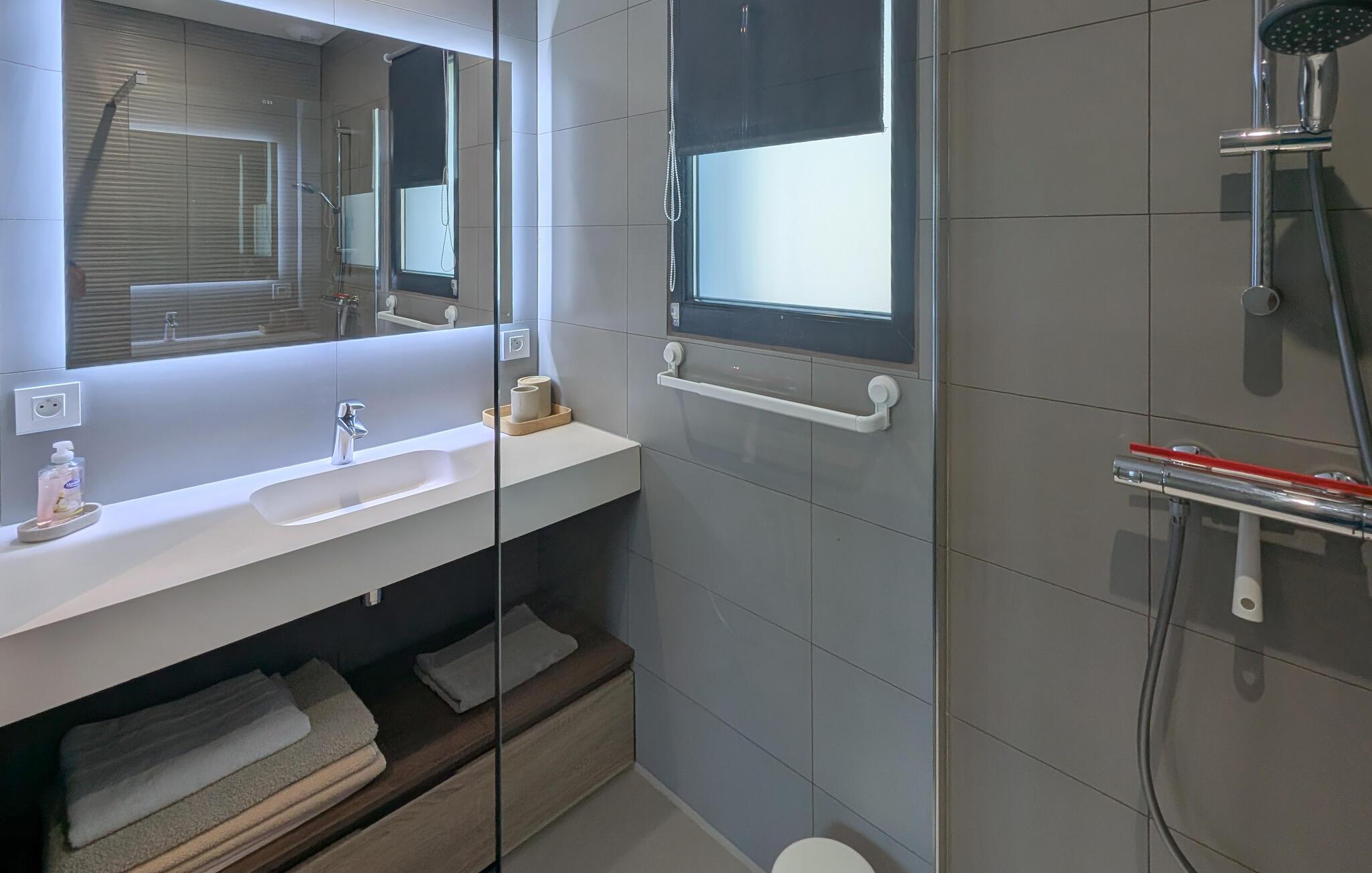 Denna förtrollande plats på den franska Rivieran är mycket mer än bara en lägenhet, det är en oas av lugn och komfort. Lägenheten är designad med ditt välbefinnande i åtanke och erbjuder en perfekt blandning av moderna bekvämligheter och lugna omgivningar. Koppla av i den uppvärmda 10 m² stora poolen, som är öppen året runt beroende på vädret, eller unna dig den ultimata avkopplingsupplevelsen i ditt eget privata spa. Den privata terrassen, utrustad med solstolar, trädgårdsmöbler och dusch, är perfekt för att njuta av solen eller tillbringa en lugn kväll under stjärnorna.