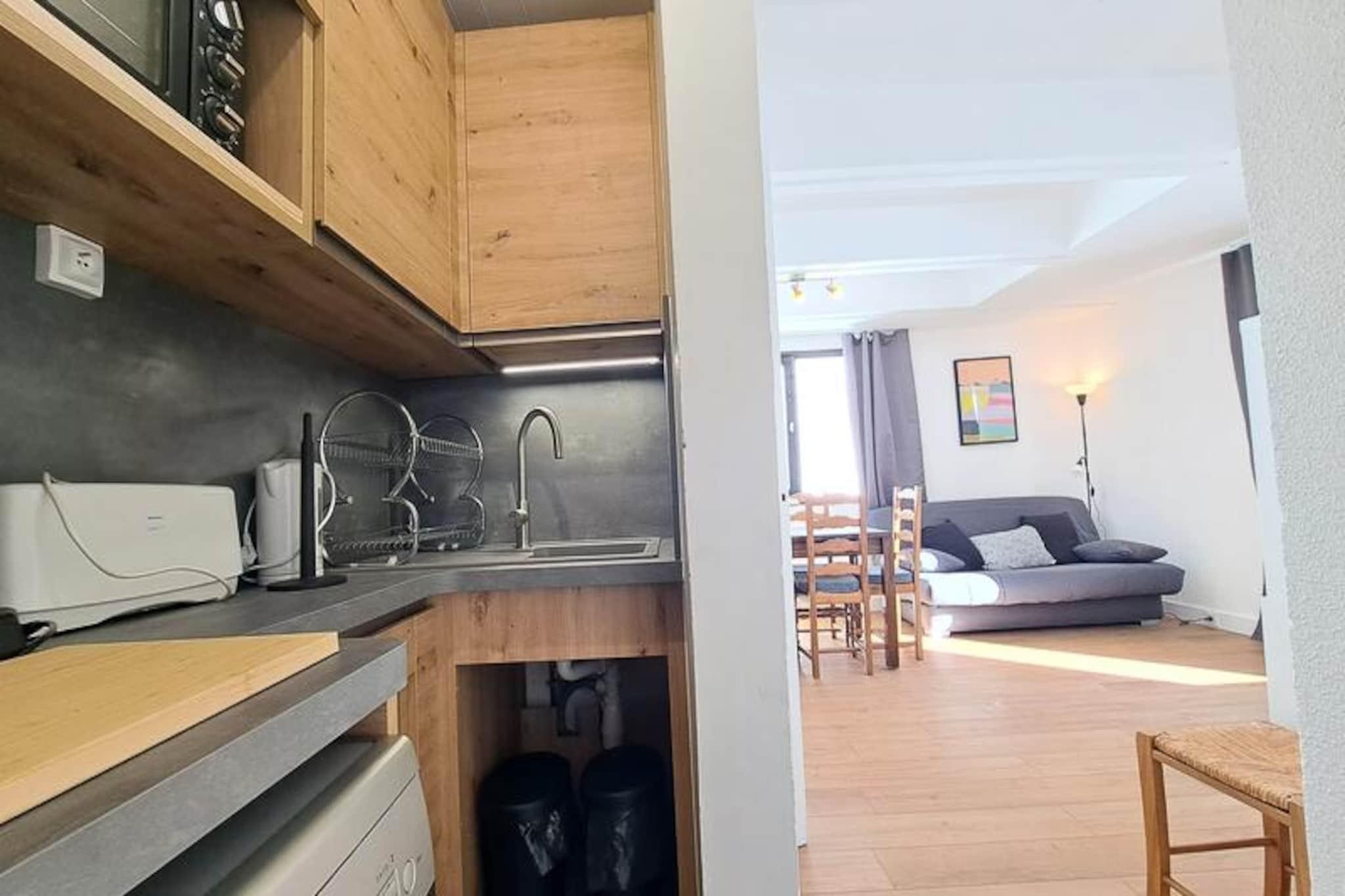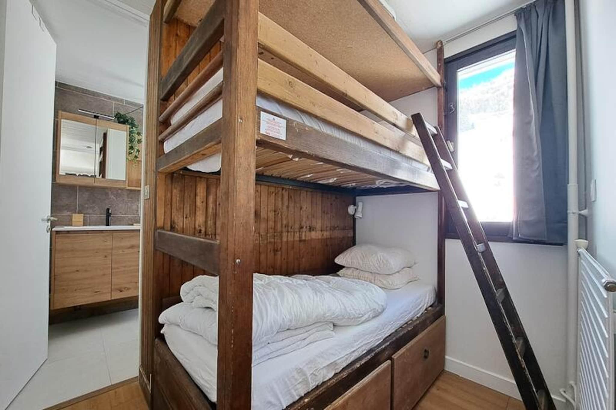 I hjärtat av den pittoreska semesterorten Flaine erbjuder Aldébaran Residence en mysig tillflyktsort i det pulserande Forum-distriktet, det pulserande hjärtat av denna alpina destination. Bara några steg från köpcentret Flaine Forum befinner du dig omgiven av livliga barer, inbjudande restauranger och en mängd aktiviteter för att fördjupa dig i bergsandan. Oavsett om du är här för snön eller sommarsolen, garanterar detta läge att du är i centrum av allt. Denna charmiga lägenhet på 28 m² är omsorgsfullt utformad för att maximera komfort och funktionalitet. Belägen på 5:e våningen har den ett ljust vardagsrum med en vanlig soffa och en utfällbar bäddsoffa, perfekt för avkoppling efter en dag av äventyr. Köket med öppen planlösning är utrustat för att laga mat att njuta av i matsalen, som bekvämt rymmer fem personer. En mysig sovalkov med våningssängar ger en touch av alpin charm, medan den privata balkongen inbjuder dig att njuta av den friska bergsluften och den fantastiska utsikten. För skidentusiaster är residenset idealiskt beläget vid foten av backarna, med Flaine Forum ESF-mötesplatsen och Télébennes-linbanan bara några steg bort. Detta utmärkta läge gör att du enkelt kan ta dig ut i backarna och utforska det vidsträckta skidområdet. Under de varmare månaderna förvandlas orten till en fristad för vandrare och naturälskare, med stigar och aktiviteter som visar upp Alpernas hisnande skönhet. Oavsett om du söker spännande utomhusäventyr eller en avkopplande flykt i en livlig alpby, erbjuder Aldébaran Residence den perfekta basen för en oförglömlig semester i Flaine. Boka din vistelse och upplev bergens magi.