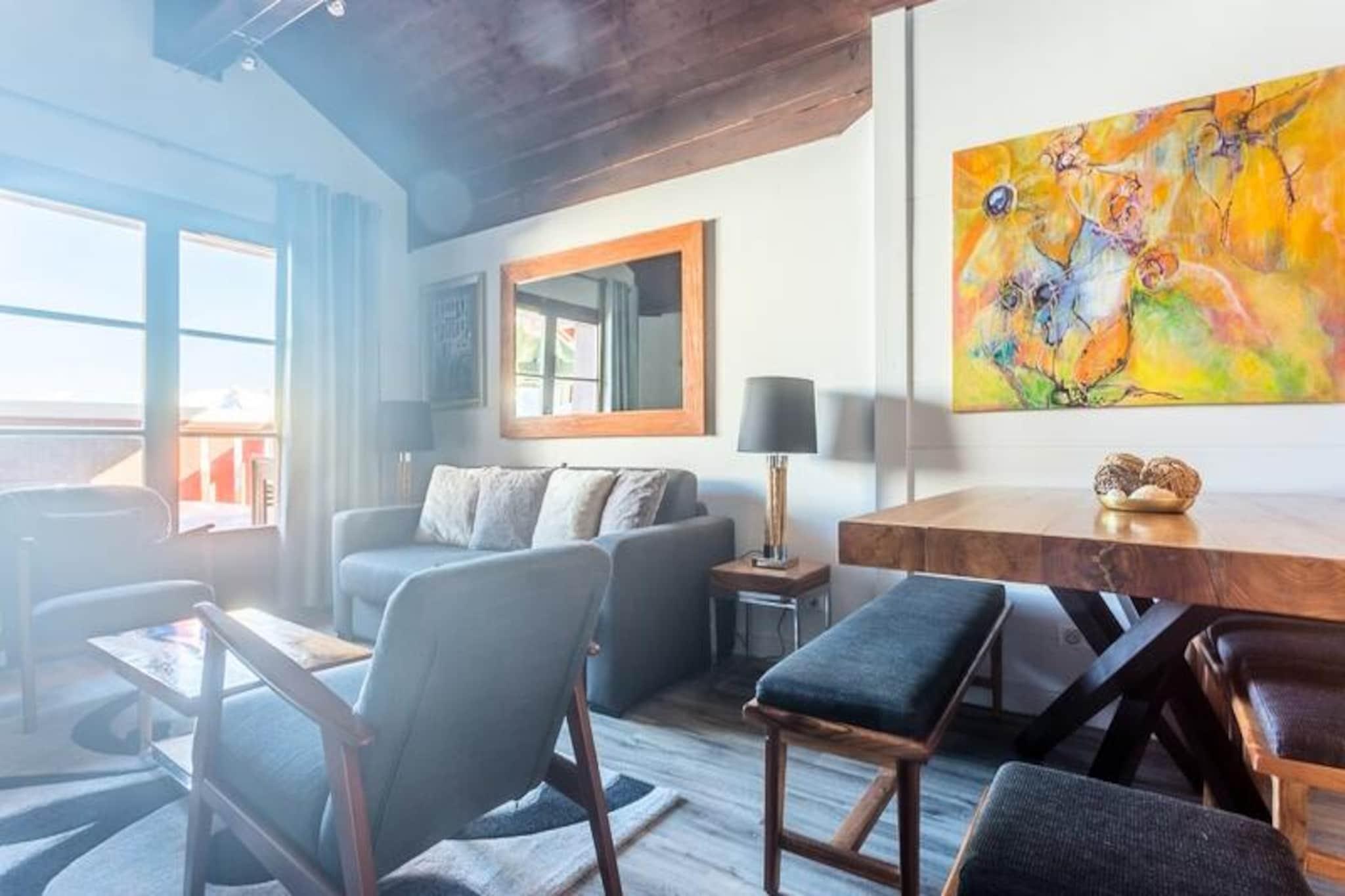 Denna eleganta semesterl?genhet erbjuder ett rymligt vardagsrum med en stor b?ddsoffa, tv? bekv?ma sovrum och tv? moderna badrum. Ett sovrum har en dubbels?ng, medan det andra har antingen tv? enkels?ngar eller en queen size-s?ng. L?genheten ?r husdjursv?nlig (ytterligare avgifter kan tillkomma) och inkluderar bekv?mligheter som en 50-tums Smart TV, Wi-Fi och ett fullt utrustat k?k. G?sterna kan njuta av fantastisk utsikt ?ver Mont Blanc och Arc 2000 fr?n de tv? balkongerna. Boendet ligger i en fotg?ngarby och ?r perfekt f?r b?de skid?kning och sommaraktiviteter. Ski-in/ski-out-tillg?ng ?r tillg?nglig, och under de varmare m?naderna kan g?sterna utforska vandringsleder med hisnande vyer. I n?rheten kan g?sterna bes?ka lokala kaf?er, restauranger och butiker, eller koppla av p? Deep Nature Spa. Skidomr?det Paradiski erbjuder ?ver 700 km skidbackar, med tillg?ng till m?nga bergsaktiviteter. L?genheten har ocks? ett fullt utrustat k?k, perfekt f?r att laga mat, och har moderna badrum med b?de badkar och dusch. Ytterligare bekv?mligheter inkluderar tillg?ng till en gemensam uppv?rmd utomhuspool, parkering (tillg?nglig mot avgift) och ett babykit p? beg?ran. Boendet ?r designat f?r komfort, med st?dning och fr?scha handdukar tillhandah?lls i slutet av din vistelse.