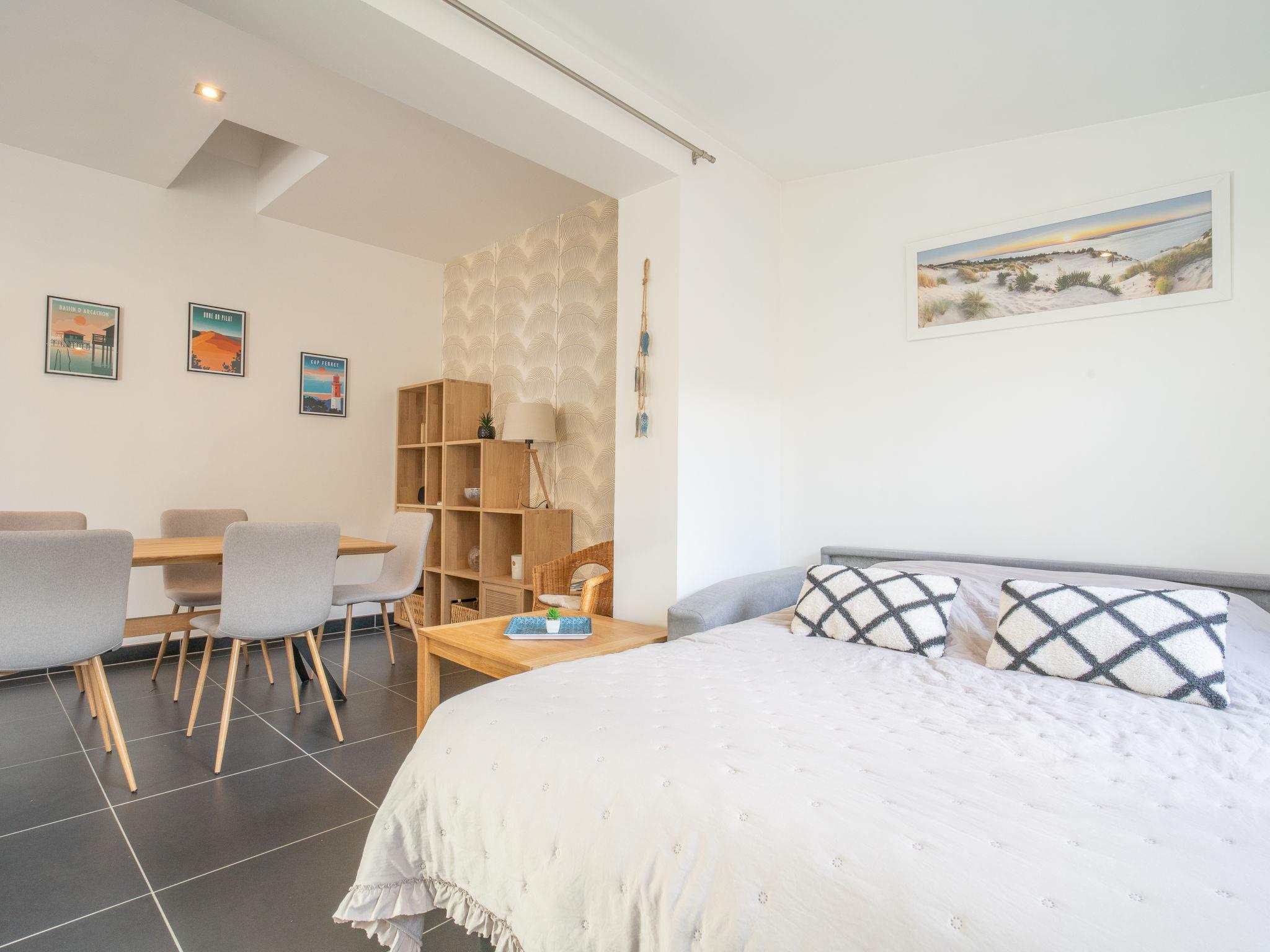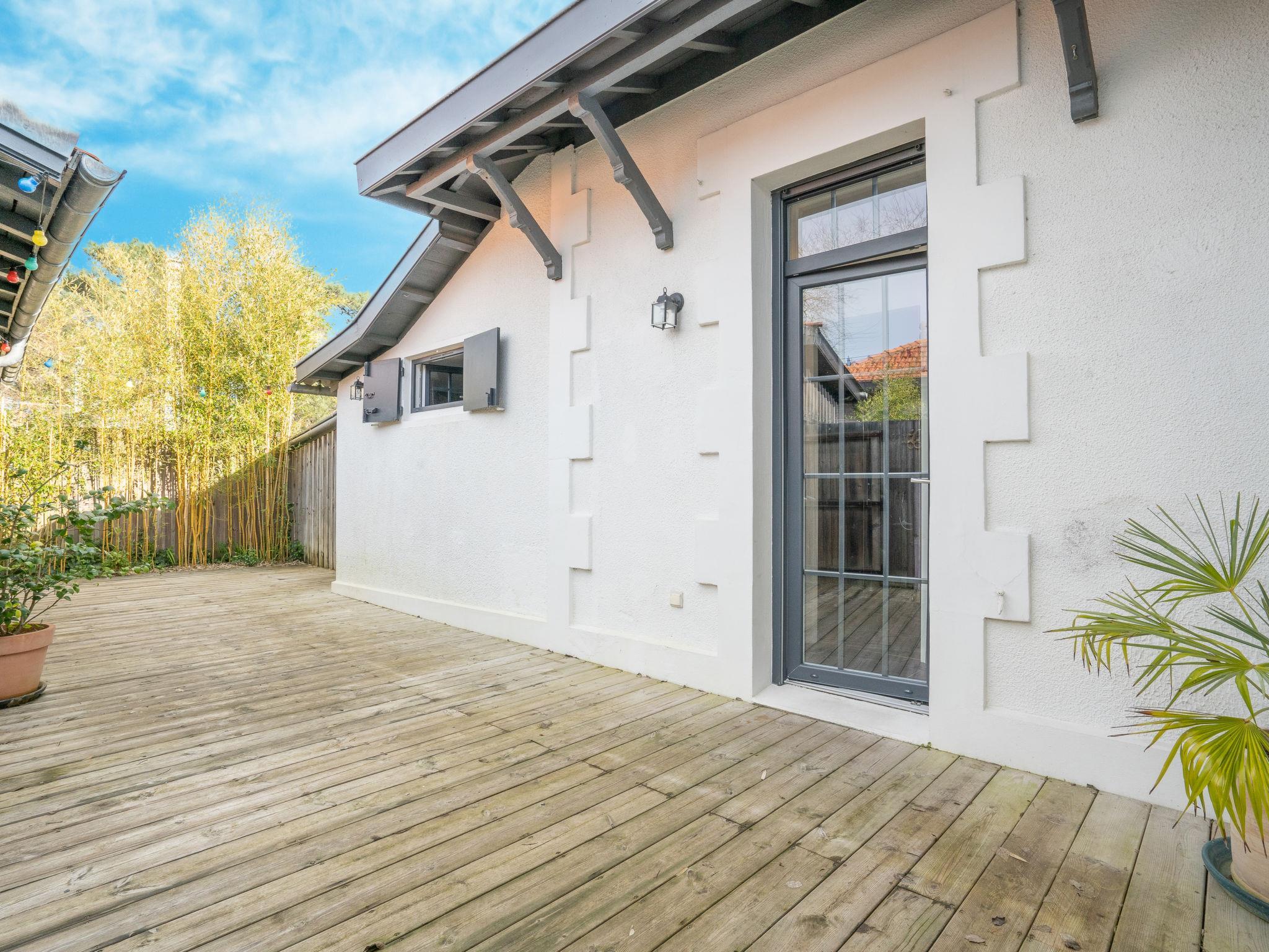 Arcachon: Terraced house "Villa Albertine". 1 km from the sea, 1 km from the beach. In the house: storage room for bicycles. Public parking on the road. Shop 950 m, grocery, supermarket 700 m, shopping centre 2.5 km, restaurant 550 m, bar 1.1 km, bakery 550 m, bicycle rental 700 m, bus stop "Grand Chênes" 270 m, railway station "Arcachon" 700 m, sandy beach "Eyrac" 1 km, park "Mauresque" 1 km, thermal baths "Thalazur" 3 km. Sports harbour 2.8 km, golf course (18 hole) 3.1 km. Nearby attractions: Dune du Pyla 8.7 km, Eratopia 7.9 km, Observatoire Sainte Cécile 1.4 km, Marché Municipal 1.2 km, Navette Maritime pour le Cap Ferret 1.3 km, Casino 1 km. Well-known lakes can easily be reached: Lac de la Magdeleine 9.2 km, Lac de Cazaux 15.2 km. The owner does not accept any youth groups. Please note: the keys‘ handover takes place by the agency Interhome in Arcachon, 2 km. Railway line closeby 50 m from the property. Neighbourhood highly sensitive to noise. Quietness and good behaviour expected.