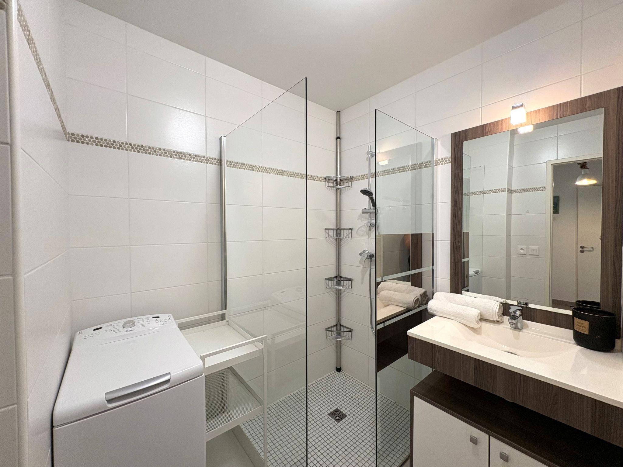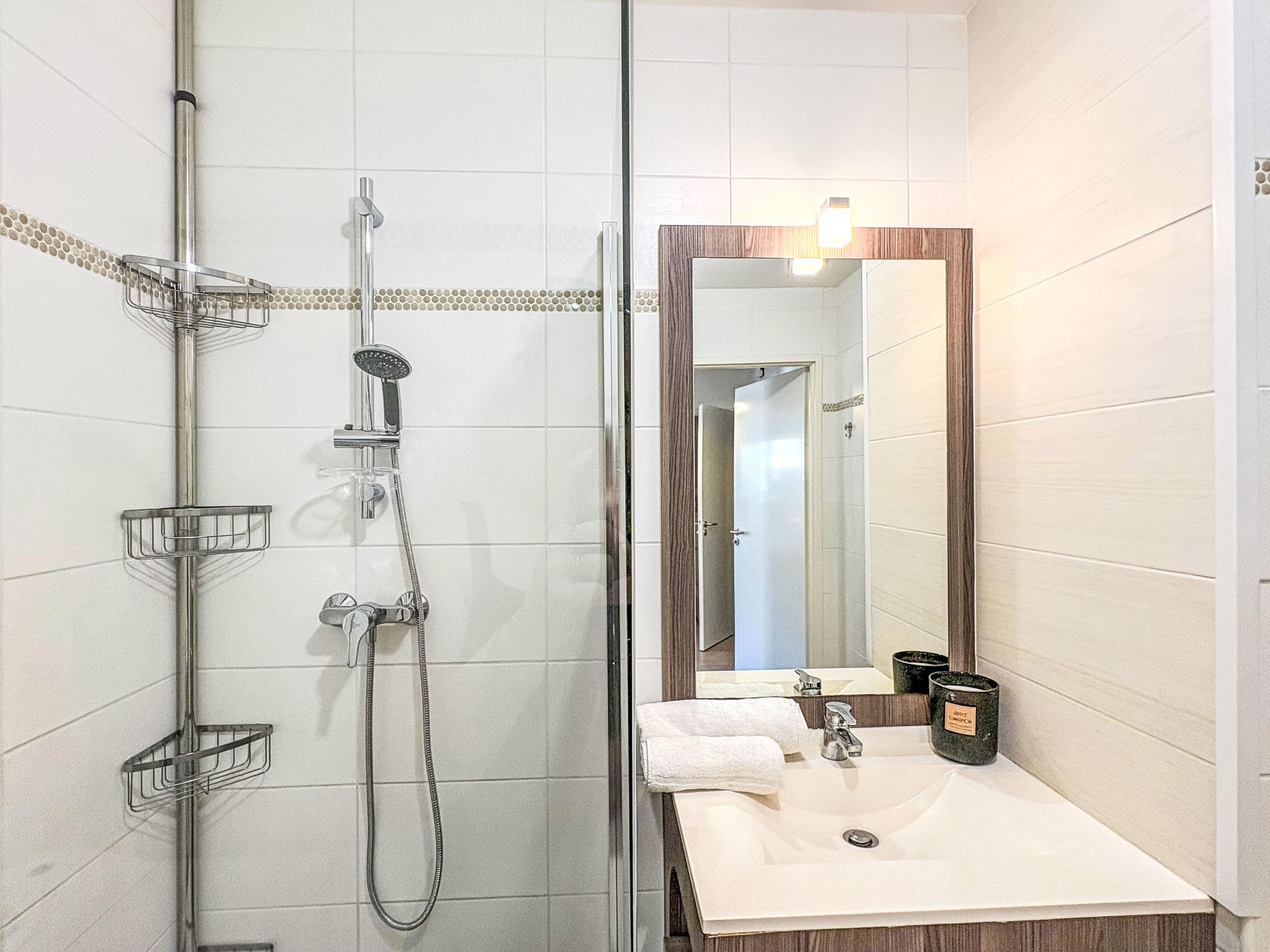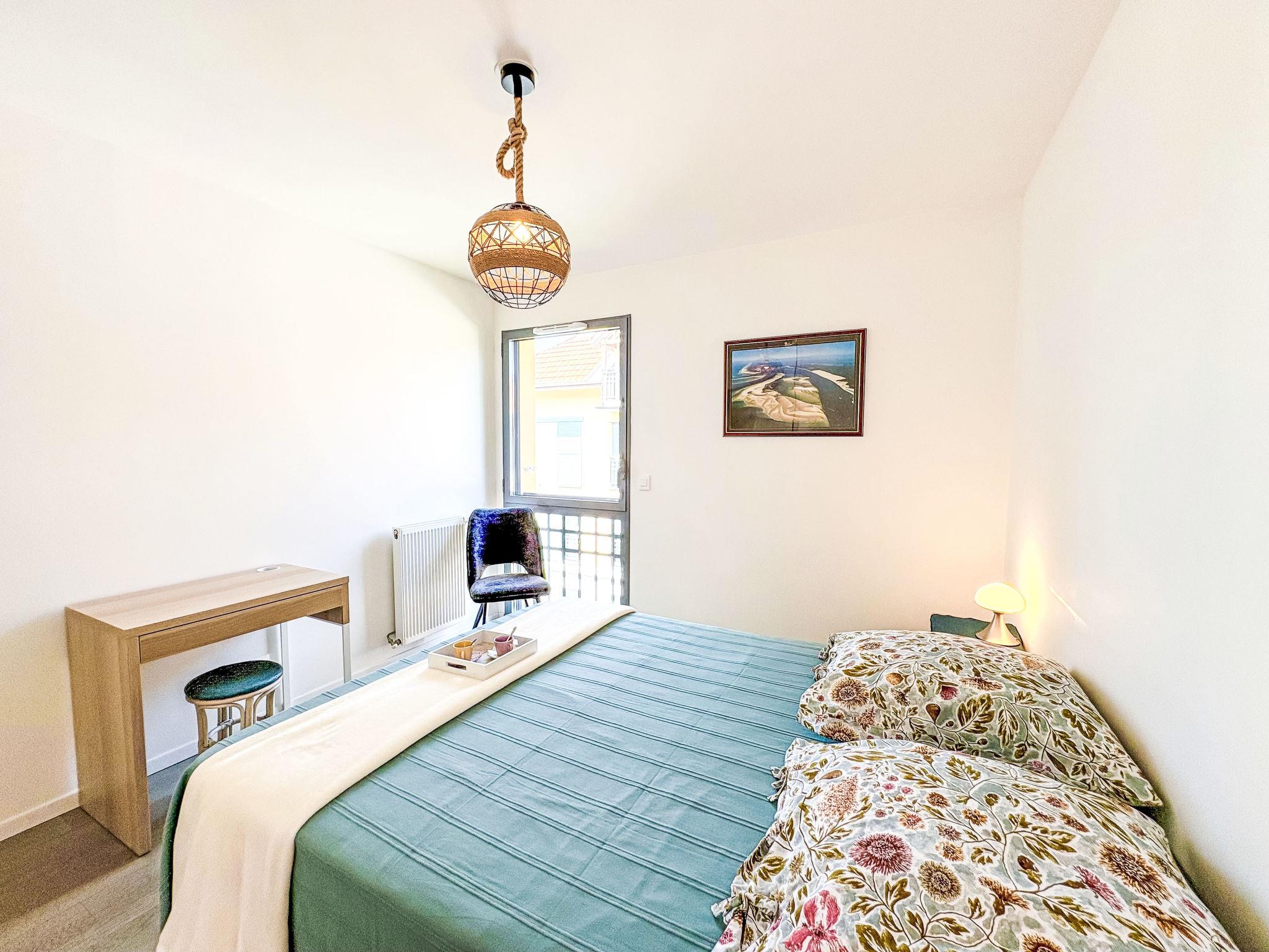 2-room apartment 42 m2 on 2nd floor. Comfortable and beautiful furnishings: living/dining room with 1 double sofabed (1 x 140 cm, length 190 cm), TV (flat screen). Exit to the terrace. 1 room with 1 french bed (1 x 140 cm, length 190 cm). Open kitchen (oven, dishwasher, 4 induction hot plates, toaster, kettle, microwave, electric coffee machine, Capsules for coffee machine (Senseo) extra). Shower, sep. WC. Electric heating. Terrace 5 m2, north facing position and, east facing position. Terrace furniture. Facilities: washing machine, iron, hair dryer. Internet (WiFi, free). Garage space n 37 (1 car). Please note: smoke alarm. Offer by a private individual according to Art. 155, IV of CGI. 330090036421B