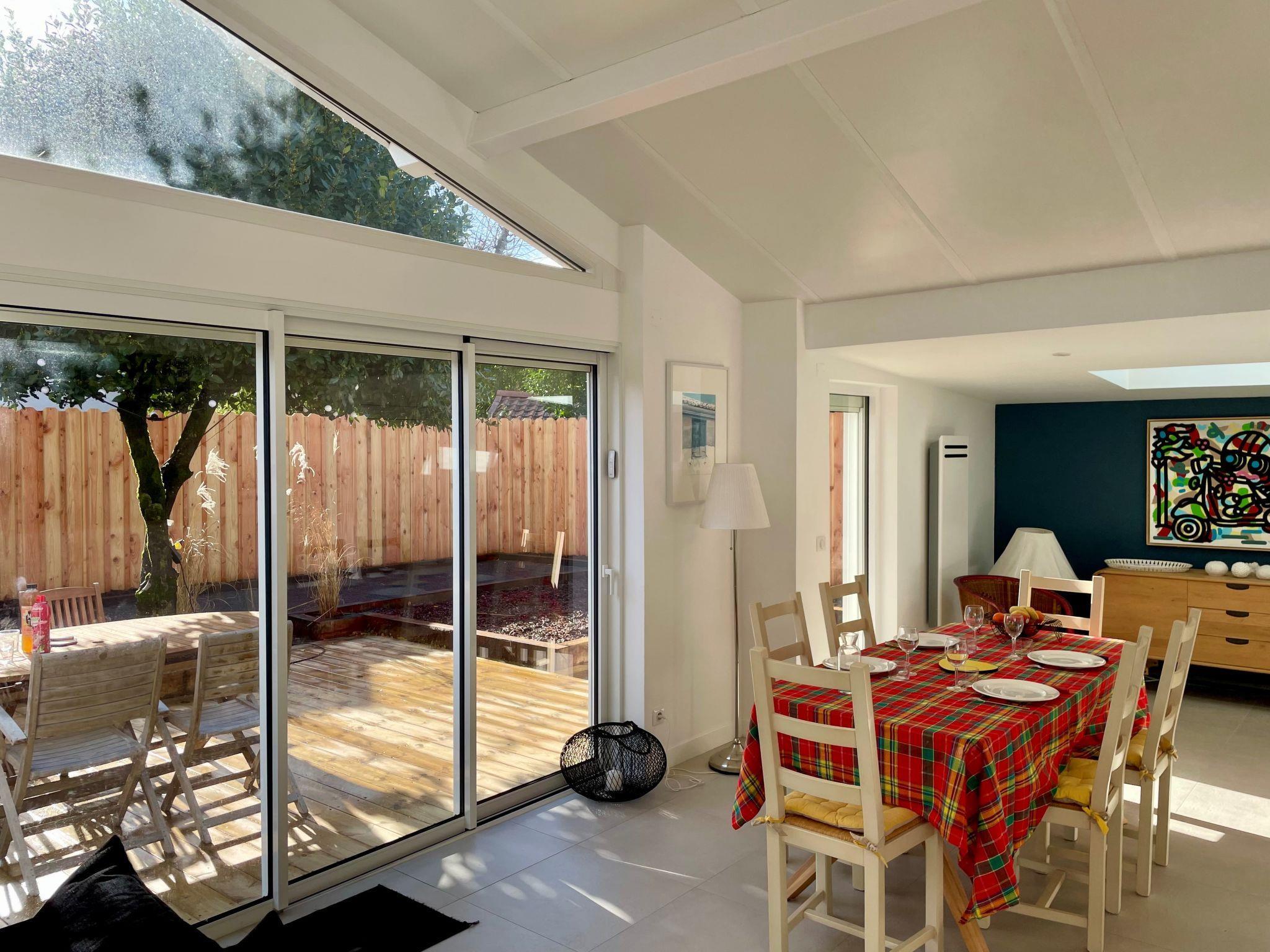 Arcachon: Single-family house "La Petite Doussy". 1 km from the sea, 1 km from the beach. Private: property 500 m2 (fenced). Boules, parking (for 2 cars). Shop 2 km, grocery 750 m, supermarket 1 km, shopping centre 2.4 km, restaurant, bar 700 m, bakery, café, bicycle rental 750 m, bus stop "Résidence Règue Verte" 300 m, railway station "Arcachon" 1.5 km, sandy beach "Aiguillon" 1 km, park "Mauresque" 2 km, thermal baths "Thalazur" 4 km. Sports harbour 1.2 km, golf course (18 hole) 3.6 km, surf school 5.1 km. Nearby attractions: Dune du Pyla 9.4 km, Eratopia 7.3 km, Navette Maritime pour le Cap Ferret 2.1 km, Marché Municipal 2 km, ArcaJetMarine 1.1 km, Observatoire Sainte-Cécile 2.3 km. Well-known lakes can easily be reached: Lac de la Magdeleine 8.7 km, Lac de Cazaux 14.9 km. The keys‘ handover takes place by the agency Interhome in Arcachon, 2 km.