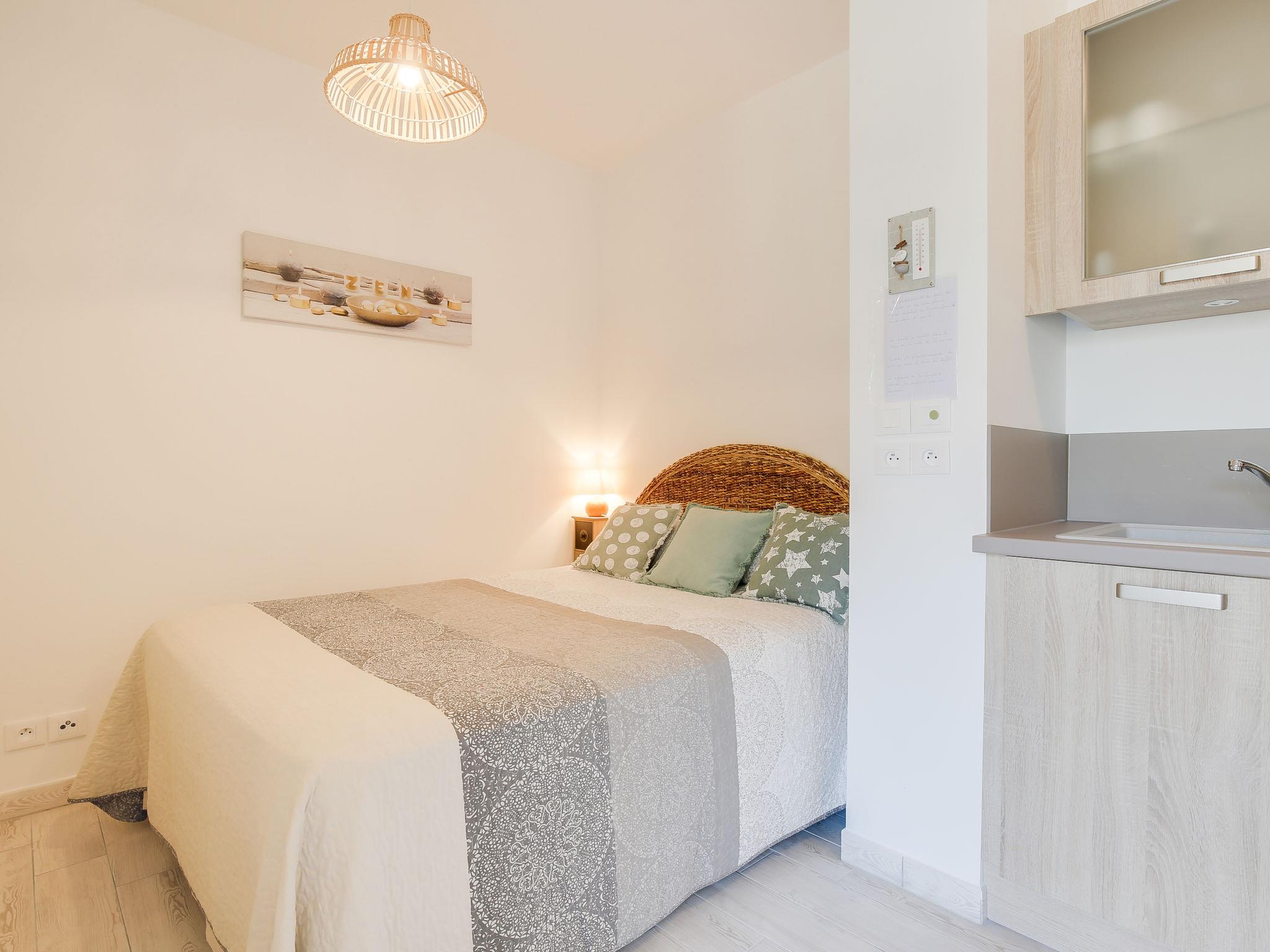 1-room studio 30 m2 on 1st floor. Comfortable and cosy furnishings: living/dining room with 1 french bed (1 x 140 cm, length 190 cm), TV (flat screen), hi-fi system. Exit to the balcony. Open kitchen (2 hot plates, toaster, kettle, freezer, electric coffee machine, Capsules for coffee machine (Nespresso) extra, combination microwave). Shower/WC. Gas heating. Balcony 8 m2, west facing position. Balcony furniture, deck chairs (1). Facilities: washing machine, iron, hair dryer. Internet (WiFi, free). Parking space n 21. Please note: non-smokers only. Smoke alarm. Offer by a private individual according to Art. 155, IV of CGI. 33009001692D4