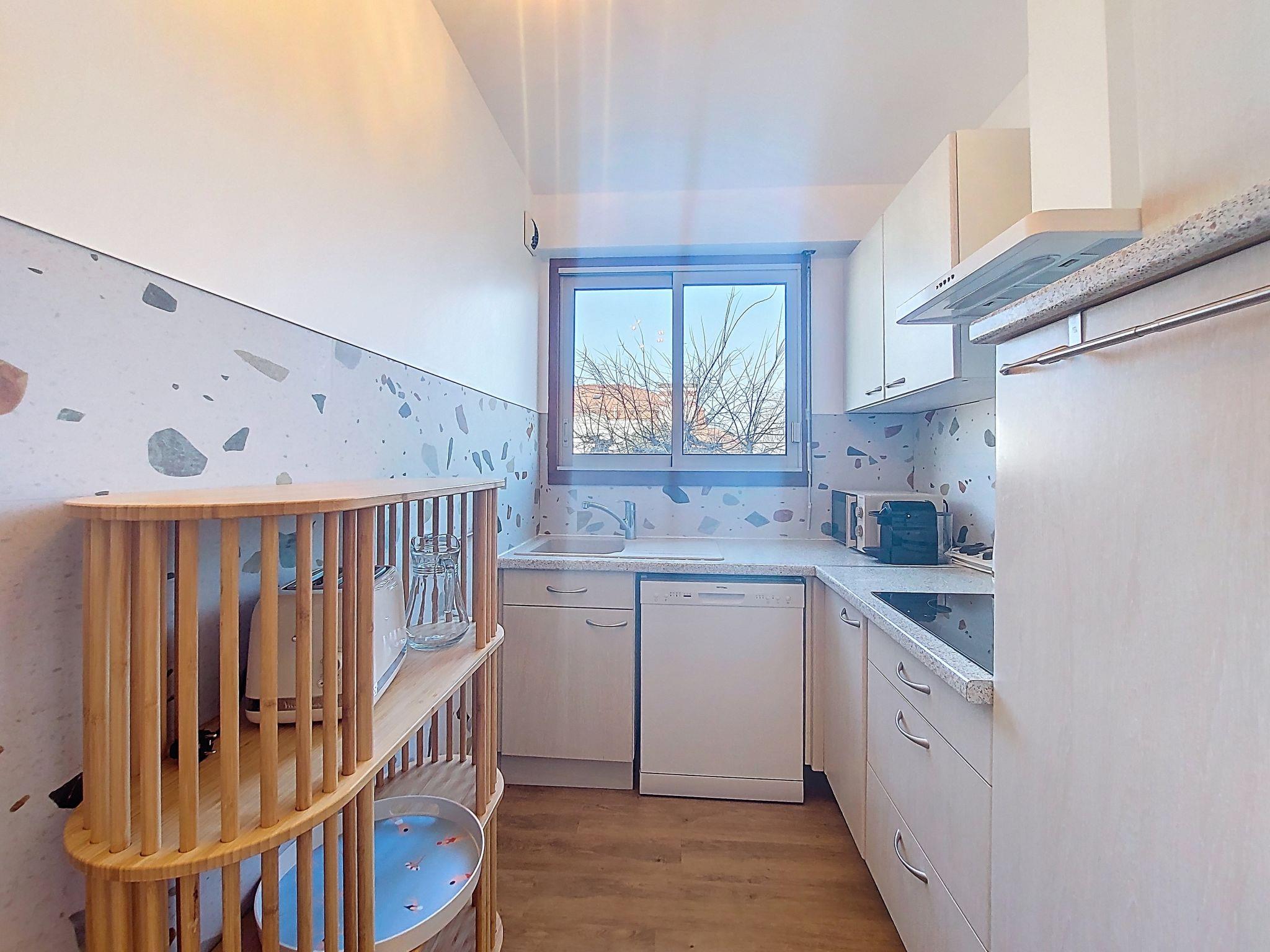 2-room apartment 43 m2 on 2nd floor. Object suitable for 2 adults + 2 children. Renovated, beautiful and tasteful furnishings: living/dining room with 1 x 2 bunk beds (90 cm, length 190 cm), TV (flat screen). Exit to the terrace. 1 room with 1 french bed (1 x 140 cm, length 190 cm). Exit to the terrace. Kitchen (dishwasher, 3 induction hot plates, toaster, kettle, microwave, electric coffee machine, Capsules for coffee machine (Nespresso) extra). Bathroom, sep. WC. Electric heating. Terrace 12 m2, south facing position. Terrace furniture. Facilities: hair dryer. Internet (WiFi, free). Garage (1 car). Please note: suitable for families. Non-smokers only. Smoke alarm. Offer by a private individual according to Art. 155, IV of CGI. 33009004155C4