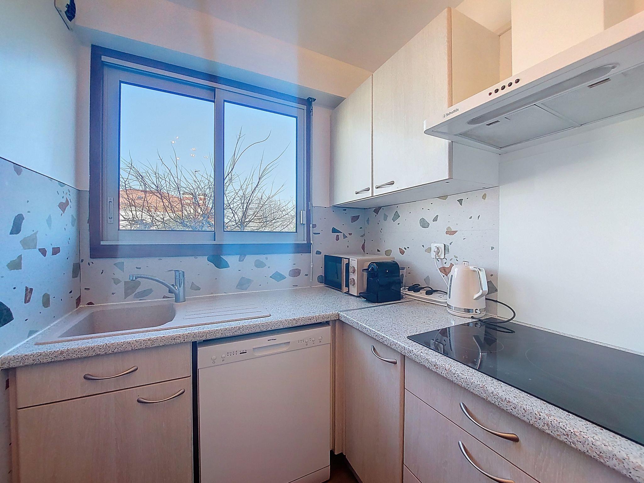 Arcachon: Residence "Maris Stella". 350 m from the sea, 350 m from the beach. In the complex: lift. Grocery 220 m, supermarket 800 m, restaurant 220 m, bar 500 m, bakery 300 m, pedestrian zone 750 m, bicycle rental 850 m, 10 minute walk to the centre, bus stop "Basilique Notre-Dame" 90 m, railway station "Arcachon" 1.5 km, sandy beach "Jetée des Marins" 350 m, park "Mauresque" 1.2 km, thermal baths "Thalazur" 1.8 km. Sports harbour 2.5 km, golf course (18 hole) 3.5 km, surf school 3.1 km, cycle lane 300 m. Nearby attractions: Dune du Pyla 8.9 km, Bassin Aventures 10.1 km, Observatoire Sainte Cécile 750 m, Navette Maritime pour le Cap Ferret 1.3 km, Marché Municipal 1.1 km, ArcaJetMarine 3.3 km. Well-known lakes can easily be reached: Lac de la Magdeleine 10.5 km, Lac de Cazaux 17.1 km. The keys‘ handover takes place by the agency Interhome in Arcachon, 1 km.