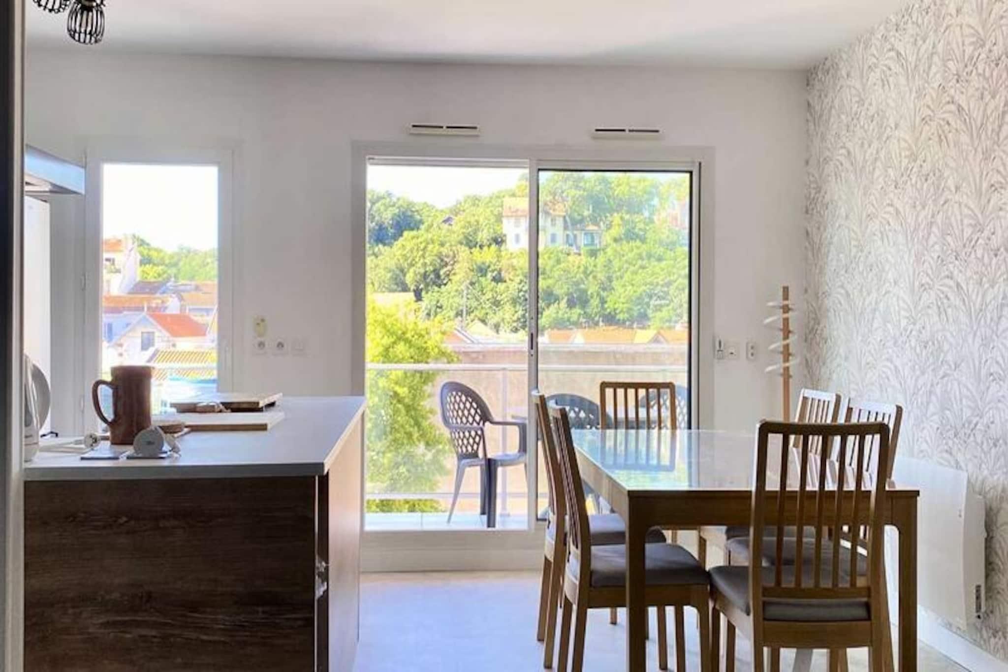 I hjärtat av den charmiga franska kuststaden Lacanau erbjuder denna moderna lägenhet en lugn tillflyktsort bara några minuter från Atlantens gyllene sand. Med sitt söderläge badar fastigheten i naturligt ljus, vilket skapar en varm och inbjudande atmosfär perfekt för en avkopplande semester. Oavsett om du smuttar på ditt morgonkaffe på balkongen eller varvar ner efter en dags utforskande, erbjuder detta hem den perfekta miljön för en minnesvärd semester. \n\nStig in för att upptäcka ett rymligt vardagsrum utformat för komfort och bekvämlighet. Vardagsrummet har en plyschsoffa, en platt-TV och höghastighets-Wi-Fi, som sömlöst ansluts till ett fullt utrustat kök. Från ugn och mikrovågsugn till diskmaskin och tvättmaskin/torktumlare, alla moderna bekvämligheter finns nära till hands. Matbordet på den 8 m² stora balkongen inbjuder dig att njuta av måltider utomhus i solen, medan de två omsorgsfullt designade sovrummen garanterar vilsamma nätter. Barnrummet, med sin våningssäng och gott om förvaring, är perfekt för yngre gäster, medan det stora sovrummet har en lyxig dubbelsäng och en stor garderob för dina tillhörigheter. Ett elegant badrum med modern dusch och handdukstork kompletterar utrymmet och erbjuder alla bekvämligheter i ett hem.\n\nLacanaus pulserande stadskärna ligger bara en kort promenad bort, där du hittar en mängd restauranger, butiker och lokala marknader. För friluftsentusiaster är området en oas av aktiviteter, från att surfa på de berömda Atlantvågorna till att cykla genom de frodiga tallskogarna. Golfbanor, vandringsleder och den lugna Lacanau-sjön ligger alla inom räckhåll och lovar något för alla. Med säker privat parkering och ett utmärkt läge är denna fastighet din port till det bästa av den franska kusten.\n\nOavsett om du söker äventyr eller avkoppling, erbjuder denna lägenhet den perfekta balansen mellan komfort och tillgänglighet. Skapa bestående minnen i denna soliga fristad vid havet.