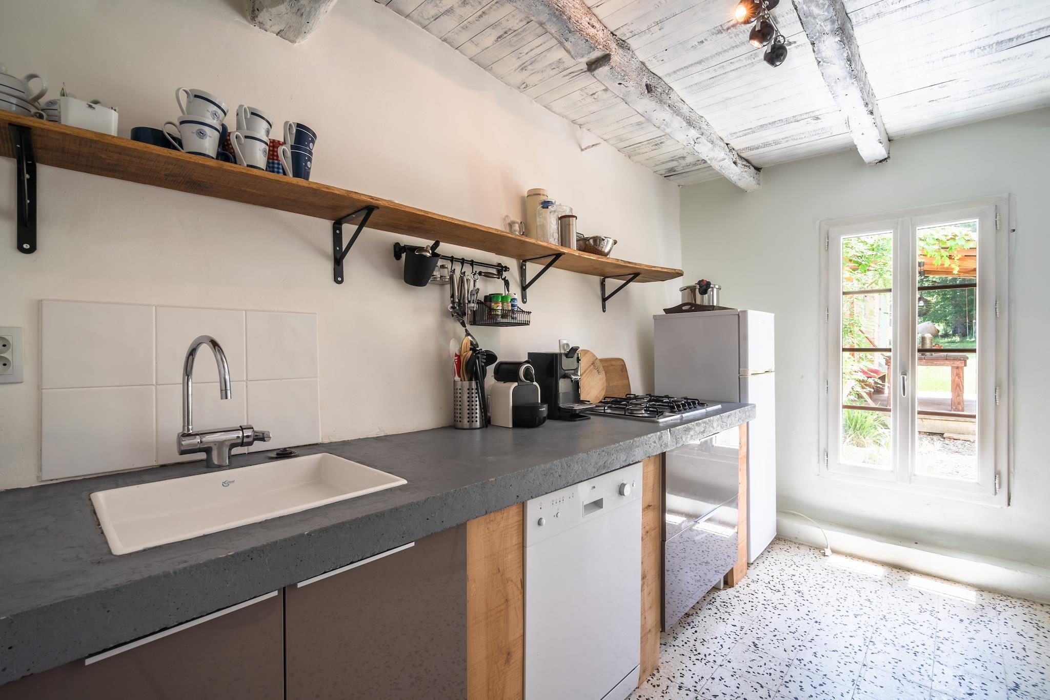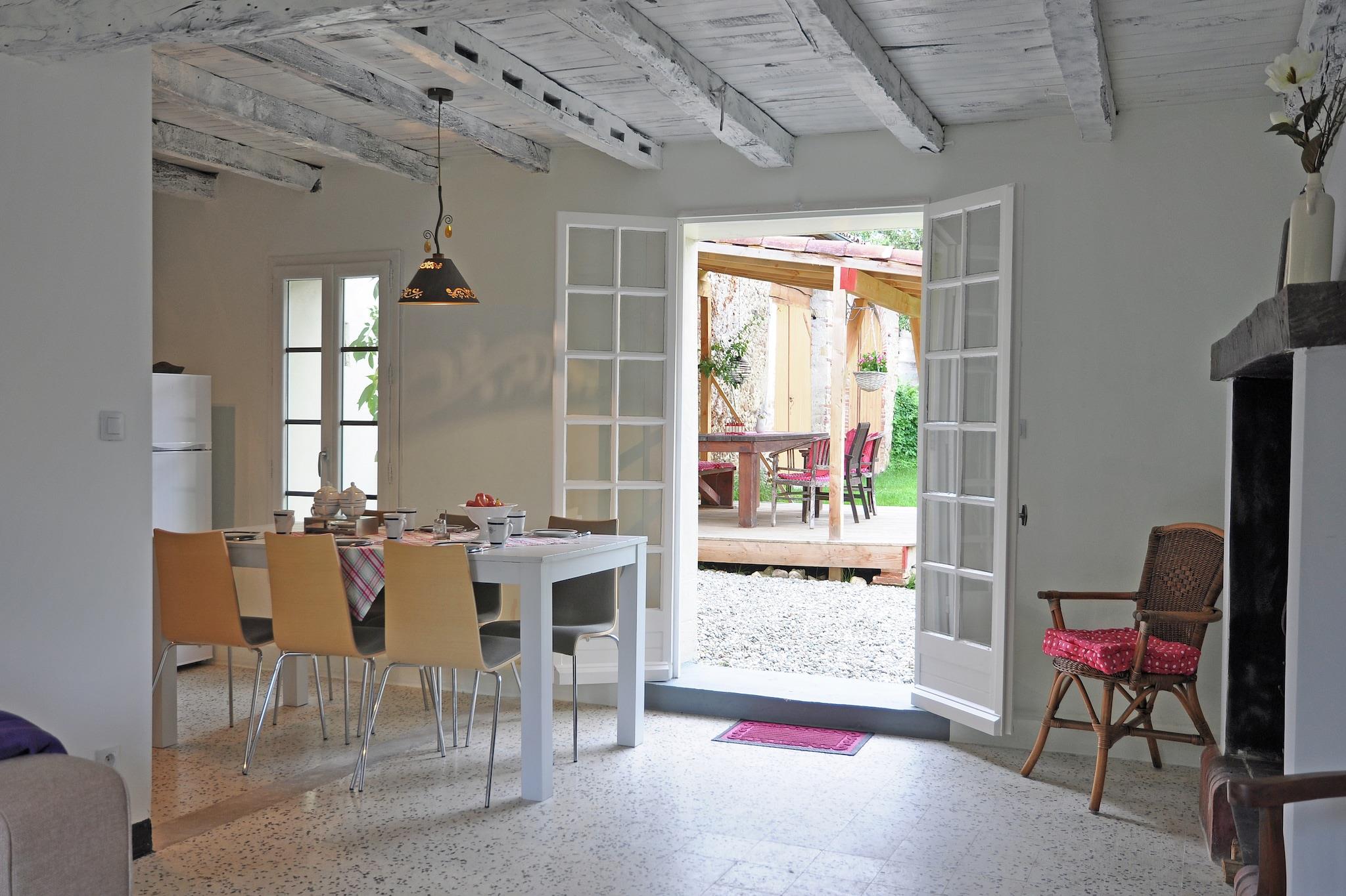 Bottenvåningen: (öppet kök(spis(Spis med 4 kokplattor), diskmaskin, kyl och frys), ardags- och matrum(TV, öppen spis), WC) På våning 1: (sovrum(dubbelsäng), sovrum(Dubbelsäng eller 2 enkelsängar), sovrum(3x enkelsäng), badrum(dusch, handfat)) terrass, trädgård, trädgårdsmöbler, grill, swimmingpool(delad med den ägaren och andra gäster, 7 x 4 m.)