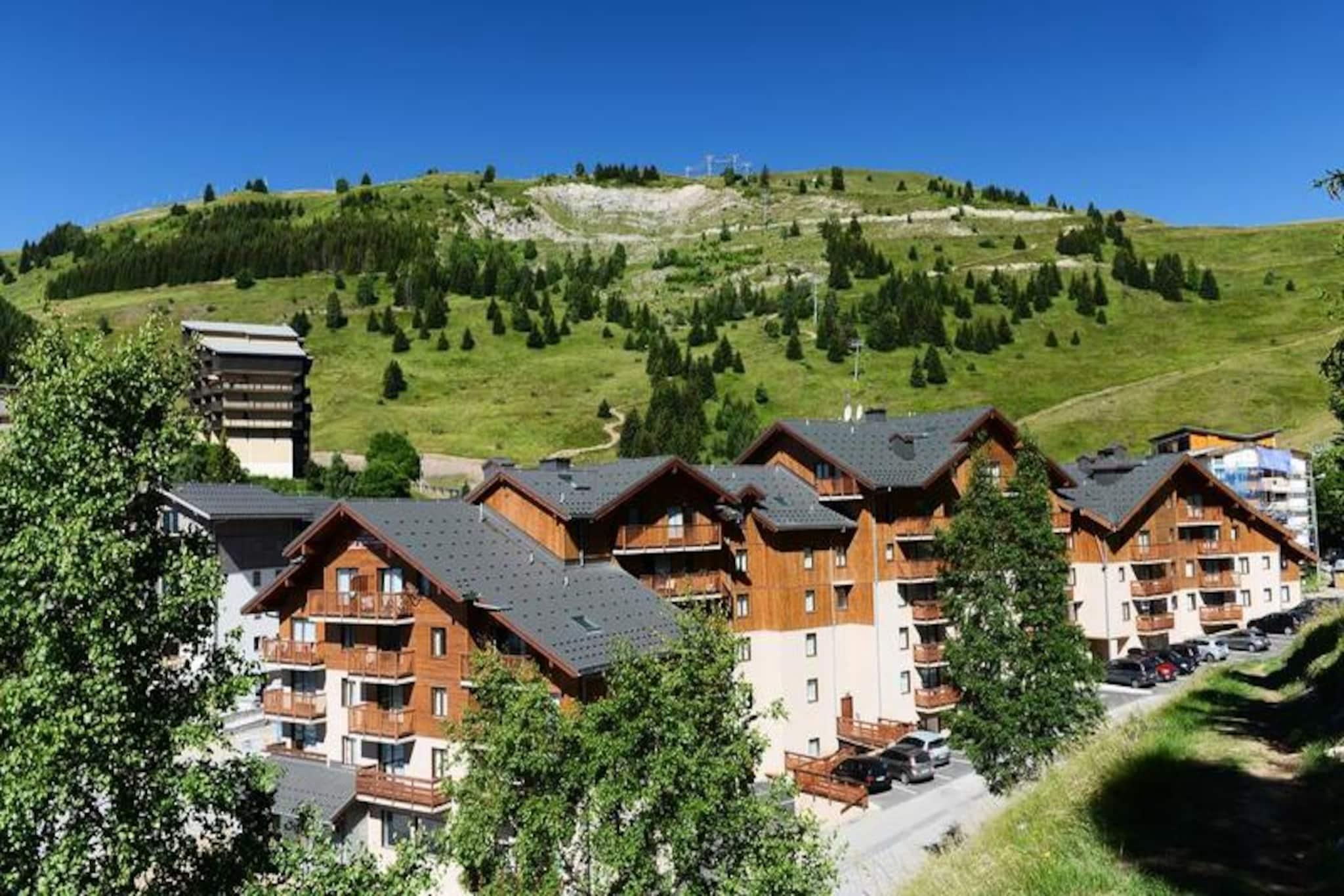 I hjärtat av de franska Alperna, där snötäckta toppar möter lugn alpin charm, erbjuder denna mysiga lägenhet en perfekt tillflyktsort för familjer och grupper som söker äventyr och avkoppling. Tänk dig att vakna upp till frisk bergsluft, gå ut på din balkong för att beundra den hisnande utsikten och planera en dag fylld med skidåkning, vandring eller helt enkelt avkoppling i naturens famn. Denna fastighet är en fristad för dem som vill fördjupa sig i bergens skönhet året runt. Inuti är lägenheten noggrant utformad för att rymma upp till åtta gäster. Vardagsrummet har en utdragbar bäddsoffa, vilket skapar ett välkomnande utrymme att koppla av på efter en dag av utforskande. Ett fullt utrustat pentry inbjuder dig att laga rejäla måltider, medan sovrummet med dubbelsäng och eget badrum garanterar komfort och avskildhet. Två ytterligare sovplatser med våningssängar, kompletta med fönster och dörrar, ger en mysig tillflyktsort för barn eller vänner. Ett separat badrum och toalett ökar bekvämligheten, vilket gör detta utrymme idealiskt för större grupper. Moderna bekvämligheter som Wi-Fi och en platt-TV garanterar en bekväm vistelse, medan husdjursvänliga alternativ gör det enkelt att ta med dina lurviga kamrater. Bortom lägenheten väntar en värld av alpint äventyr. Residenset ståtar med en täckt och uppvärmd pool för njutning året runt, och en bastu för stunder av avkoppling efter en aktiv dag. Närliggande skidliftar och backar ger enkel tillgång till några av de bästa skidåkningsmöjligheterna i regionen, medan sommaren förvandlar området till ett paradis för vandrare och mountainbikecyklister. Lokala butiker, restauranger och kulturella sevärdheter säkerställer att allt du behöver finns inom räckhåll. Oavsett om du dras av spänningen i backarna, lugnet på alpina ängar eller charmen i franska bergsbyar, erbjuder denna lägenhet den perfekta basen för oförglömliga minnen. Omfamna Alpernas magi och låt denna mysiga tillflyktsort bli ditt hem hemifrån.