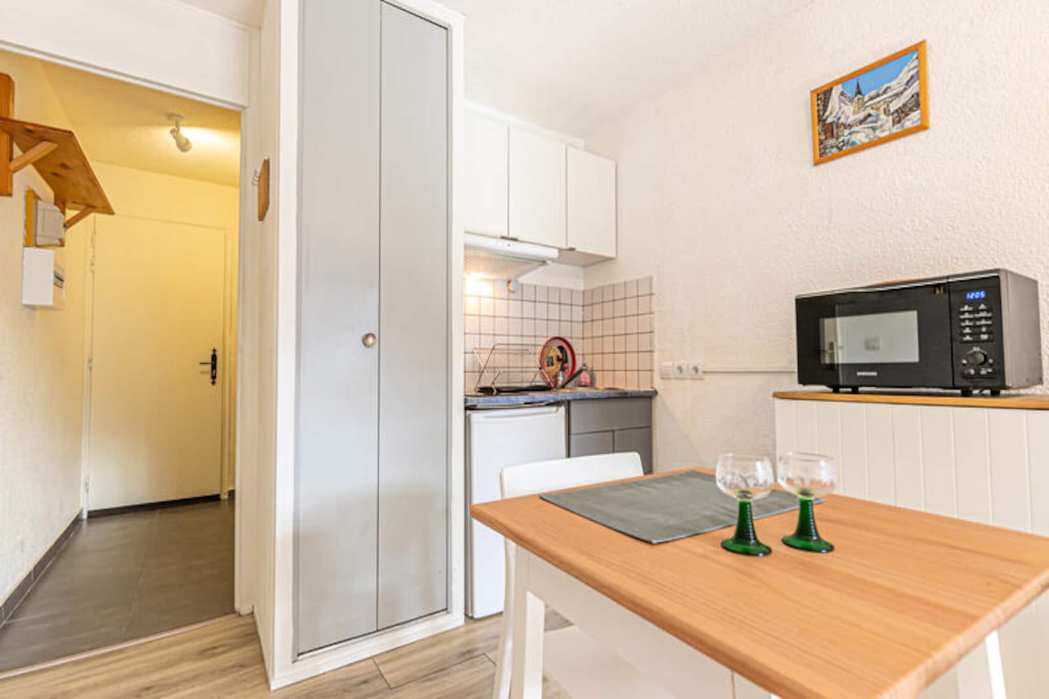Mitt i den charmiga alpbyn Aussois erbjuder denna mysiga studiolägenhet i residenset "Les Sétives" en härlig tillflyktsort för par som söker en lugn flykt till bergen. Med sin balkong i sydostläge kan du vakna upp till den milda morgonsolen och hisnande utsikt över de omgivande topparna och fördjupa dig i de franska Alpernas lugna skönhet. Residenset är bekvämt beläget bara 300 meter från skidliftarna, vilket gör det till en idealisk bas för både vintersportentusiaster och naturälskare. Butiker och lokala bekvämligheter finns också inom räckhåll, vilket garanterar en problemfri vistelse. \n\nInuti är studion noggrant utformad för att maximera komfort och funktionalitet inom sin 21 m² stora yta. Vardagsrummet har en utdragbar bäddsoffa som bekvämt rymmer två gäster, medan det välutrustade köket har kylskåp, elektrisk spis, miniugn, mikrovågsugn/kombination och tvättmaskin för extra bekvämlighet. Lägenheten är möblerad med täcken, och sängkläder och handdukar finns tillgängliga vid bokning mot en extra kostnad. Ett skidförvaringsskåp finns för säker förvaring av din utrustning, så att du är redo att ge dig ut i backarna varje dag. \n\nUtanför residenset erbjuder Aussois en mängd aktiviteter och attraktioner. Oavsett om du åker skidor nerför orörda backar på vintern eller utforskar natursköna vandringsleder på sommaren, erbjuder byn en perfekt blandning av äventyr och avkoppling. Upptäck charmen hos lokala butiker och restauranger, njut av traditionell savoyardsk mat och njut av regionens varma gästfrihet. För de som söker kulturell berikning, ger närliggande landmärken och historiska platser en touch av kulturarv till din alpina upplevelse. \n\nDenna studiolägenhet är ett underbart val för par som vill njuta av bergens magi i en mysig och bekväm miljö. Oavsett om du är här för en romantisk semester eller en aktiv semester, inbjuder residenset "Les Sétives" dig att skapa oförglömliga minnen i hjärtat av Aussois.
