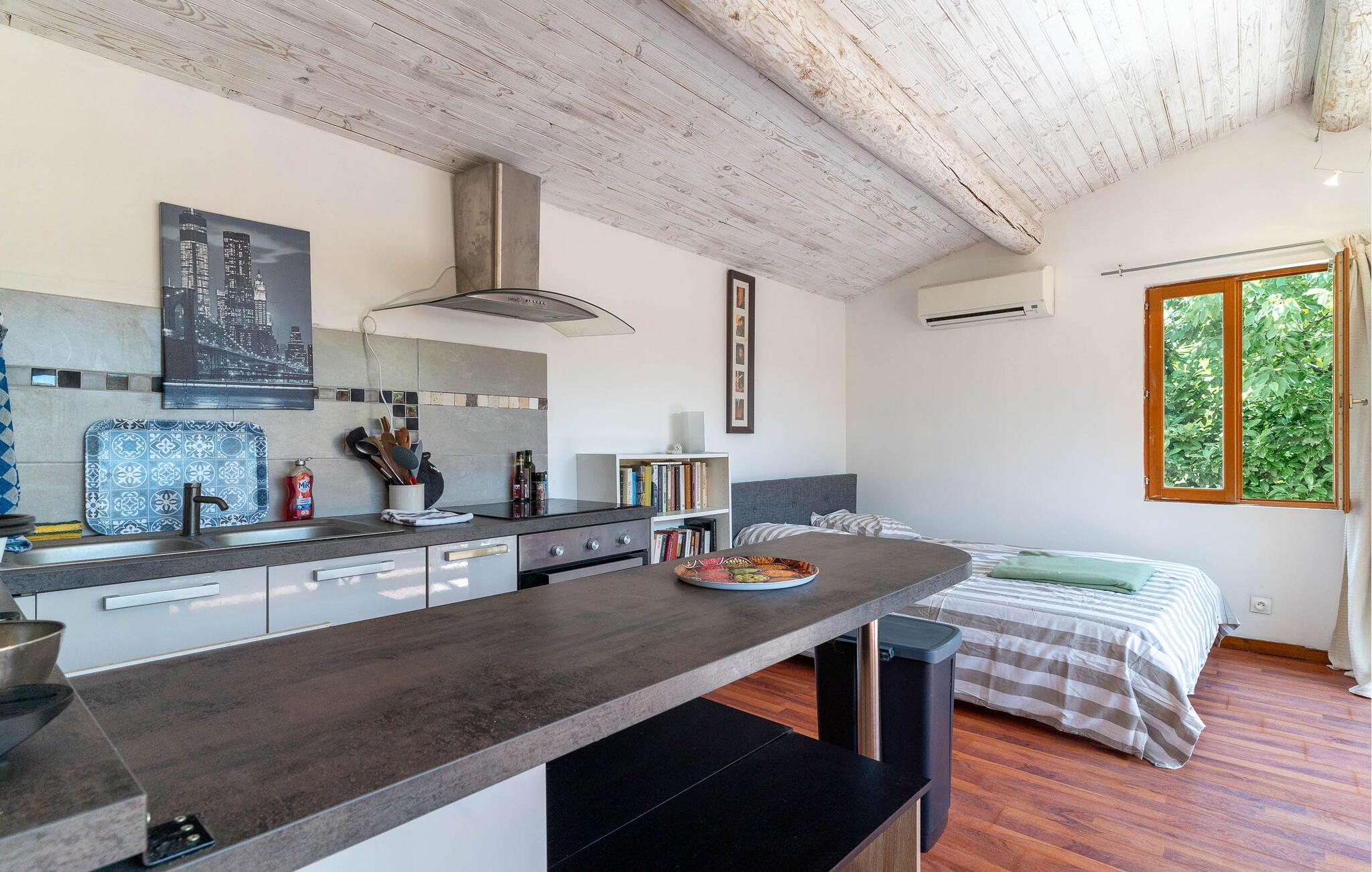 I ett grönt kvarter i Avignon välkomnar denna vackra studiolägenhet dig. Utrustad med ett stort kök och sittgrupper i lägenheten och på terrassen, hittar du allt du behöver för att koppla av och njuta av dina måltider. På morgonen kan du dricka ditt kaffe på terrassen och planera dina utflykter och aktiviteter i staden och det omgivande området.