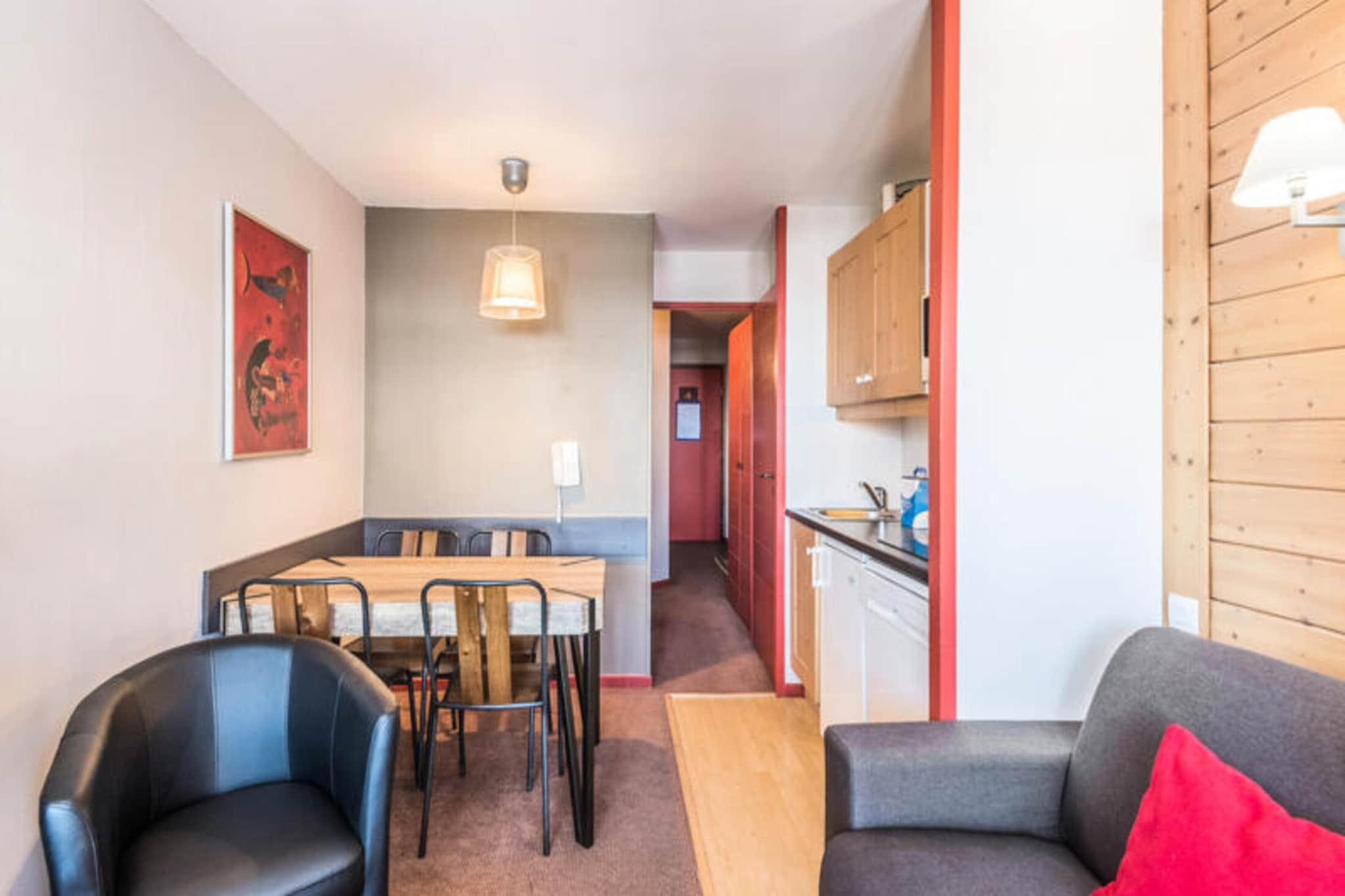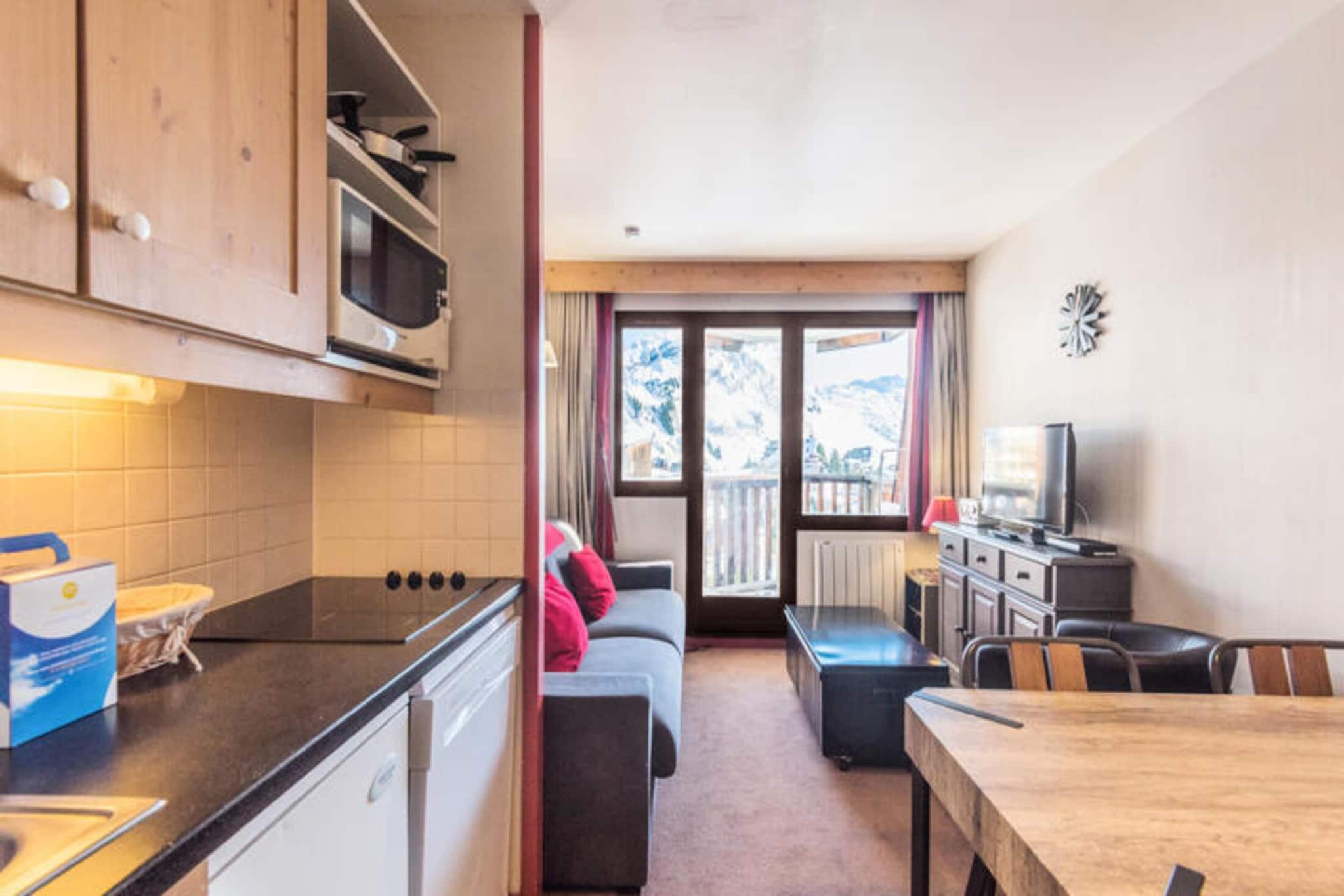 Detta boende ligger i Falaise-distriktet och erbjuder ett utmärkt läge med panoramautsikt över Morzinedalen och resorten. Fastigheten består av flera byggnader, inklusive The Saskia, The Datcha, The Elinka och mer, och erbjuder en rad olika boenden som är idealiska för en ski-in/ski-out-upplevelse. Dess närhet till affärer, restauranger och den största vattenparken i bergen, Aquariaz, gör den perfekt för både vinter- och sommarvistelser. Lägenheten i sig har ett bekvämt vardagsrum med en bäddsoffa, ett matbord för fyra och ett pentry. Det separata sovrummet har två våningssängar, vilket gör det idealiskt för familjer eller små grupper. Badrummet har badkar och separat toalett. Residenset ligger också nära Avoriaz livliga centrum, vilket ger enkel tillgång till affärer, restauranger och fritidsaktiviteter. Oavsett om du vill åka skidor direkt från fastigheten, utforska bergsvattenparken eller vandra de omgivande lederna, erbjuder detta läge den perfekta basen för din semester. Valfria tjänster som daglig städning, babykit och extra handdukar är tillgängliga mot en avgift. Husdjur är välkomna mot extra avgifter. Njut av den soliga balkongen i söderläge med en solstol och klädhängare medan du njuter av den natursköna utsikten över skidbackarna. Ytterligare bekvämligheter inkluderar ett skidskåp, platt-TV, Wi-Fi och praktisk förvaring. För avkoppling kan du besöka det närliggande Deep Nature Spa på premiumresidenset l'Amara, bara 200 meter bort. Boka din vistelse hos idag!