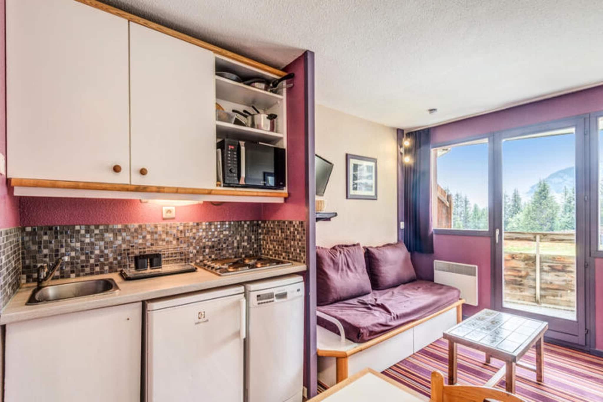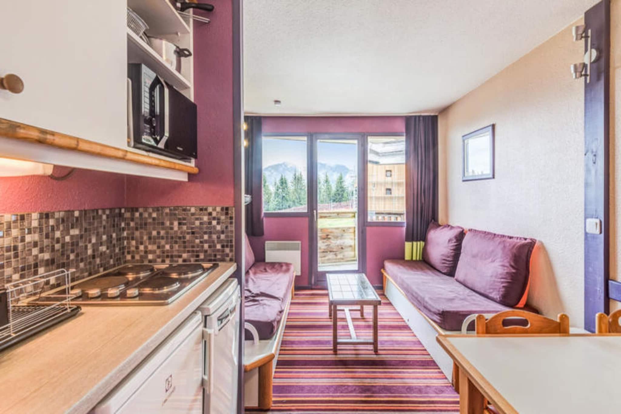 Detta boende ligger i Falaise-distriktet och erbjuder ett utmärkt läge med panoramautsikt över Morzinedalen och resorten. Med direkt tillgång till affärer och restauranger, samt nära till den största vattenparken i bergen, Aquariaz, är denna fastighet perfekt för en ski-in/ski-out-vistelse. Malinka-byggnaden, där din hyra på 28 m² ligger, ger enkel tillgång till backarna och andra bekvämligheter. Lägenheten har ett vardagsrum med 2 bäddsoffor och en extra utdragbar säng, ett öppet kök, ett separat sovrum med en dubbelsäng och ett badrum med badkar-dusch. Lägenheten har även en separat toalett och en balkong där du kan njuta av den fantastiska utsikten. För ytterligare avkoppling kan gästerna njuta av bubbelpooler på Deep Nature Spa by Algotherm, som ligger 200 meter bort (mot tillägg). Sängkläder ingår, och handdukar finns tillgängliga mot en extra kostnad, med dagliga handduksbyten på begäran. Residenset ligger nära skidliftar, shopping och restauranger, vilket gör det till en idealisk bas för din vistelse. Täckt parkering finns i närheten (bokning krävs). Andra tjänster, inklusive daglig städning och byte av sängkläder, erbjuds mot en extra avgift. Residenset ligger i ett lugnt men ändå centralt område, vilket gör det till ett utmärkt val för både äventyr och avkoppling.