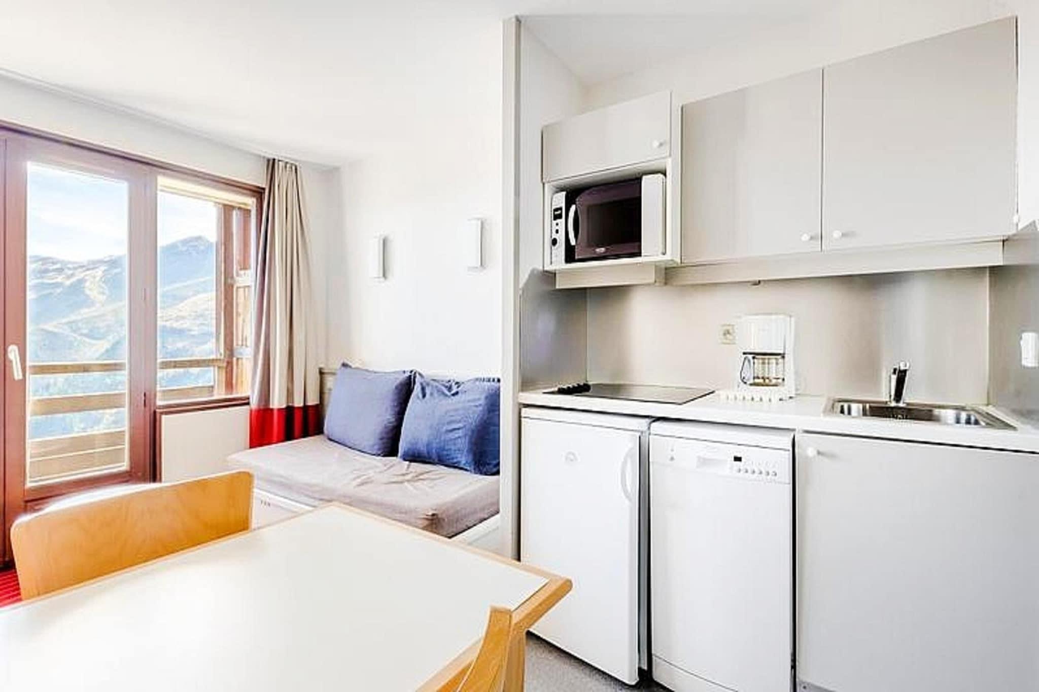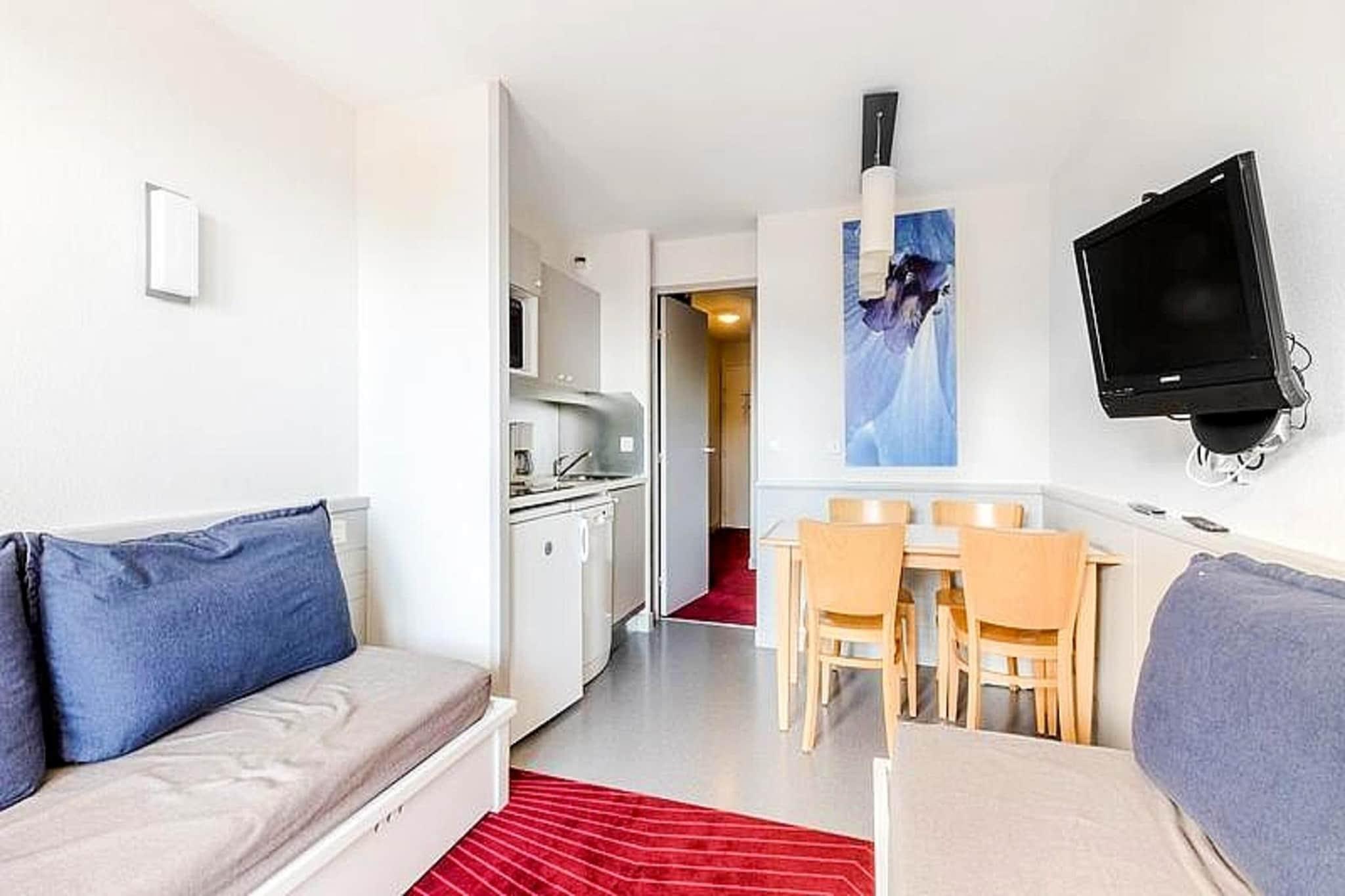 Denna mysiga lägenhet ligger i det pittoreska området Crozats och erbjuder en fridfull tillflyktsort i bergen med moderna bekvämligheter. Boendet är på cirka 24 m² och har ett vardagsrum med två bäddsoffor, ett sovrum med en dubbelsäng och ett badrum med badkar och toalett. Lägenheten har en balkong med fantastisk utsikt över bergen och gott om förvaringsutrymme. Husdjur är välkomna (extra avgifter tillkommer), vilket gör det till ett perfekt val för familjer eller par som reser med sina lurviga vänner. Sängkläder ingår, och babykit finns att hyra för att säkerställa en bekväm vistelse. Boendet ligger på höjden av semesterorten Avoriaz och erbjuder direkt tillgång till de berömda skidområdena Avoriaz och Portes du Soleil. Gästerna kan enkelt utforska närliggande butiker, kaféer och den livliga semesterortens centrum via hissar eller pendelservice. Läget är idealiskt för vintersportentusiaster, med skidbackar bara några steg bort, medan sommargäster kan njuta av vandringsleder och hisnande utsikt över Morzinedalen. Denna välskötta lägenhet har ett öppet kök utrustat med moderna apparater, inklusive ett kylskåp och mikrovågsugn, perfekt för att laga mat efter en dag av äventyr. Ytterligare bekvämligheter inkluderar en TV, parkering under tak (bokning krävs) och obligatorisk slutstädning för extra bekvämlighet. Handdukar och daglig städning erbjuds mot en extra kostnad, vilket garanterar en bekväm och problemfri semester.