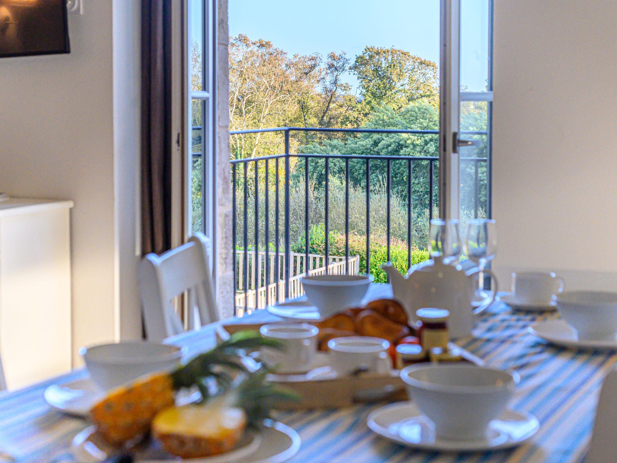 "Le Château de Kergonano", 2-room apartment 35 m2 on 1st floor. Comfortable and beautiful furnishings: living/sleeping room with 1 double sofabed (2 x 80 cm, length 190 cm), dining table and TV (flat screen). Exit to the terrace. 1 room with 1 french bed. Kitchenette (dishwasher, 2 ceramic glass hob hotplates, kettle, microwave, electric coffee machine). Shower/WC. Electric heating. Small balcony. View of the swimming pool and the garden. Facilities: Internet (WiFi, extra). Parking. Please note: non-smokers only. Maximum 1 pet/ dog allowed. Smoke alarm, fire extinguisher. Daily cleaning and change of linen possible on request and at extra cost. Offer by a private individual according to Art. 155, IV of CGI. FR2667.700.8