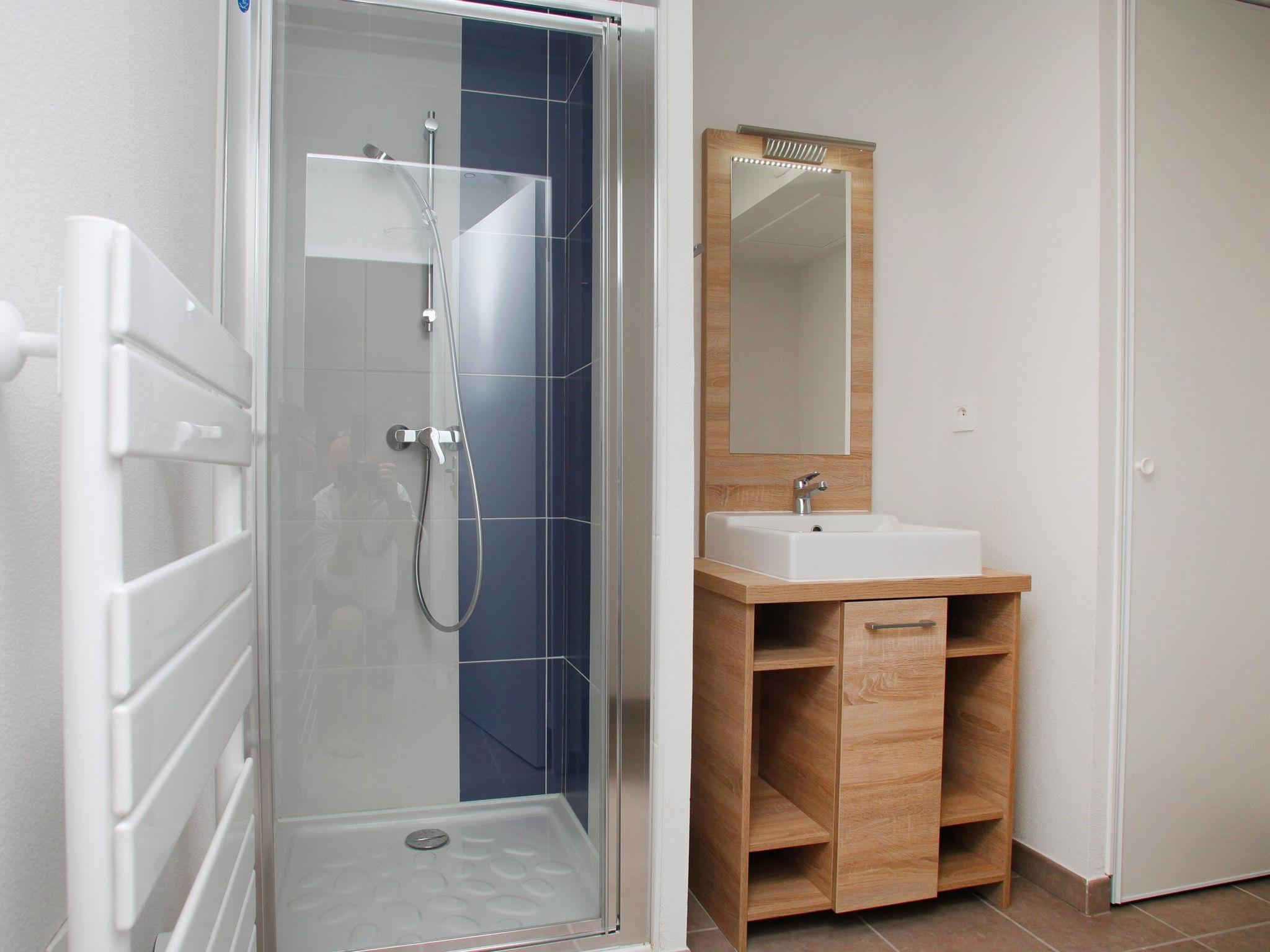 "Odalys Référence Les Iles du Morbihan", 4-room apartment 65 m2. Beautiful furnishings: living/sleeping room with 2 sleeping facilities (90 cm, length 190 cm), dining table and TV (flat screen). Exit to the garden, to the balcony. 2 rooms, each room with 1 french bed (160 cm, length 200 cm). 1 room with 2 beds (90 cm, length 190 cm). Small kitchenette (dishwasher, 2 ceramic glass hob hotplates, kettle, electric coffee machine, combination microwave). Shower, sep. WC. Electric heating. Small balcony or small terrace. Terrace furniture. Facilities: children's high chair, baby cot (extra). Internet (WiFi, free). Please note: non-smokers only. Maximum 1 pet/ dog allowed. Smoke alarm, fire extinguisher.